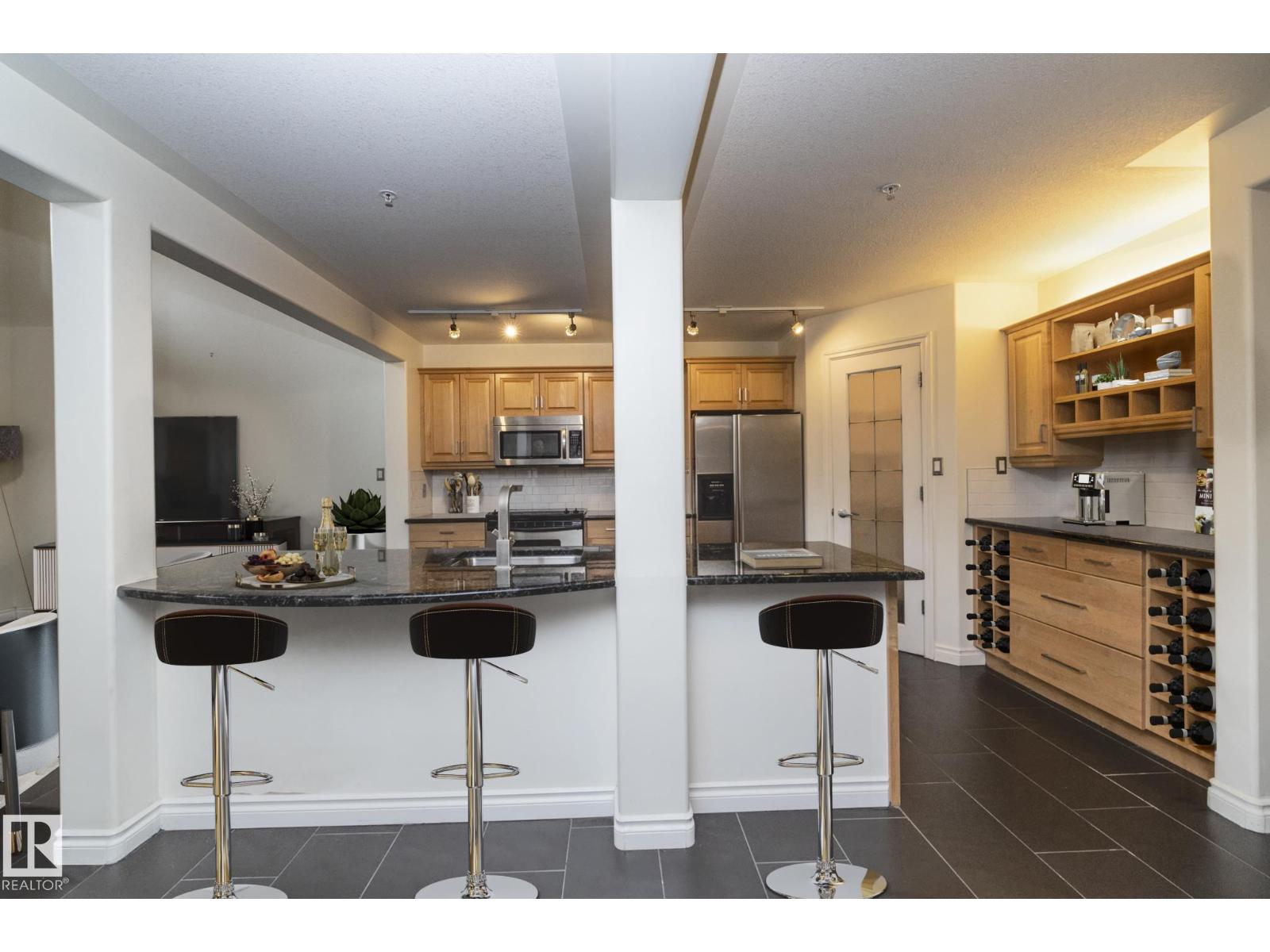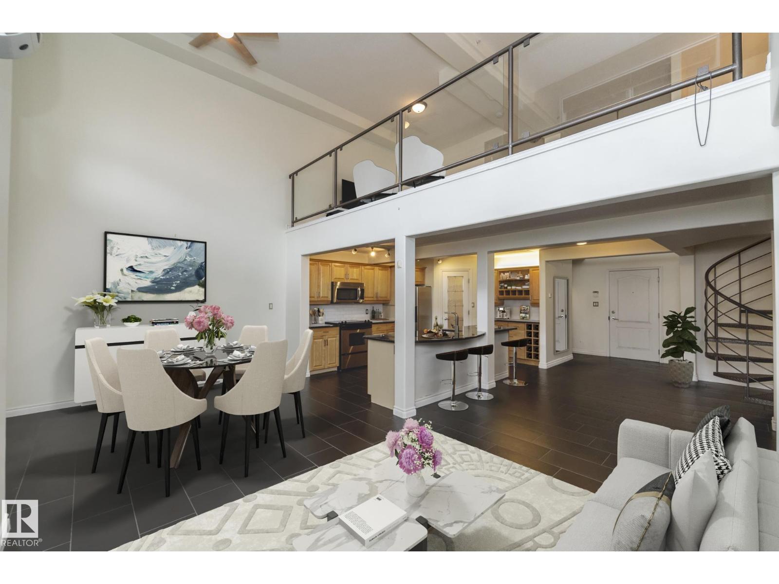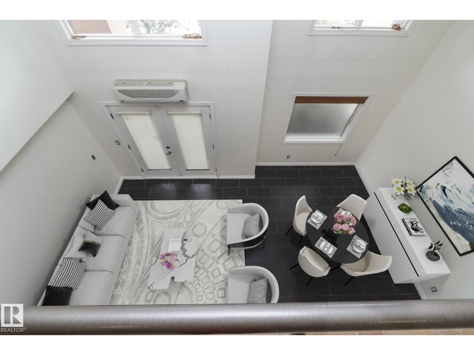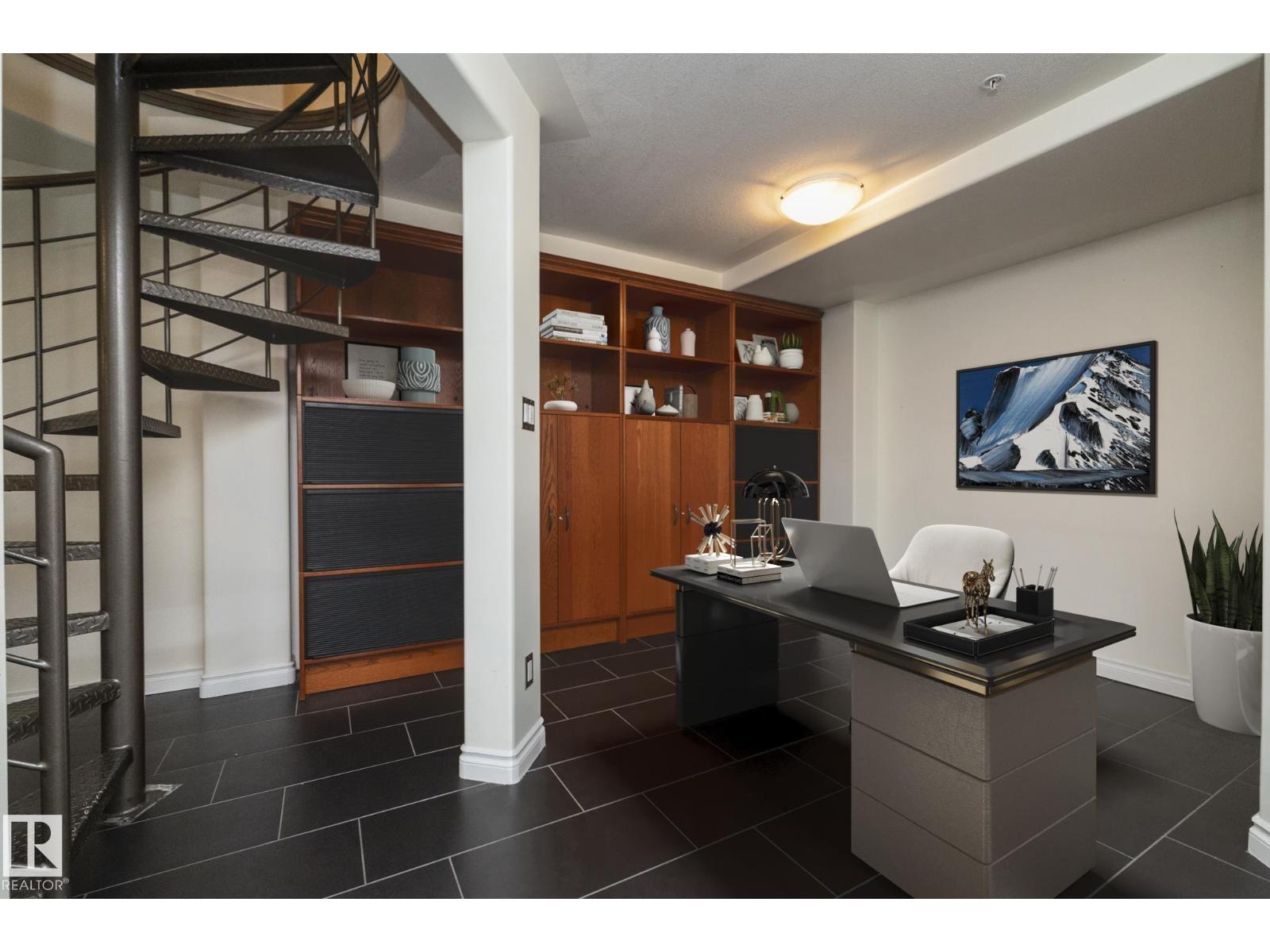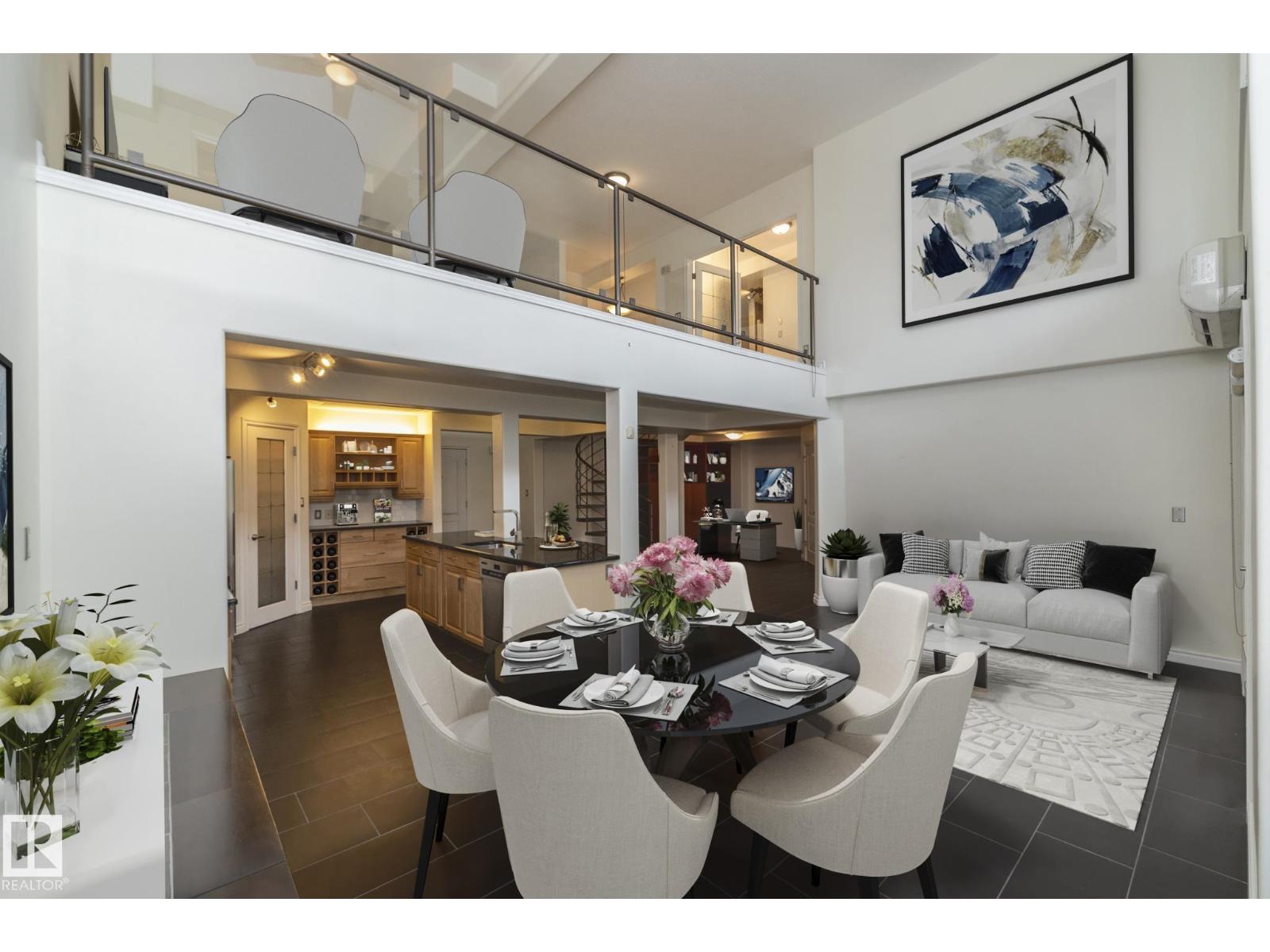 Manhattan Lofts - ideally situated along Saskatchewan Drive and walking distance to a number of key destinations. University Hospital, U of A Campus, Kinsmen Field House Rec Center, numerous shops, restaurants & cafes that line 109 St & Whyte Ave. Also within walking distance to downtown core and extensive river valley trail system. This expansive 2-story open concept loft style condo has an outstanding floor plan. All rooms are generous in size. Floor plan lends well to shared accommodations or hosting overnight guests. Bedrooms and full baths on each floor provide distance and privacy. Each level has a designated living room and added space to set up a home office. Other Features: In-suite laundry/storage, A/C, 17ft ceiling heights, large windows to take advantage of natural light, private patio off main level facing downtown skyline, granite counters, stainless appliances, in-floor heating and 2 underground heated stalls. Great value and flexible usage. Virtually Staged. Access to unit on flrs 1 & 2. (id:63190)