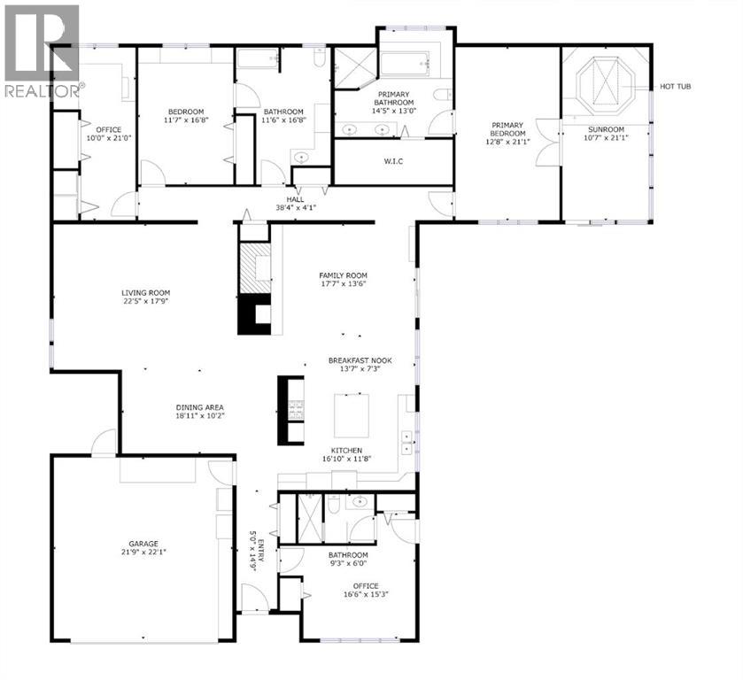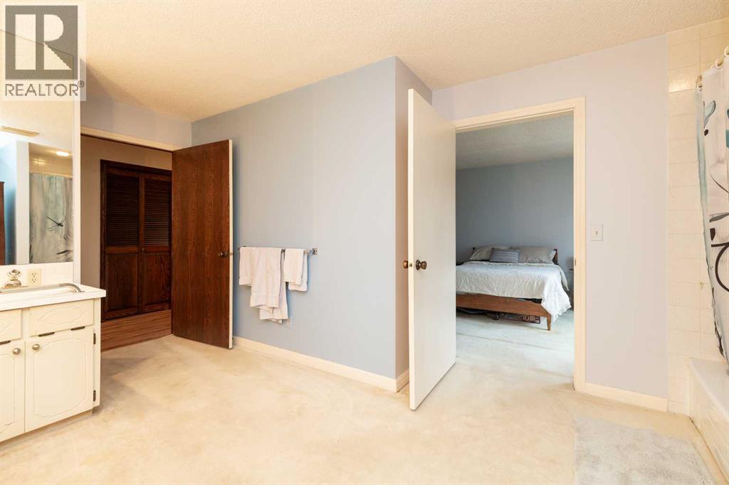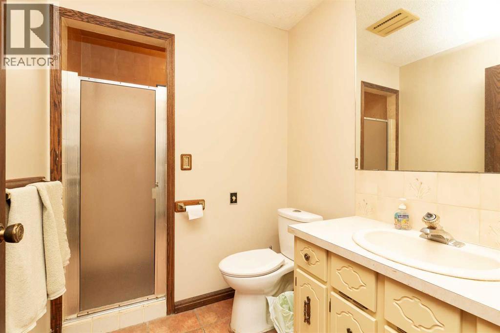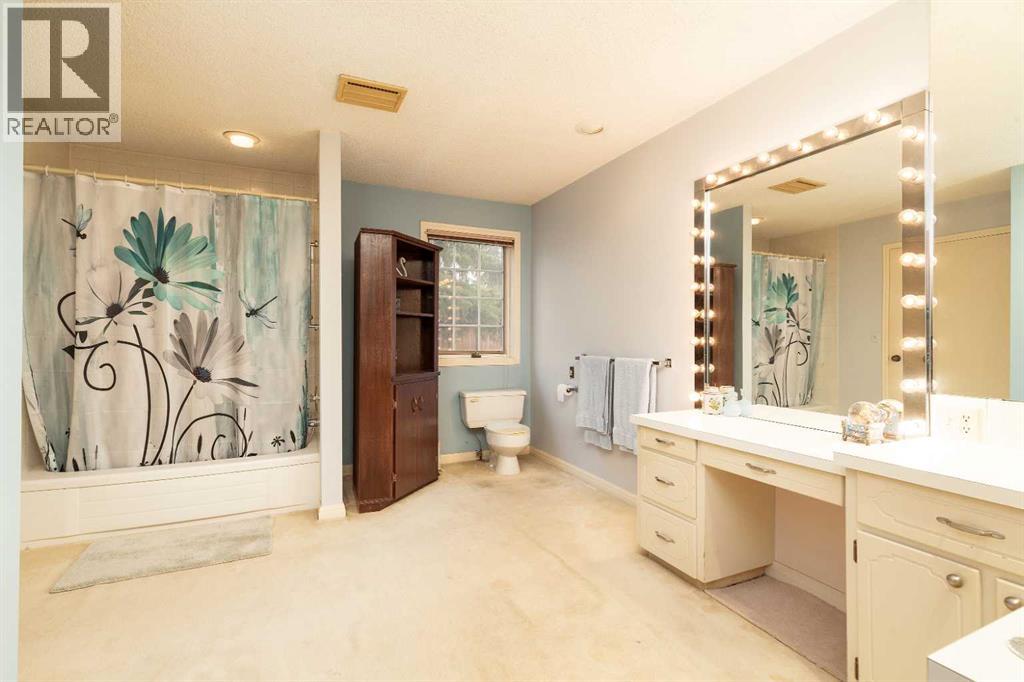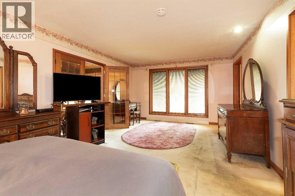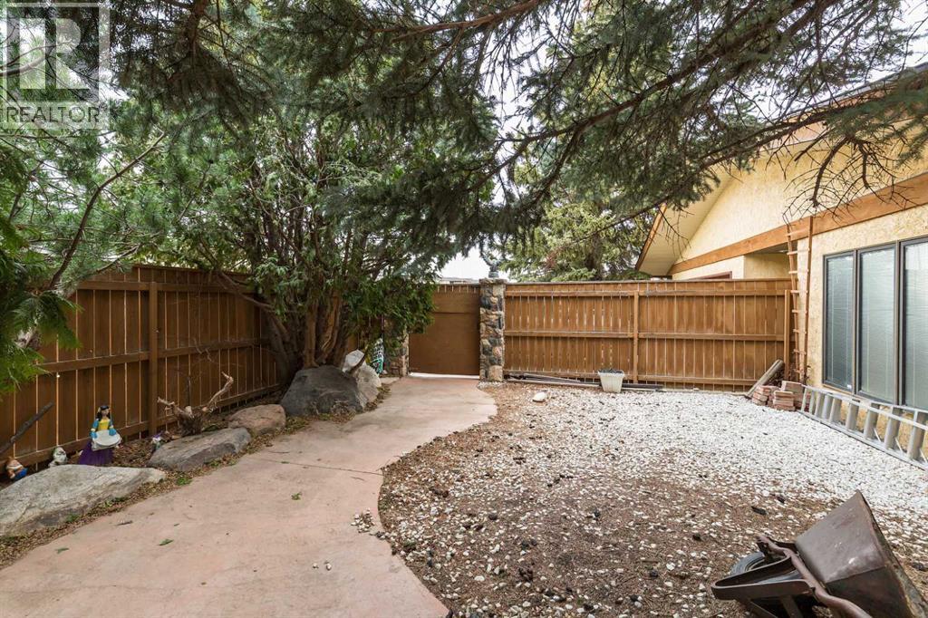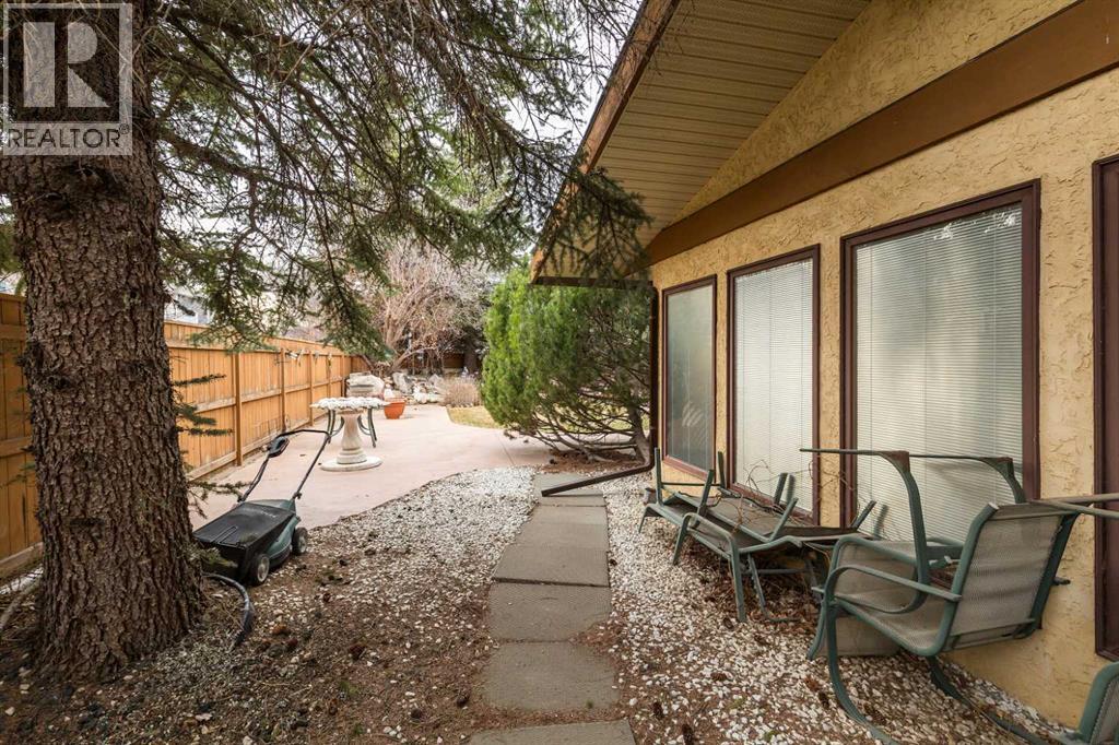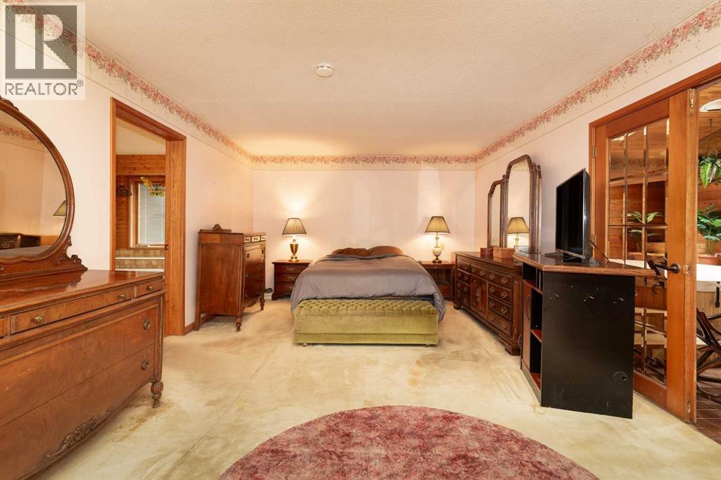 Welcome to 2125 25 St. Tucked away in a quiet cul-de-sac, this impressive 3,420 sq. ft. bungalow offers a rare blend of space, character, and refined design, all set on a beautifully treed 12,775 sq. ft. lot. Showcasing a warm mid-century modern influence, the home features timeless architectural elements, natural materials, and a layout that emphasizes both form and function. The main living area is truly striking, highlighted by soaring beamed cedar vaulted ceilings and a thoughtfully designed layout that balances formal and casual spaces. A floor-to-ceiling custom rock wood-burning fireplace serves as a stunning focal point, gracefully separating the formal living and sitting rooms from the inviting family room, kitchen, and breakfast nook. The expansive kitchen is well-appointed with a large island, built-in oven, and a distinctive brick surround stovetop. The home features 3 bedrooms, a separate office, and 3 full bathrooms, with all 3 bedrooms enjoying direct access to a bathroom, including two bedrooms with private ensuites,. The primary suite is a luxurious retreat, complete with a walk-in closet and a spacious ensuite offering dual vanities, a soaker tub, and a separate shower. Just off the primary bedroom, a private hot tub room with a skylight and sliding glass doors opens to the patio—creating a serene, spa-like escape. Outdoors, the fully fenced and landscaped yard is framed by mature trees, providing both privacy and a tranquil setting. A double attached garage and space for RV parking compliment this exceptional property. A distinctive home offering timeless appeal in a sought-after Coaldale location. (id:63190)