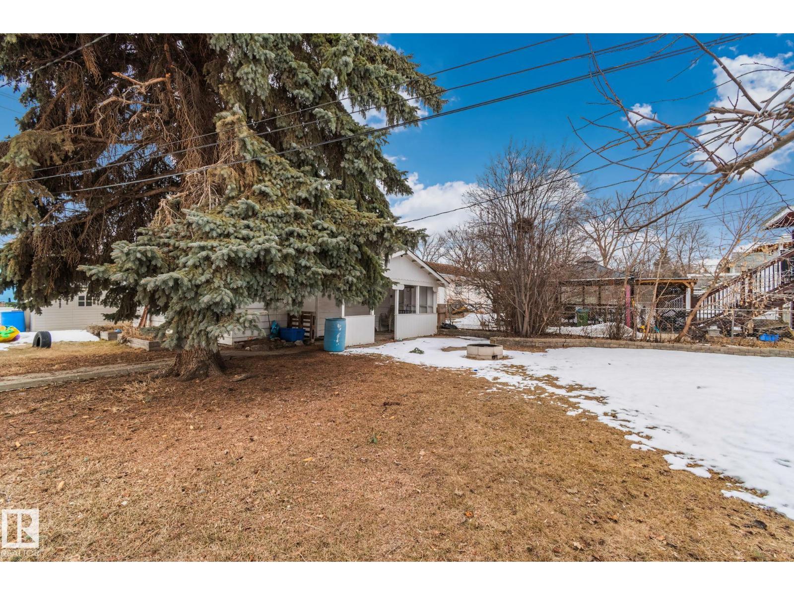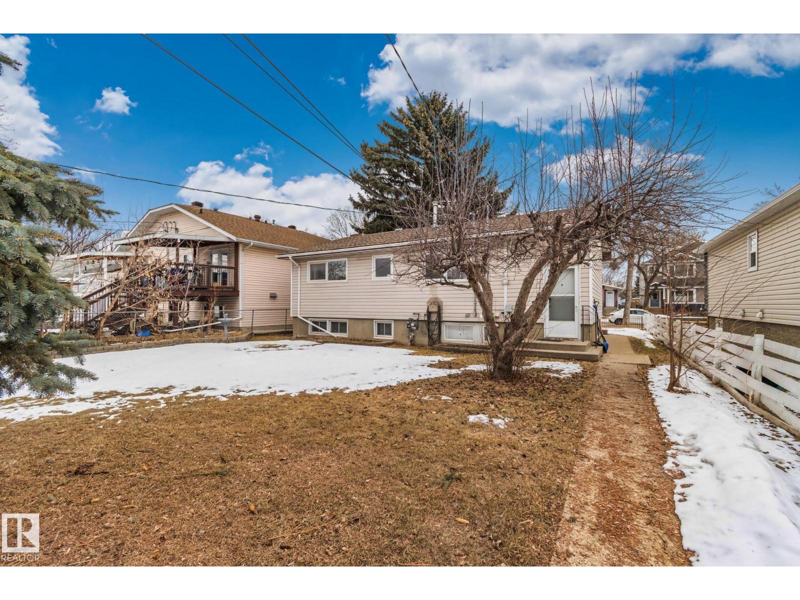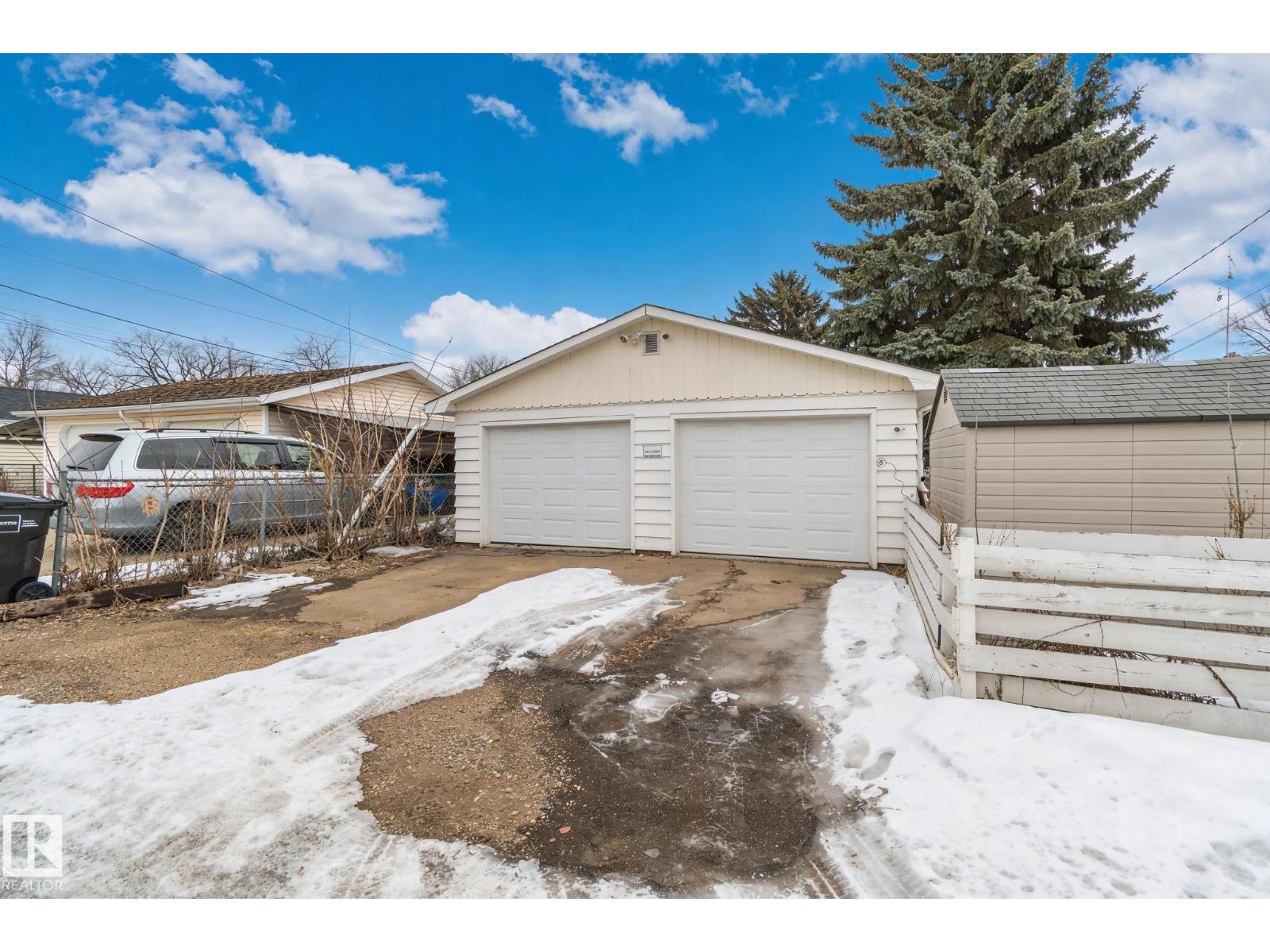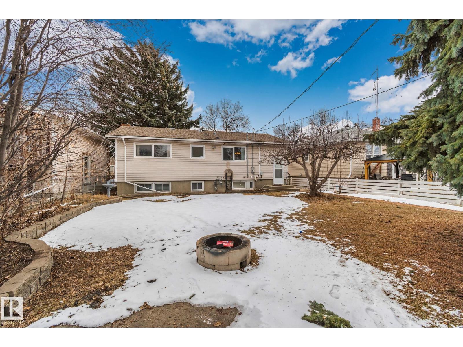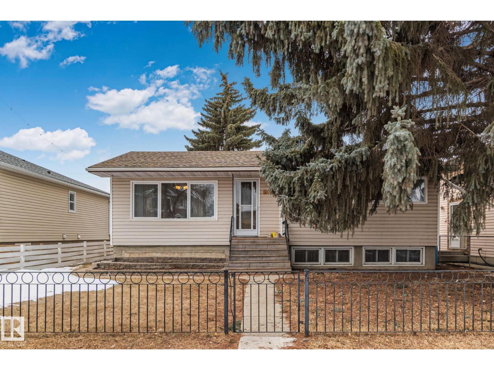 Perfect for Investors and Developers. Lot size: 7490.82 Sq Ft, Zoned RF3 (small scale infill development). Close to NAIT, Concordia University, bus routes, bike lanes. 3 bedroom bungalow, 2 bedroom basement suite w/separate entry. Seller discloses there is no secondary suite permit. Basement was renovated in 2024. Natural light, East facing. Original hardwood floors. Kitchen has large window overlooking the backyard. Kitchens were renovated in 2017. Double detached garage, w/new concrete floors, 40 A 220 V, gas line for heat, verandah. Fully fenced (wrought iron in front), mature trees. Good mix of homes and infill development in area. This house is suitable as a primary residence, as revenue property, or for infill development. (id:63190)