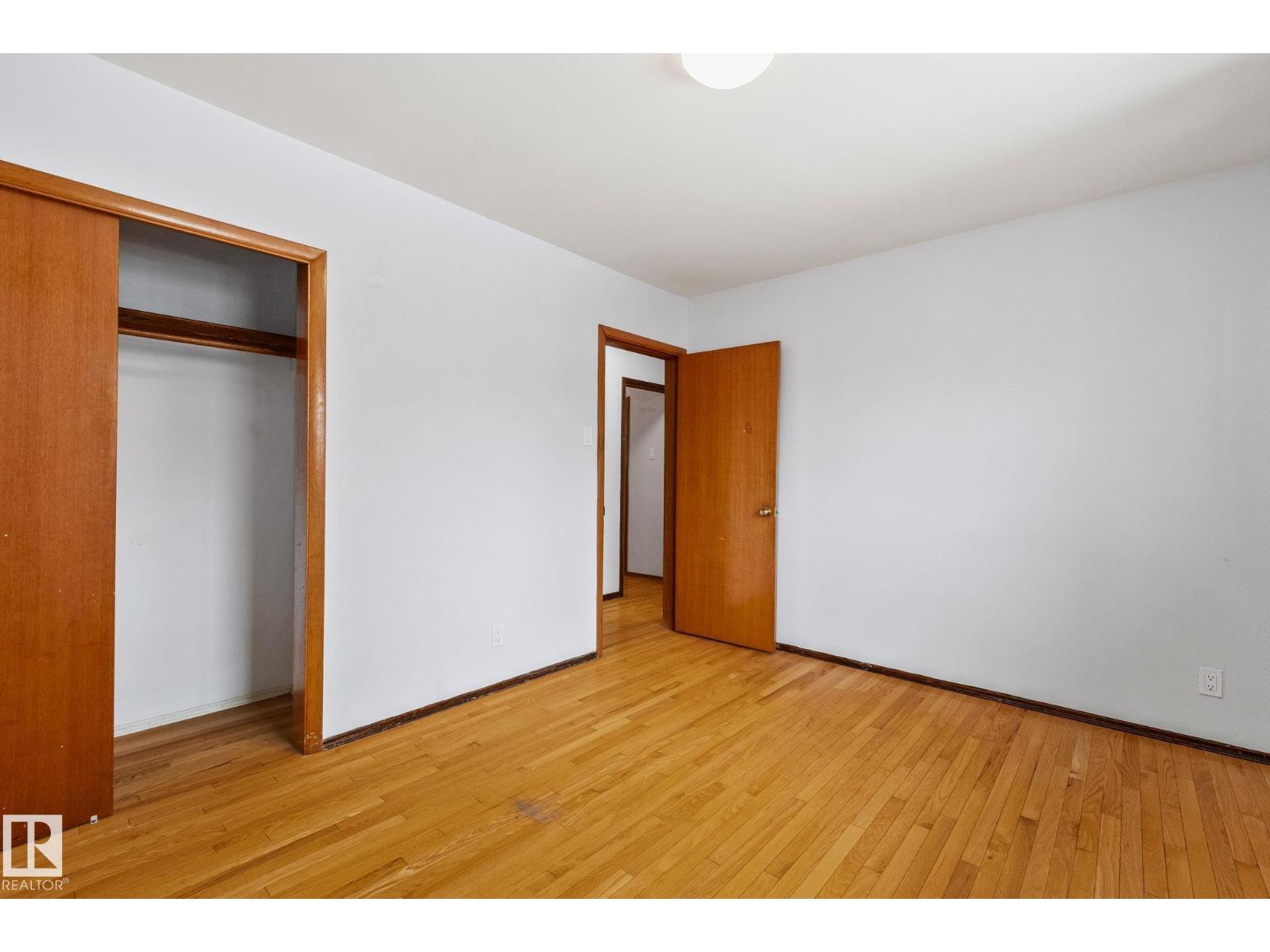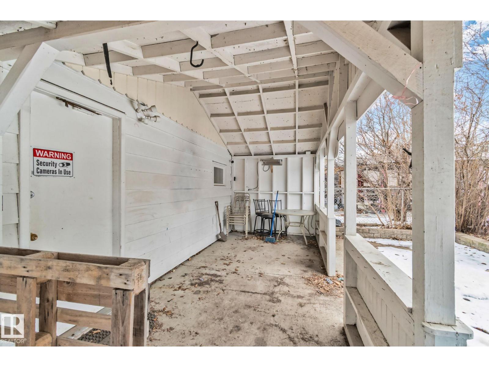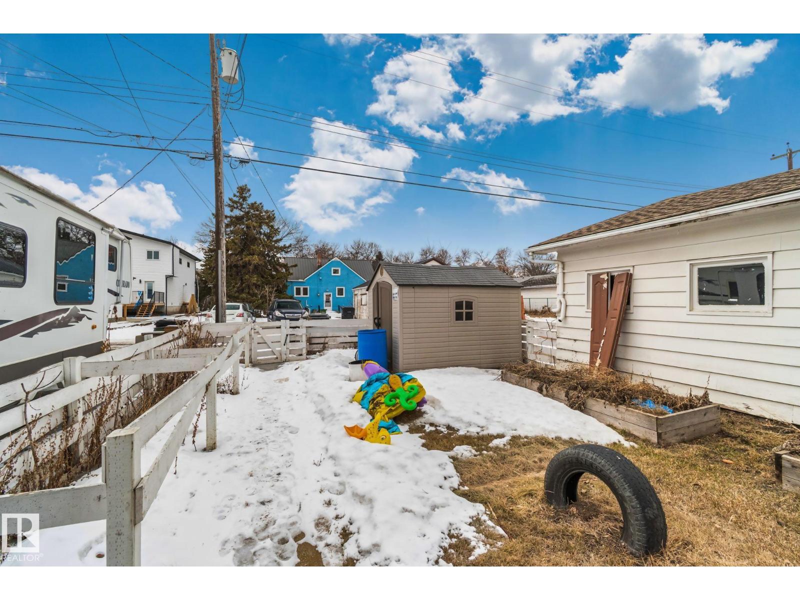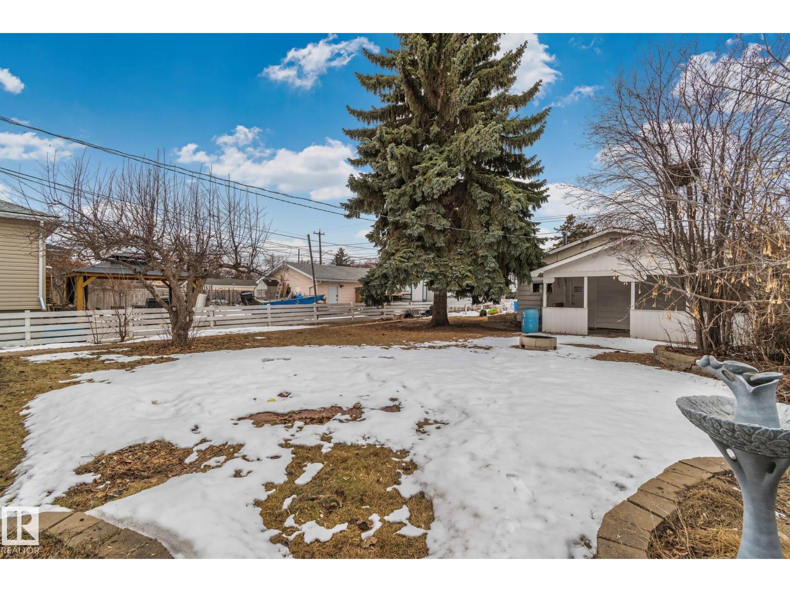 Perfect for Investors and Developers. Lot size: 7490.82 Sq Ft, Zoned RF3 (small scale infill development). Close to NAIT, Concordia University, bus routes, bike lanes. 3 bedroom bungalow, 2 bedroom basement suite w/separate entry. Seller discloses there is no secondary suite permit. Basement was renovated in 2024. Natural light, East facing. Original hardwood floors. Kitchen has large window overlooking the backyard. Kitchens were renovated in 2017. Double detached garage, w/new concrete floors, 40 A 220 V, gas line for heat, verandah. Fully fenced (wrought iron in front), mature trees. Good mix of homes and infill development in area. This house is suitable as a primary residence, as revenue property, or for infill development. (id:63190)
