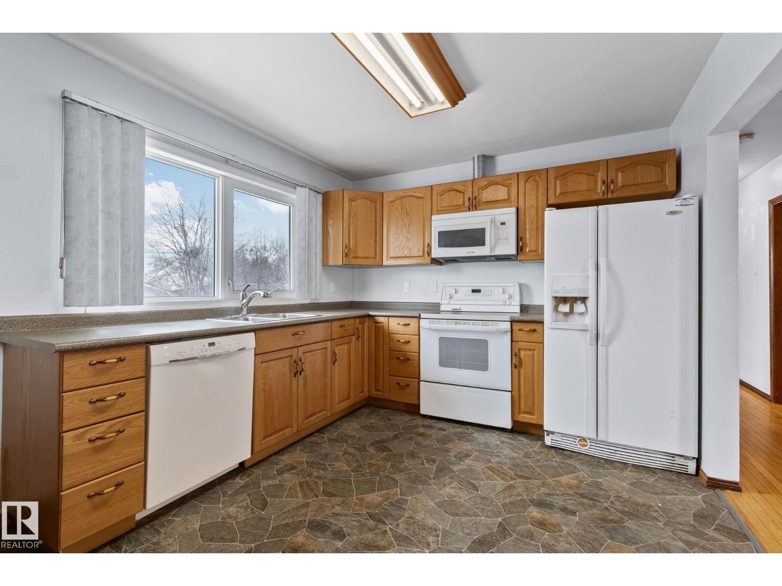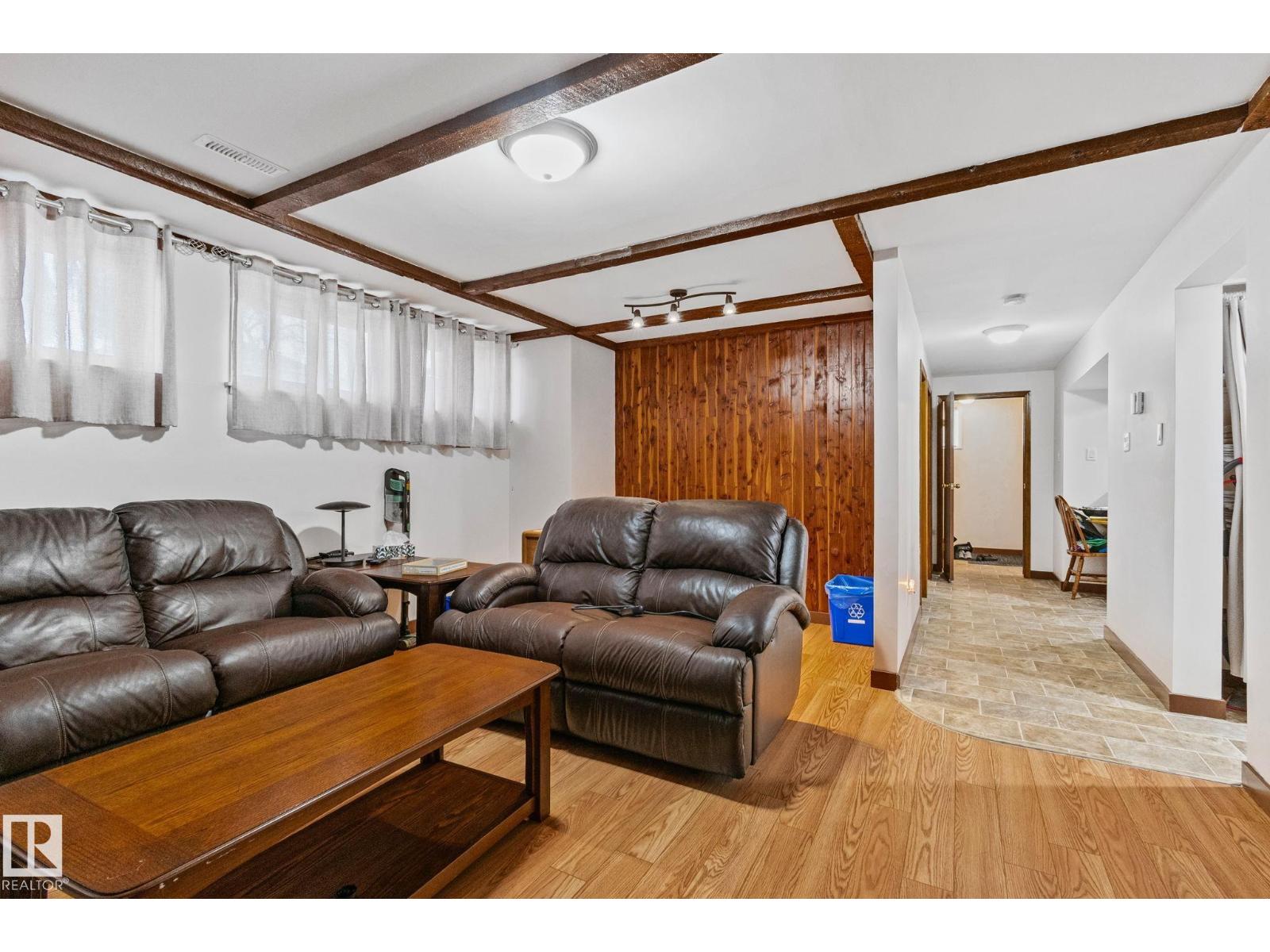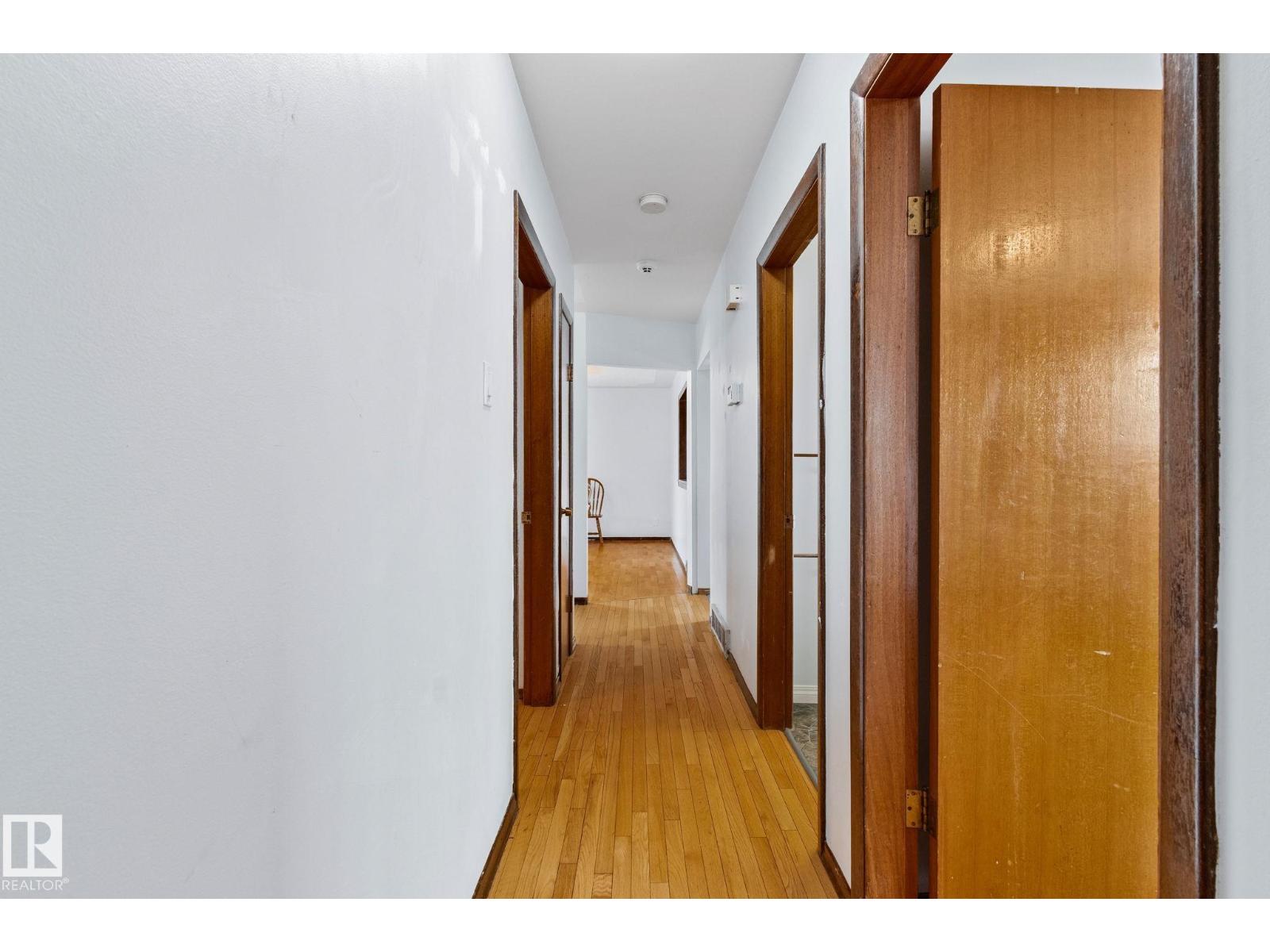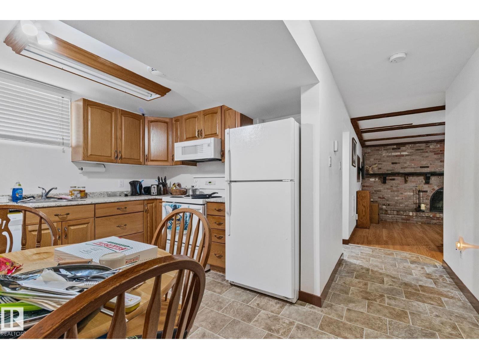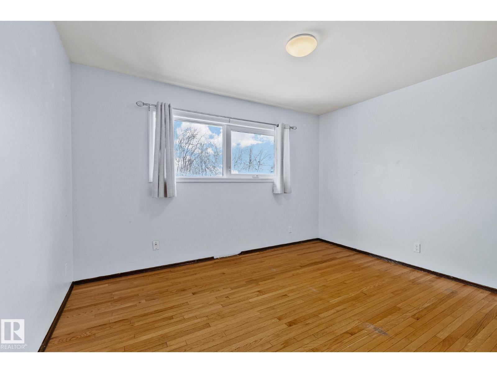 Perfect for Investors and Developers. Lot size: 7490.82 Sq Ft, Zoned RF3 (small scale infill development). Close to NAIT, Concordia University, bus routes, bike lanes. 3 bedroom bungalow, 2 bedroom basement suite w/separate entry. Seller discloses there is no secondary suite permit. Basement was renovated in 2024. Natural light, East facing. Original hardwood floors. Kitchen has large window overlooking the backyard. Kitchens were renovated in 2017. Double detached garage, w/new concrete floors, 40 A 220 V, gas line for heat, verandah. Fully fenced (wrought iron in front), mature trees. Good mix of homes and infill development in area. This house is suitable as a primary residence, as revenue property, or for infill development. (id:63190)