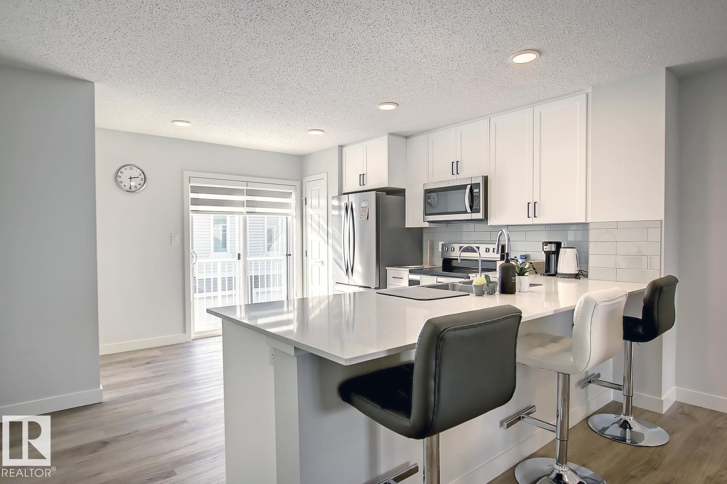 Experience elevated living in this stunning and spacious 2-bedroom, 2.5 bath residence with a double attached garage in Chappelle Gardens, thoughtfully designed with modern elegance and comfort in mind. Welcome to a sun-filled open-concept layout with rich flooring and a sophisticated living area anchored by a cozy fireplace, perfect for refined relaxation. The standout gourmet kitchen features sleek quartz countertops, premium stainless steel appliances, designer tile backsplash, and full-height cabinetry, seamlessly connecting to the dining space, and a private balcony for effortless entertaining, and ideal for quiet mornings or evening unwinding. Retreat upstairs to two generously sized bedrooms, each with its own private ensuite, offering a true sense of privacy and luxury. A stylish guest powder room completes the home. Perfectly positioned just minutes from premium shopping, dining, and major routes, this home delivers a seamless blend of luxury, location, and lifestyle. (id:63190)