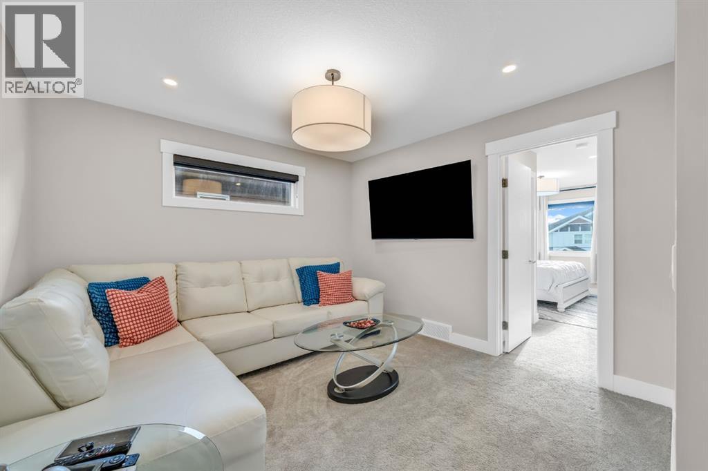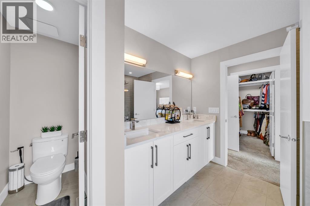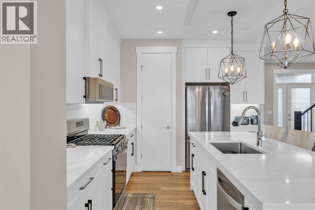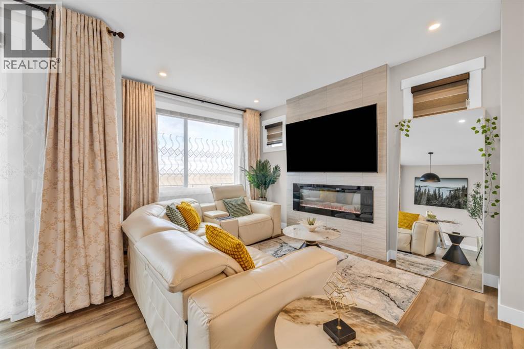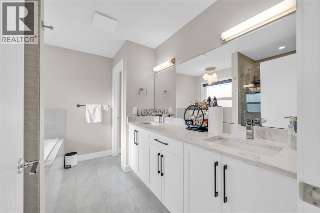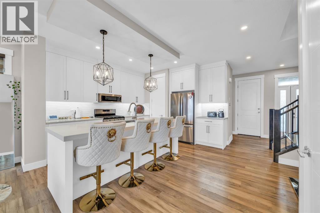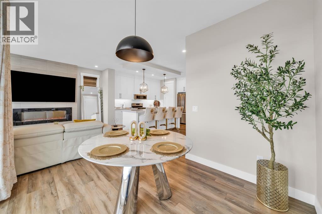 OPEN HOUSE - 19 APRIL - 12 TO 2 PM . RARE FIND — ONLY THE GARAGE IS ATTACHED! ENJOY THE PRIVACY OF A DETACHED HOME WITH THE VALUE OF A HALF-DUPLEX!Welcome to this stunning, fully upgraded home in the highly sought-after community of Kinniburgh South! This front-attached garage property offers a separate side entrance and backs onto no homes — just beautiful greenery and open views, giving you privacy that’s hard to find.Step inside to an impressive open-concept main floor featuring modern tones and high-end finishes throughout, including luxury vinyl plank flooring (LVP), soaring ceilings, sleek black hardware, pot lights, and an upgraded stair railing. The extended chef’s kitchen is the true centerpiece, showcasing floor-to-ceiling cabinetry, a stylish hood fan, stainless steel appliances, and a large island — all overlooking a bright living room with a built-in electric fireplace.Upstairs, enjoy the added space of a bonus room/loft, perfect for a second living area, office, or family lounge. You’ll also find 3 spacious bedrooms, including a luxurious primary retreat with a walk-in closet and a spa-inspired 5-piece ensuite. Custom MDF built-in shelving is featured in all closets, and the upper-level laundry room offers added convenience with extra storage.The undeveloped basement includes a separate side entrance and two windows, providing excellent potential for future development or a legal suite (subject to city approval).Additional highlights include central air conditioning (A/C) for year-round comfort and an unbeatable location close to East Lake School, Chestermere High School, shopping plazas, a car wash, and Lakeside Golf Club.This is the one that truly checks all the boxes — privacy, upgrades, and location. Book your private showing today! (id:63190)
