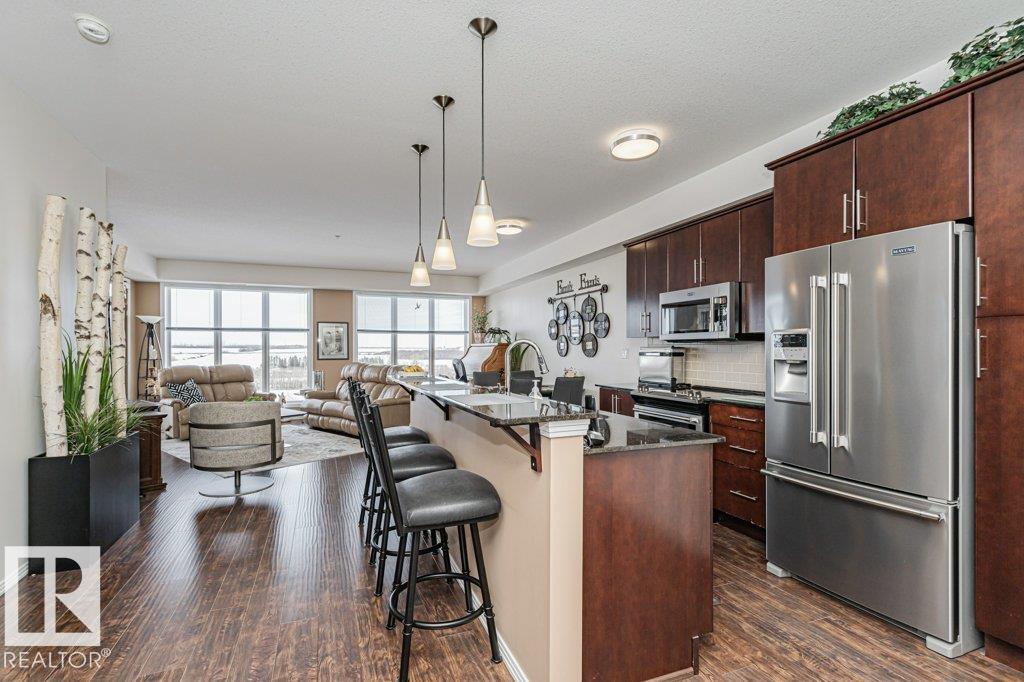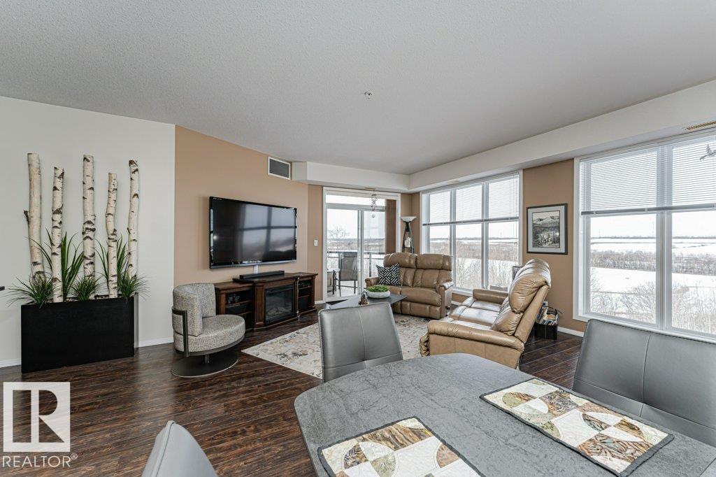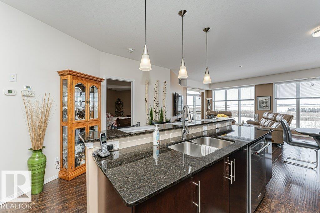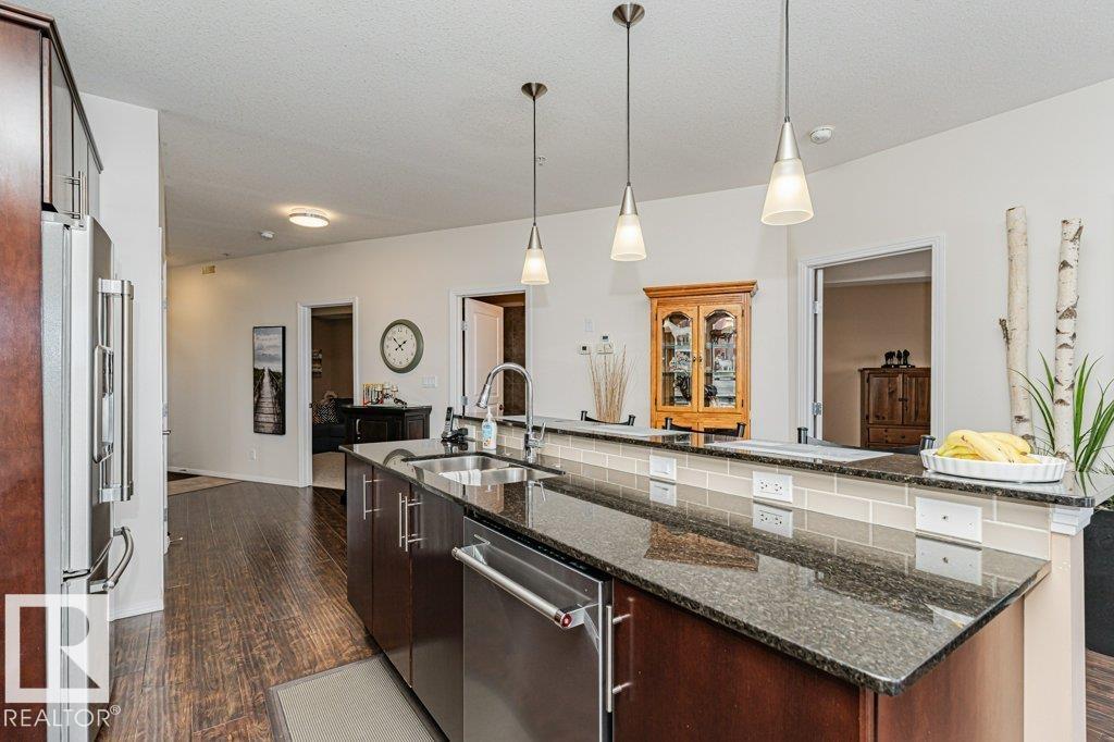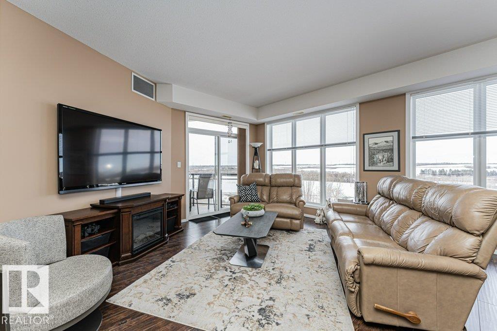 Wow—unobstructed River Valley views! Welcome to Sherridon View in sought-after Sherridon Heights. This stunning 2 bedroom, 2 bathroom condo is perfectly suited for a professional couple or empty nester seeking style and convenience. Featuring engineered Hardwood & Ceramic floors, a modern open-concept layout, and floor-to-ceiling windows that flood the space with natural light and showcase breathtaking views of the North Saskatchewan River Valley. The chef-inspired kitchen offers granite countertops and stainless steel appliances. Spacious bedrooms include a primary with full ensuite. Enjoy Central A/C, in-suite laundry, and a sunny balcony with dual gas outlets for BBQ and Fire table option — perfect for entertaining while taking in incredible sunsets. Includes TWO titled underground heated parking stalls. Steps to walking trails, parks, shopping, and public transit. Don’t miss this opportunity! (id:63190)