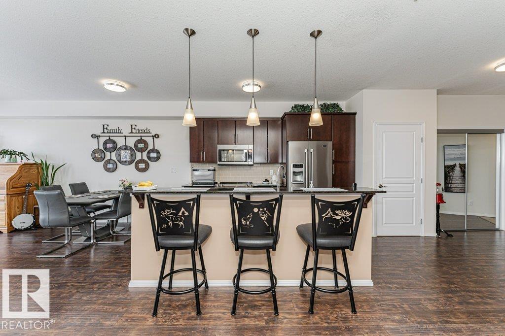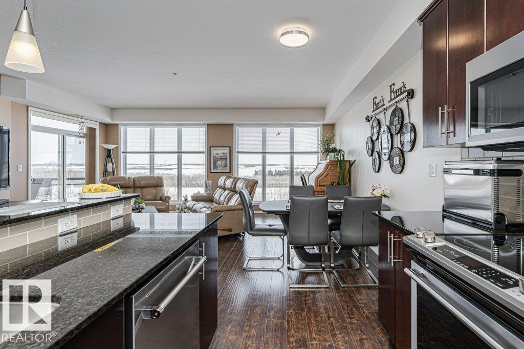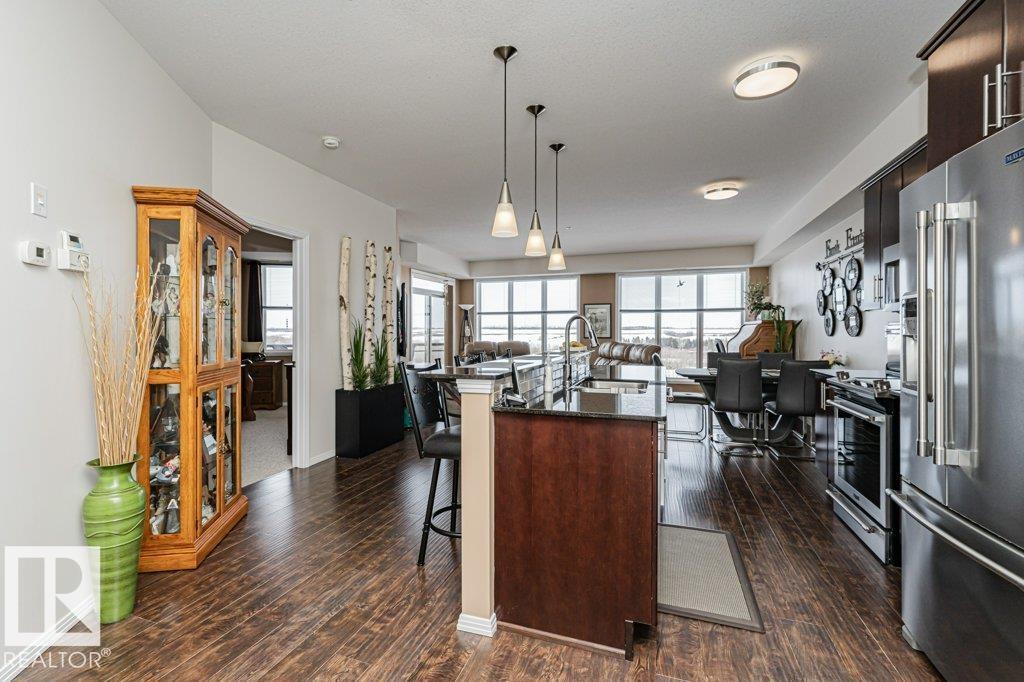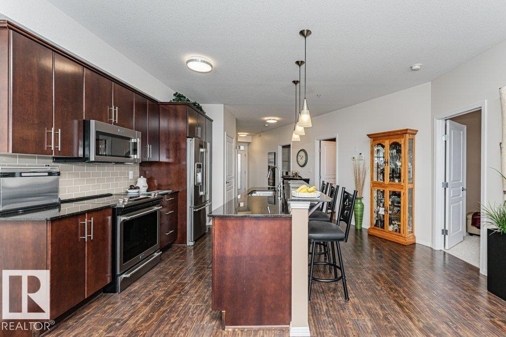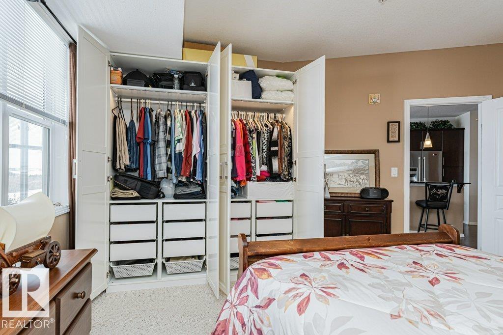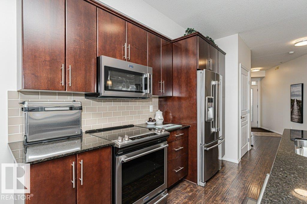 Wow—unobstructed River Valley views! Welcome to Sherridon View in sought-after Sherridon Heights. This stunning 2 bedroom, 2 bathroom condo is perfectly suited for a professional couple or empty nester seeking style and convenience. Featuring engineered Hardwood & Ceramic floors, a modern open-concept layout, and floor-to-ceiling windows that flood the space with natural light and showcase breathtaking views of the North Saskatchewan River Valley. The chef-inspired kitchen offers granite countertops and stainless steel appliances. Spacious bedrooms include a primary with full ensuite. Enjoy Central A/C, in-suite laundry, and a sunny balcony with dual gas outlets for BBQ and Fire table option — perfect for entertaining while taking in incredible sunsets. Includes TWO titled underground heated parking stalls. Steps to walking trails, parks, shopping, and public transit. Don’t miss this opportunity! (id:63190)