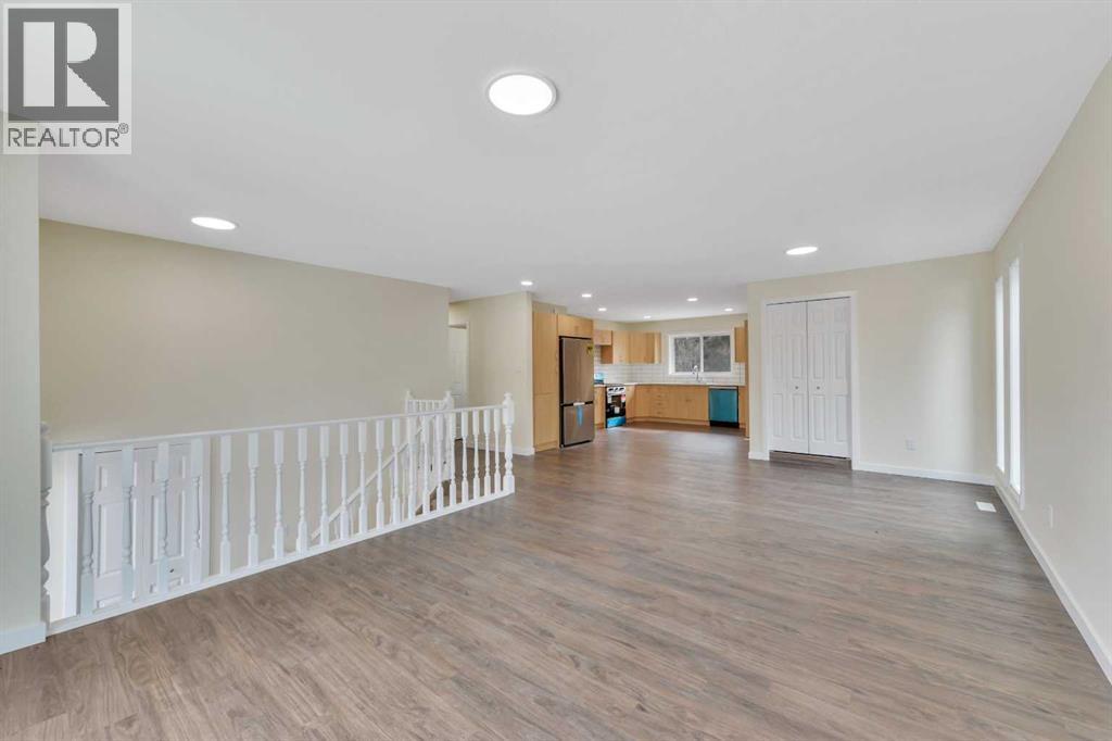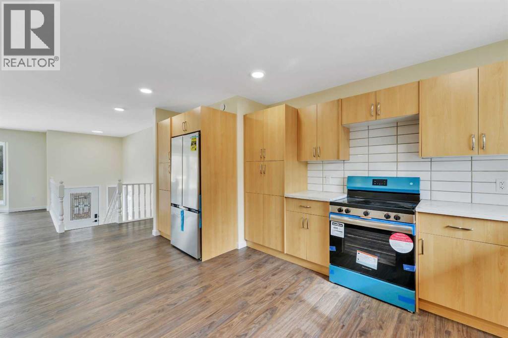 Welcome to 27 Gregson Crescent—where modern updates meet a comfortable, move-in ready lifestyle. Immediate possession is available on this fully rebuilt 4 bedroom, 3 bathroom bi-level offering almost 1,300 sq. ft. above grade, complete with a walk-up basement. The interior was completely rebuilt in 2023/24 by DKI – Central Alberta, this home also includes the balance of the Alberta New Home Warranty Program for added peace of mind. A bright, welcoming entry leads into an open concept main floor finished with durable vinyl plank flooring, creating a warm, open and spacious feel throughout. The living room features floor-to-ceiling bay windows overlooking the front yard, filling the space with natural light. The dining area is equally inviting, with a large window that make it perfect for hosting family and friends. The kitchen is thoughtfully designed with an abundance of soft-close cabinetry, oversized drawers, built-in pantries, plenty of counter space, full tile backsplash, and a window above the sink looking out to the south facing backyard. Brand new stainless steel appliances complete the space. Just off the kitchen, a separate entry leads to the wrap-around deck—an ideal spot to relax or entertain. The primary bedroom offers plenty of space for a king-sized bed and additional furniture, along with dual closets, a 4-piece ensuite, and sliding patio doors that open directly onto the deck. Two additional main floor bedrooms are generously sized and conveniently located near the main 4-piece bathroom. Downstairs, the fully finished basement with high ceilings provides even more living space, including a large family room, the fourth bedroom & yet another 4-piece bathroom. The laundry with a new front-load washer and dryer are also here beside the outside entry that offers added flexibility and direct access to the backyard. The double attached garage is insulated and finished with painted drywall. Outside, the fully fenced yard includes enclosed deck storage, a ga rden shed, fire pit, and plenty of green space surrounded by mature trees for added privacy and shade. Right beside a walking trail, with green space right behind you will enjoy easy access to parks, playgrounds, outdoor fitness areas and the Red Deer trail system. Walking distance to the St Teresa of Avila faith based elementary school, Glendale Science and Technology Middle school and the YMCA. Ideally situated between Gaetz & Taylor all the shopping you need is a short drive. (id:63190)