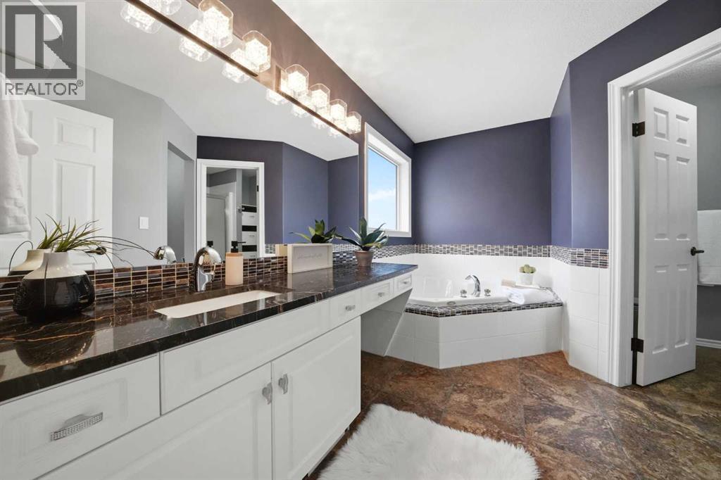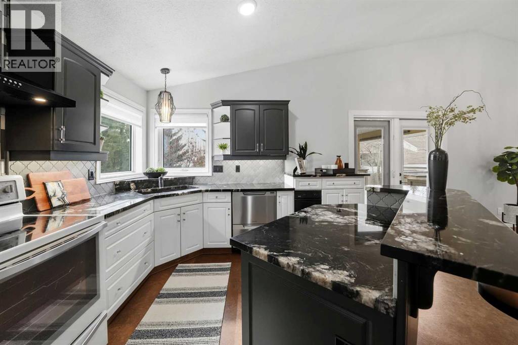 This STUNNING 1600 sq.ft Executive BUNGALOW offers exceptional comfort and STYLE, featuring a beautiful STUCCO EXTERIOR and a TRIPLE HEATED GARAGE!! The main floor boasts soaring VAULTED CEILINGS and a cozy gas fireplace in the living room, creating a WARM and INVITING atmosphere! The NEWLY RENOVATED kitchen is a true highlight, showcasing ELEGANT GRANITE COUNTERTOPS, a corner pantry and an eat up breakfast ISLAND. Kitchen is also nicely equipped with a built-in wine rack, garburator, trash compactor, dual size dishwasher and upgraded stainless fridge with water/ice. A beautiful BRIGHT OPEN CONCEPT welcomes you, freshly painted walls, and a custom stone feature wall that can be enjoyed from your kitchen, dining and reading nook! From the dining room step out onto a MAINTENANCE FREE deck that offers a COVERED PATIO, PRIVACY, and a TRANQUILL WATER FOUNTAIN perfect for outdoor relaxation and ENTERTAINING. The SPACIOUS primary bedroom is located on the main floor and serves as a private retreat. It features a LUXURIOUS 4-PIECE ensuite complete with a CORNER SOAKER jet tub, separate water closet, and a walk-in closet. Additional touches like a ceiling fan and built in cabinetry enhance both comfort and functionality. Other great features include: TRI-LOCK UPGRADED FRONT DOOR, Sprinkler system, outside fire table, 5 year old shingles, 5 year old double patio doors, vinyl fence, garden shed, gas line for bbq, cork flooring, main floor laundry, operational in floor heat, wired for air conditioning, theatre room, RI for future wet bar, custom JET SHOWER, RI surround in media room. This one-of-a-kind CUSTOM BUNGALOW has 3 spacious bedrooms in the basement, a custom tiled 3-piece bathroom, a large family room, and media room. This beautiful home is nestled in a highly desirable keyhole location, offering privacy and convenience. Perfectly situated close to schools, shopping and bus routes. Immaculately cared for, and lovingly maintained, showcasing pride of ownership throughou t. Every detail reflects the WARMTH and attention it has received over the years, making it completely MOVE-IN-READY!!! (id:63190)