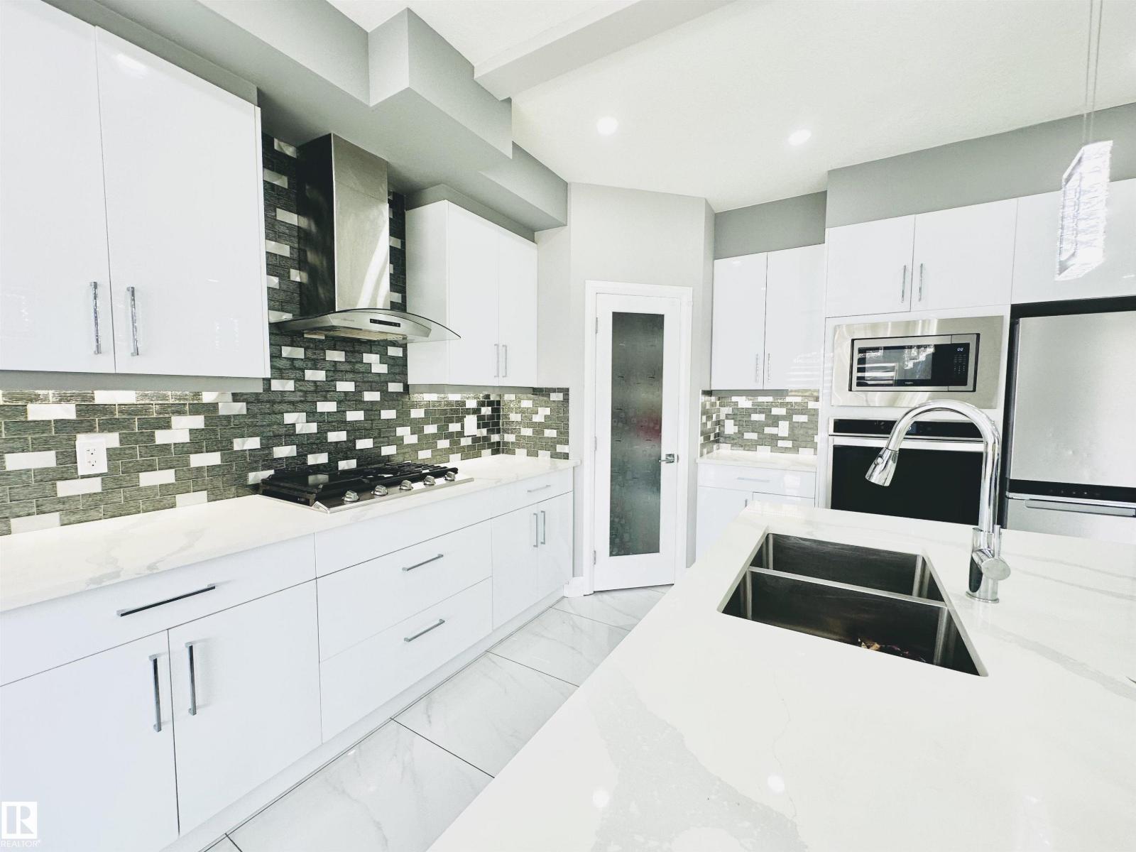 Positioned on a quiet cul-de-sac and backing a PARK, this residence combines prestige & lifestyle. Experience refined living in this elegant 2-storey, offering 6 beds & 5 baths incl. a fully finished LEGAL SUITE with total of approx 3,176 sq ft of living space! Step through the grand open-to-below foyer into a sunlit main floor featuring a designer kitchen w/ quartz counters, custom cabinetry & premium SS appliances — ideal for entertaining. A main-flr bed & full bath provide versatility for guests/Office or multi-gen living. Upstairs, indulge in the primary retreat w/ spa-inspired ensuite & walk-in closet, plus two add’l beds, full baths & a BONUS ROOM. OVERSIZED double-attached GARAGE, panoramic park views, near schools, trails & amenities. Where luxury, space, and location meet, all this McConachie DREAM HOME needs is YOU! (id:63190)