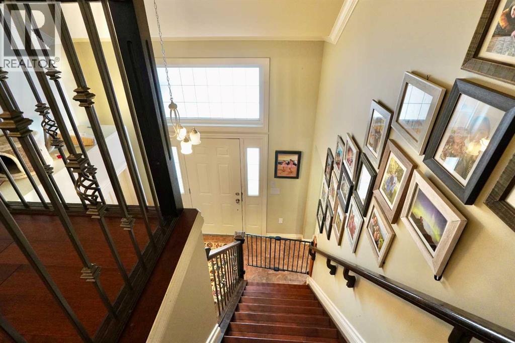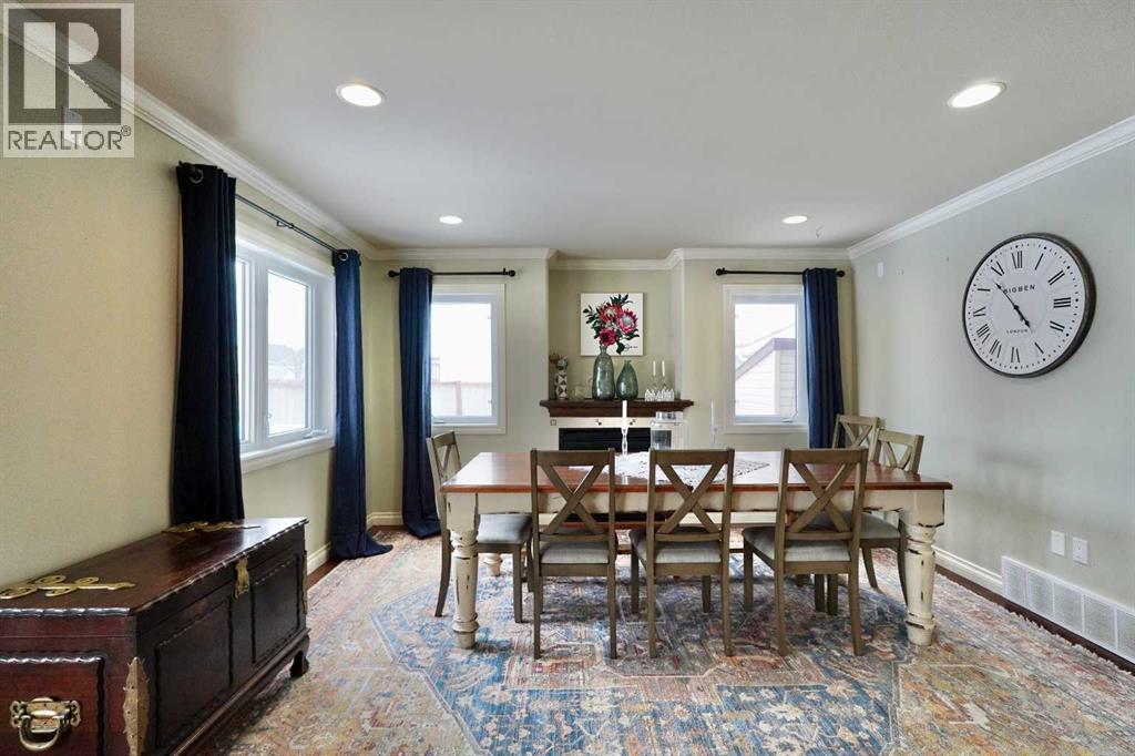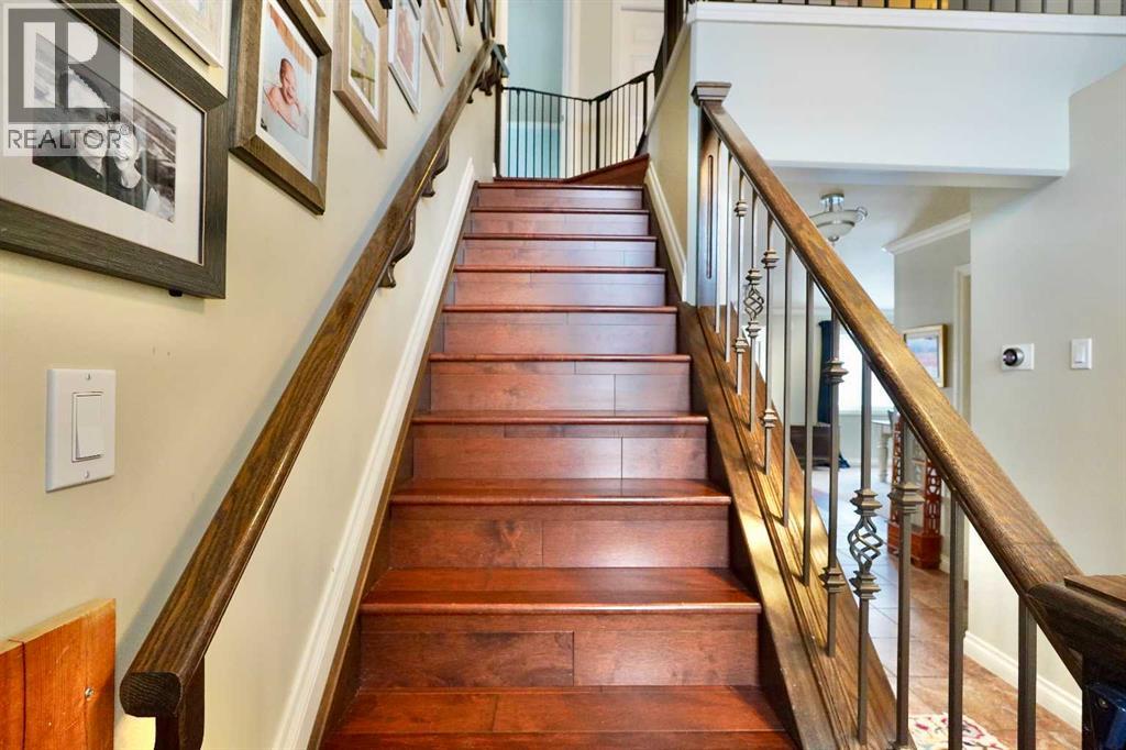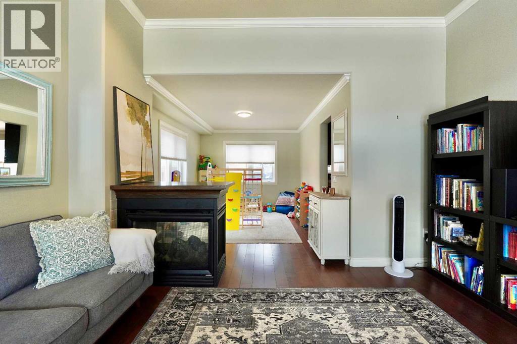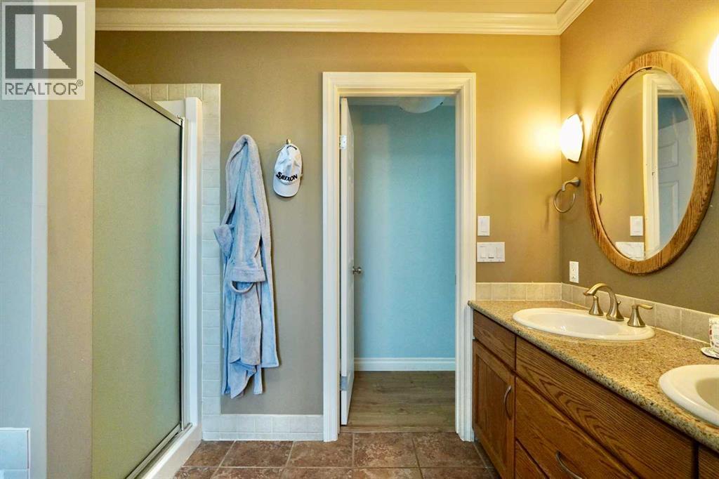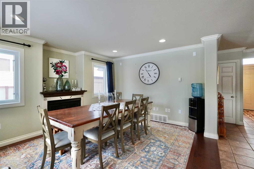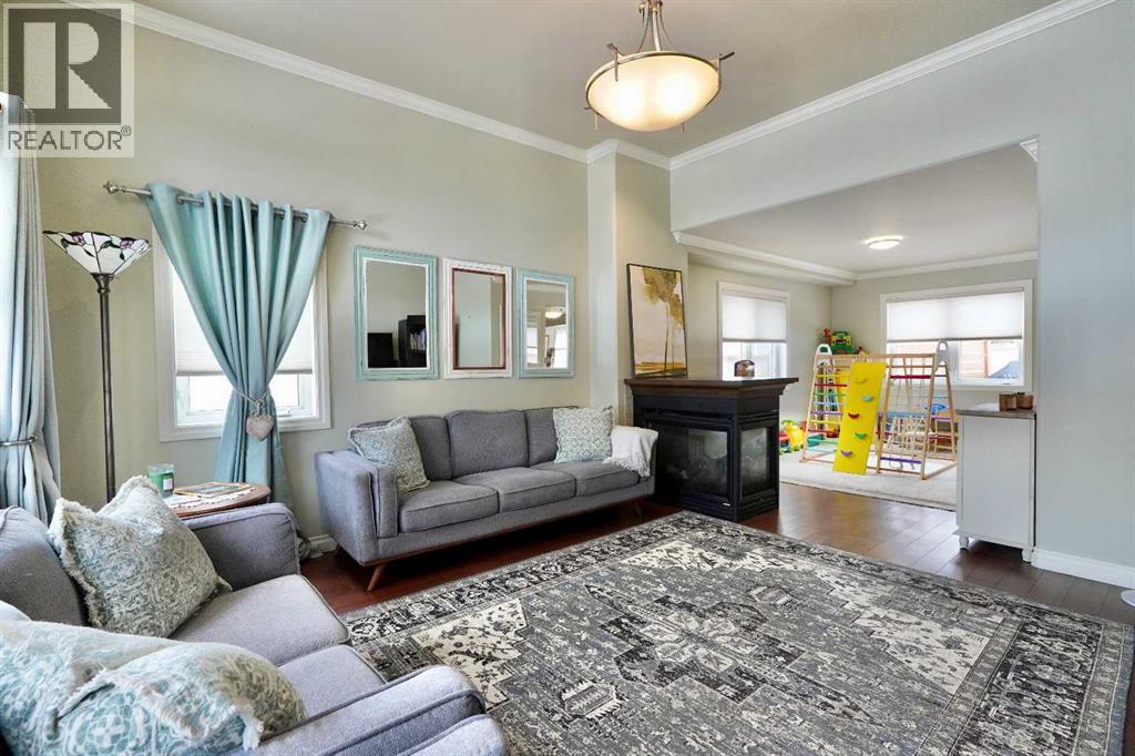 Welcome to this stunning, custom-built 1.5 story home in the highly sought-after Saddleback Ridge community—a true standout with exceptional craftsmanship, thoughtful design, and space for the whole family. Offering 5 bedrooms and 3.5 bathrooms, this property is an absolute must see. Step inside to an inviting open-concept layout centered around a gorgeous kitchen featuring rich wood cabinetry, quartz countertops, stainless steel appliances, a pantry, and an abundance of storage. The kitchen flows seamlessly into the cozy family room, complete with a gas fireplace, and an adjoining dining nook with garden doors leading to the back deck and brick patio—perfect for morning coffee or summer entertaining. On the opposite side of the kitchen, you’ll find an elegant formal living and dining area enhanced by a striking three-sided gas fireplace, creating a warm and welcoming atmosphere for gatherings. The main level also includes a convenient half bath and a well appointed laundry room with direct access to the heated double car garage.Upstairs, discover three generously sized bedrooms, including a spacious primary suite designed for relaxation. The primary retreat features a walk-in closet and a luxurious 5-piece ensuite with a large jetted tub. The additional full bathroom on this level also offers a deep soaker tub for added comfort. The finished full basement—with in-floor heating—adds even more living space. Here you’ll enjoy a large family room, two oversized bedrooms, a 3-piece bathroom, and a dedicated storage room. Outside, the beautifully landscaped and fully fenced yard is a true extension of the home. With a brick patio, retaining wall, underground sprinklers in the front and back, and a storage shed, the outdoor space is both functional and serene. Central air conditioning ensures comfort on warm summer days. This exceptional property offers incredible space, comfort, and features that cater to every member of the family. Don’t miss your chance to view t his remarkable home—book your private showing today and experience all it has to offer. (id:63190)
