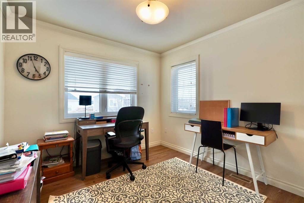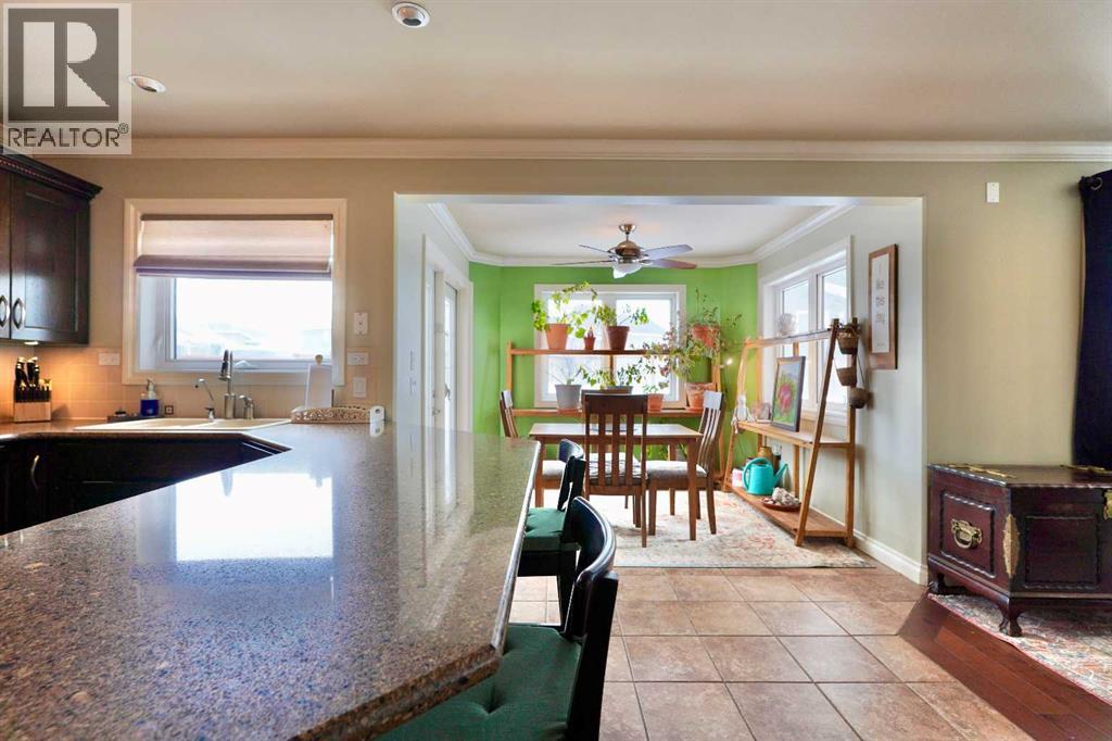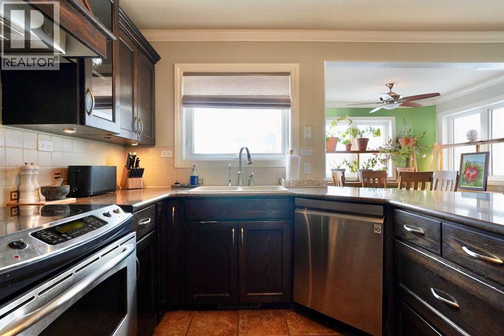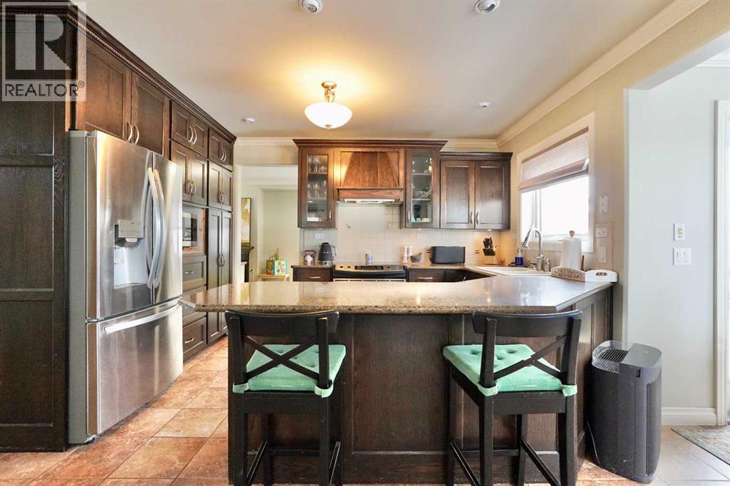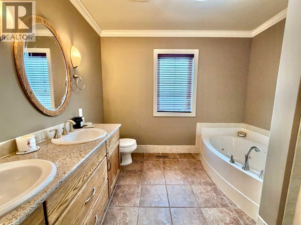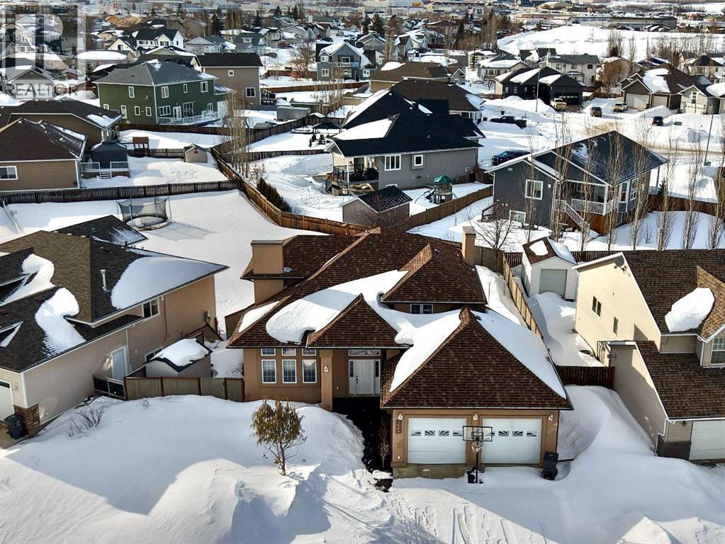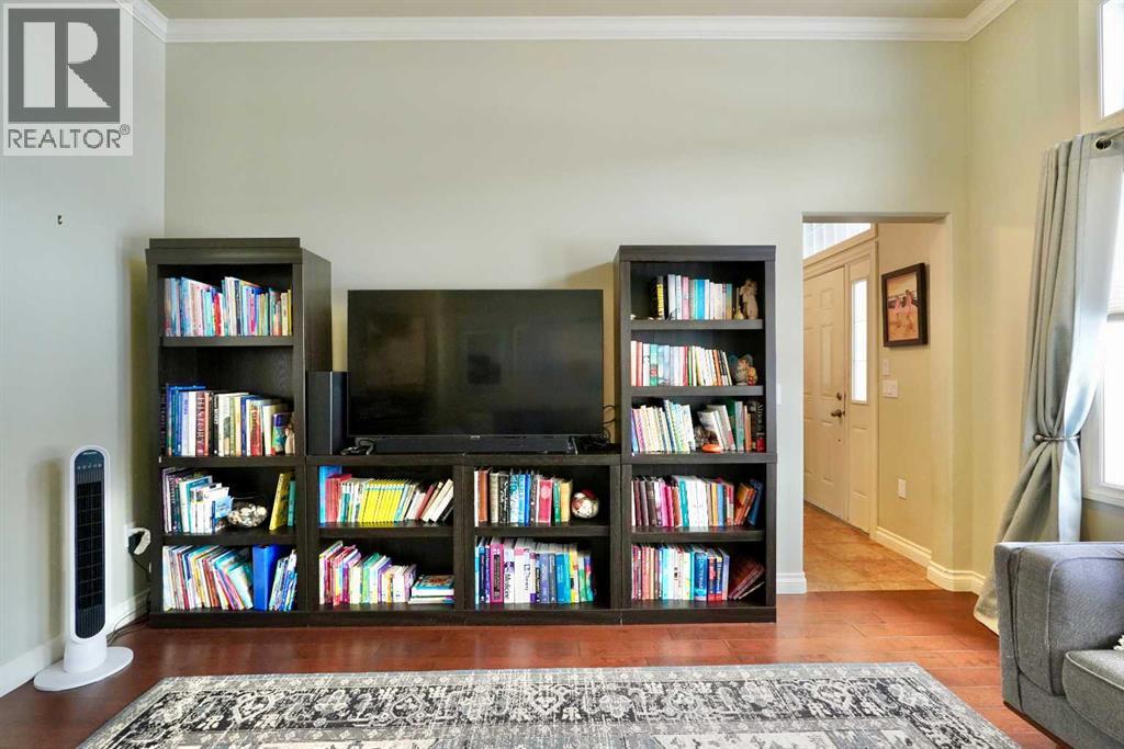 Welcome to this stunning, custom-built 1.5 story home in the highly sought-after Saddleback Ridge community—a true standout with exceptional craftsmanship, thoughtful design, and space for the whole family. Offering 5 bedrooms and 3.5 bathrooms, this property is an absolute must see. Step inside to an inviting open-concept layout centered around a gorgeous kitchen featuring rich wood cabinetry, quartz countertops, stainless steel appliances, a pantry, and an abundance of storage. The kitchen flows seamlessly into the cozy family room, complete with a gas fireplace, and an adjoining dining nook with garden doors leading to the back deck and brick patio—perfect for morning coffee or summer entertaining. On the opposite side of the kitchen, you’ll find an elegant formal living and dining area enhanced by a striking three-sided gas fireplace, creating a warm and welcoming atmosphere for gatherings. The main level also includes a convenient half bath and a well appointed laundry room with direct access to the heated double car garage.Upstairs, discover three generously sized bedrooms, including a spacious primary suite designed for relaxation. The primary retreat features a walk-in closet and a luxurious 5-piece ensuite with a large jetted tub. The additional full bathroom on this level also offers a deep soaker tub for added comfort. The finished full basement—with in-floor heating—adds even more living space. Here you’ll enjoy a large family room, two oversized bedrooms, a 3-piece bathroom, and a dedicated storage room. Outside, the beautifully landscaped and fully fenced yard is a true extension of the home. With a brick patio, retaining wall, underground sprinklers in the front and back, and a storage shed, the outdoor space is both functional and serene. Central air conditioning ensures comfort on warm summer days. This exceptional property offers incredible space, comfort, and features that cater to every member of the family. Don’t miss your chance to view t his remarkable home—book your private showing today and experience all it has to offer. (id:63190)