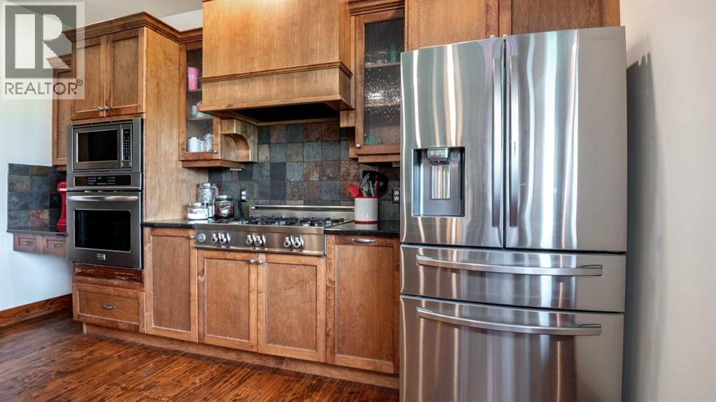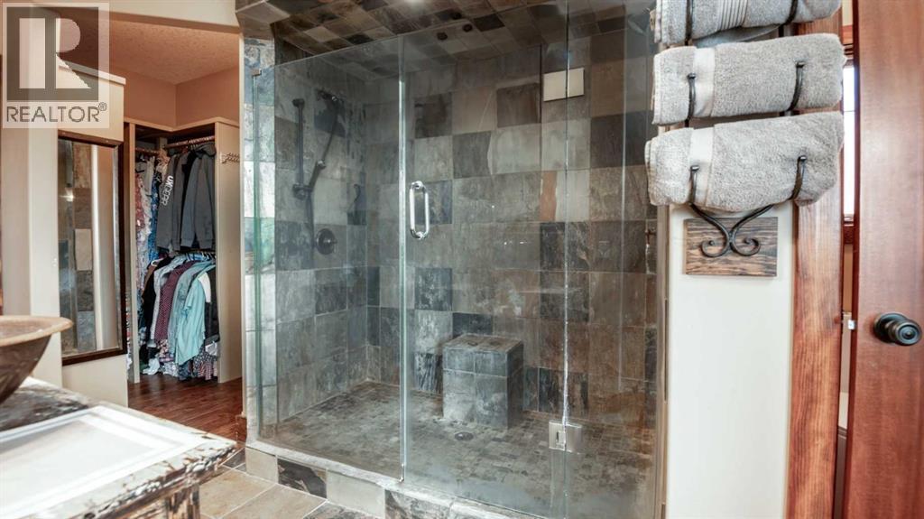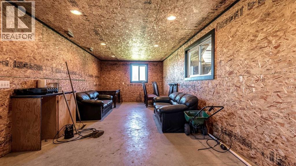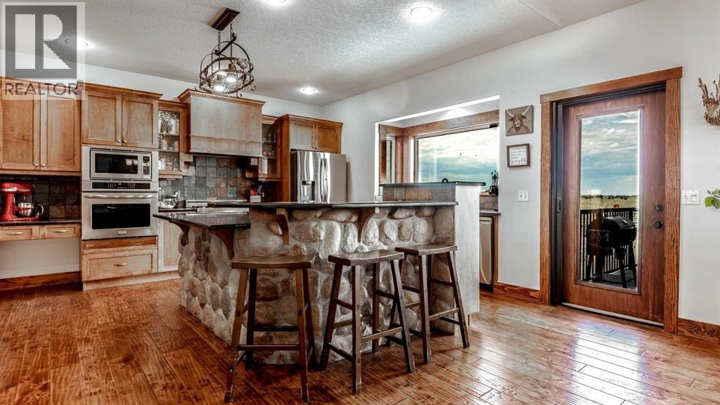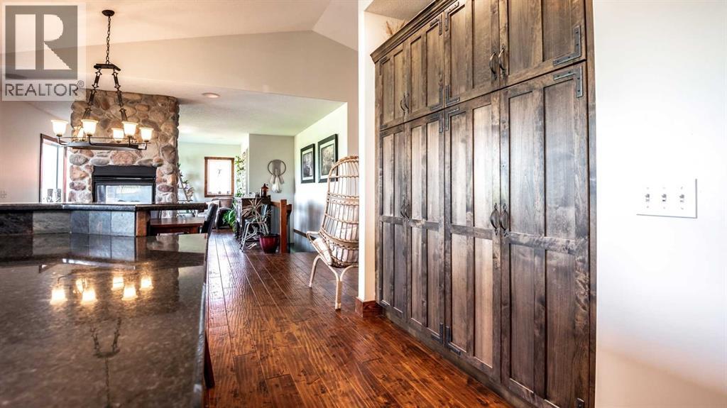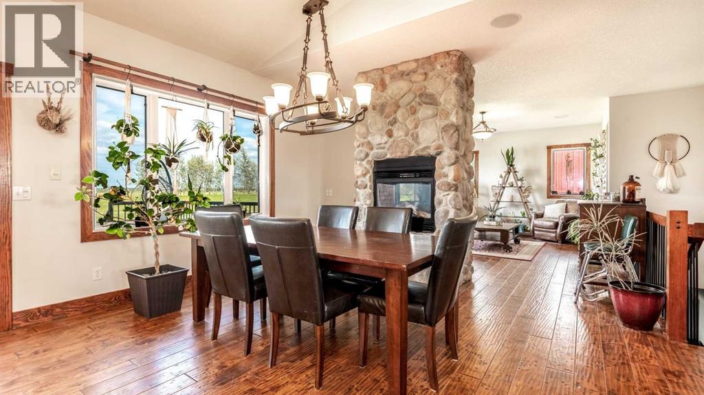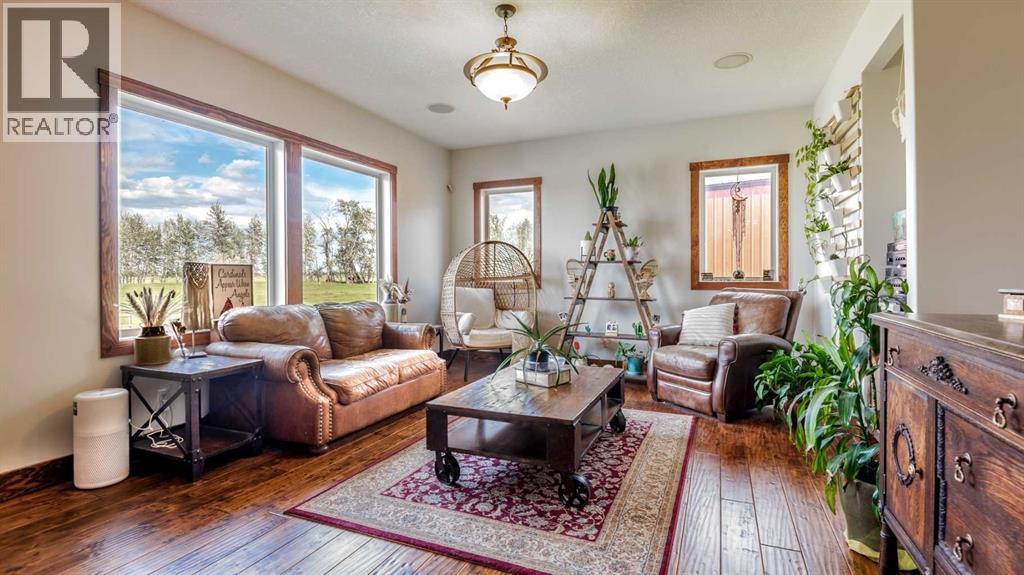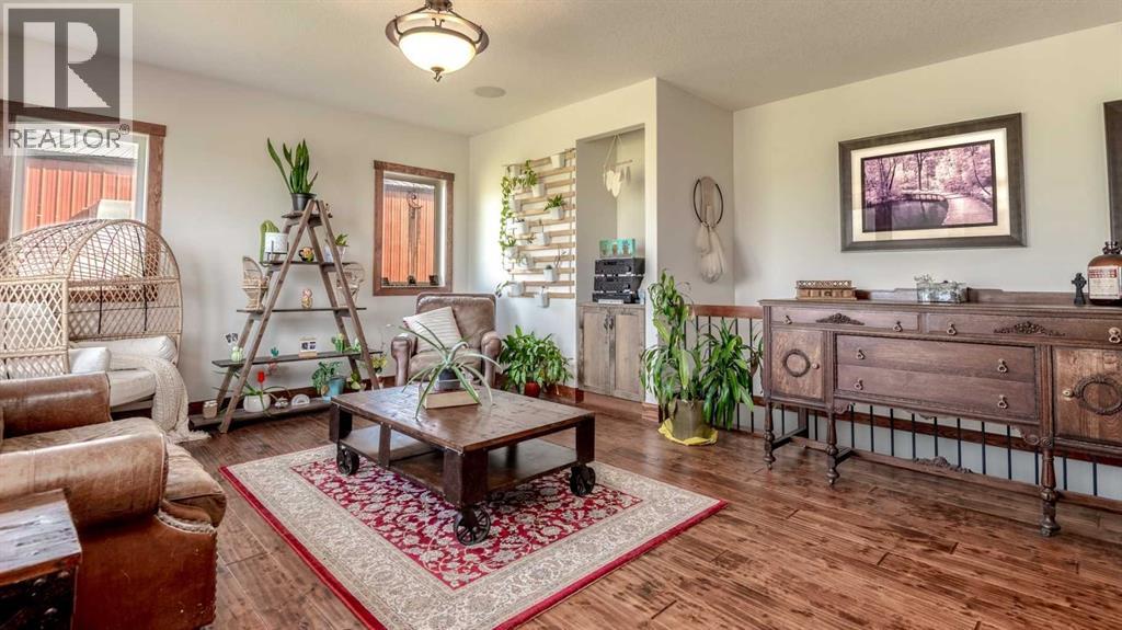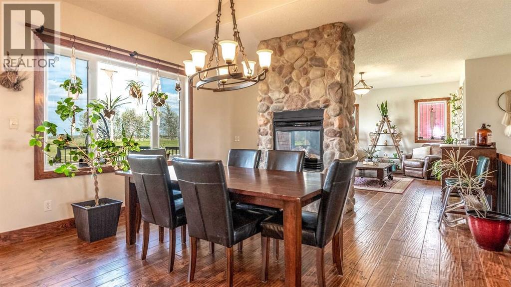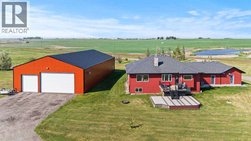 OPPORTUNITY KNOCKS - 3 ACRE PROPERTY WITHIN THE STRATHMORE WEST ASP. Created in 2006 this lovely 3 acre parcel features a FULLY DEVELOPED BUNGALOW offering over 3100 SQ FT of developed living space, an OVERSIZED HEATED TRIPLE GARAGE plus a LARGE SHOP equipped with water and power. Designed with Modern Country sheek details that highlight rustic charm and country living the OPEN FLOOR PLAN is flooded with natural light throughout the day and enjoys A/C on warmer days. A stunning kitchen boasts top of the line appliances and features a massive eat up island with additional seating. The open ended dining area is nestled next to a floor to ceiling rock faced fireplace and overlooks the pristine landscaped rear yard. A FAMILY SIZED GREAT ROOM offers up a restful retreat steps from the kitchen and dining area. The main floor primary bedroom is complete with a 3 pc en-suite bath and walk in closet. Easy access off the triple garage leads into the mudroom, two piece main bath and main floor laundry. HEATED FLOORS and large windows set the stage in the lower level for cozy evenings where you will find a large recreation area plus 3 more bedrooms and a five piece bath. A much desired large storage area completes the lower level. The 4500 sq ft shop with a developed main floor and mezzanine including a 2 pc bath is ready to develop further for long term family. The open area of the shop has an asphalt floor and the walls are insulated and boarded. The two large rear facing doors have the height you need to store your RV. The immaculate grounds feature inground sprinklers and a natural pond that attracts wildlife and birds. The Strathmore West ASP includes this 3 acre parcel. A potential rezoning in a few years might make this 3 acre parcel a worthy commercial consideration? There is a large concrete pad already poured on the North side of the property which would make an ideal base to bring in a modular or mobile home. Permits and applications must go through t he Town of Strathmore as this property is annexed in to the Town. Now is the time to think about a long term investment - live here for 10 years while the town builds out towards you and enjoy the potential revenue generation or create a family set up that delivers a dream come true for many. For more information on the Strathmore West ASP please access the uploaded documents. (id:63190)