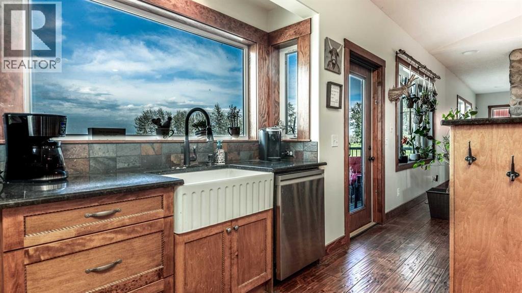 KITCHEN WORK AREA - facing East to capture the morning sunrises! A farmer's sink for easy cleanup is next to the stainless steel dishwasher. This property has all all the finer things in life!