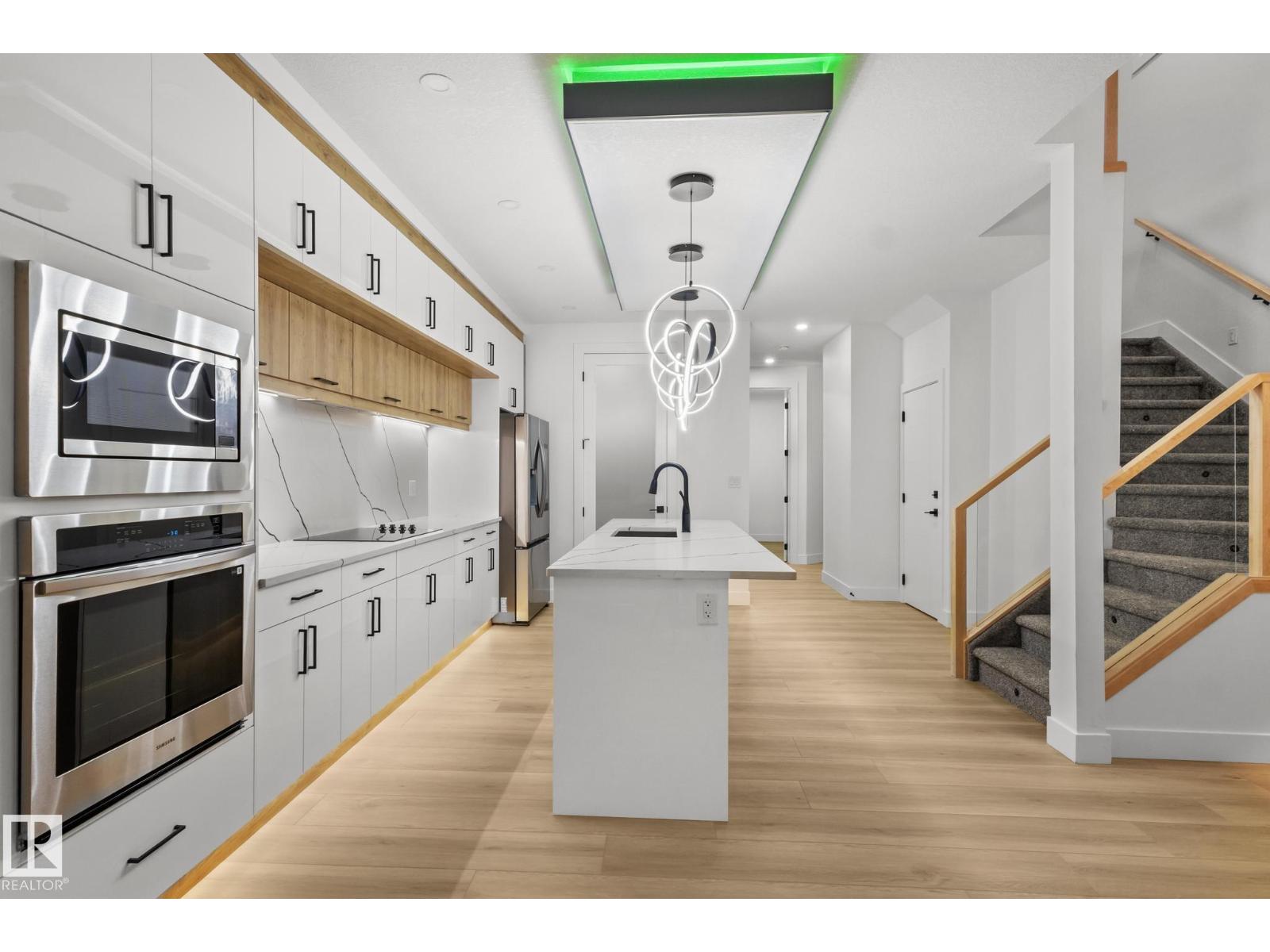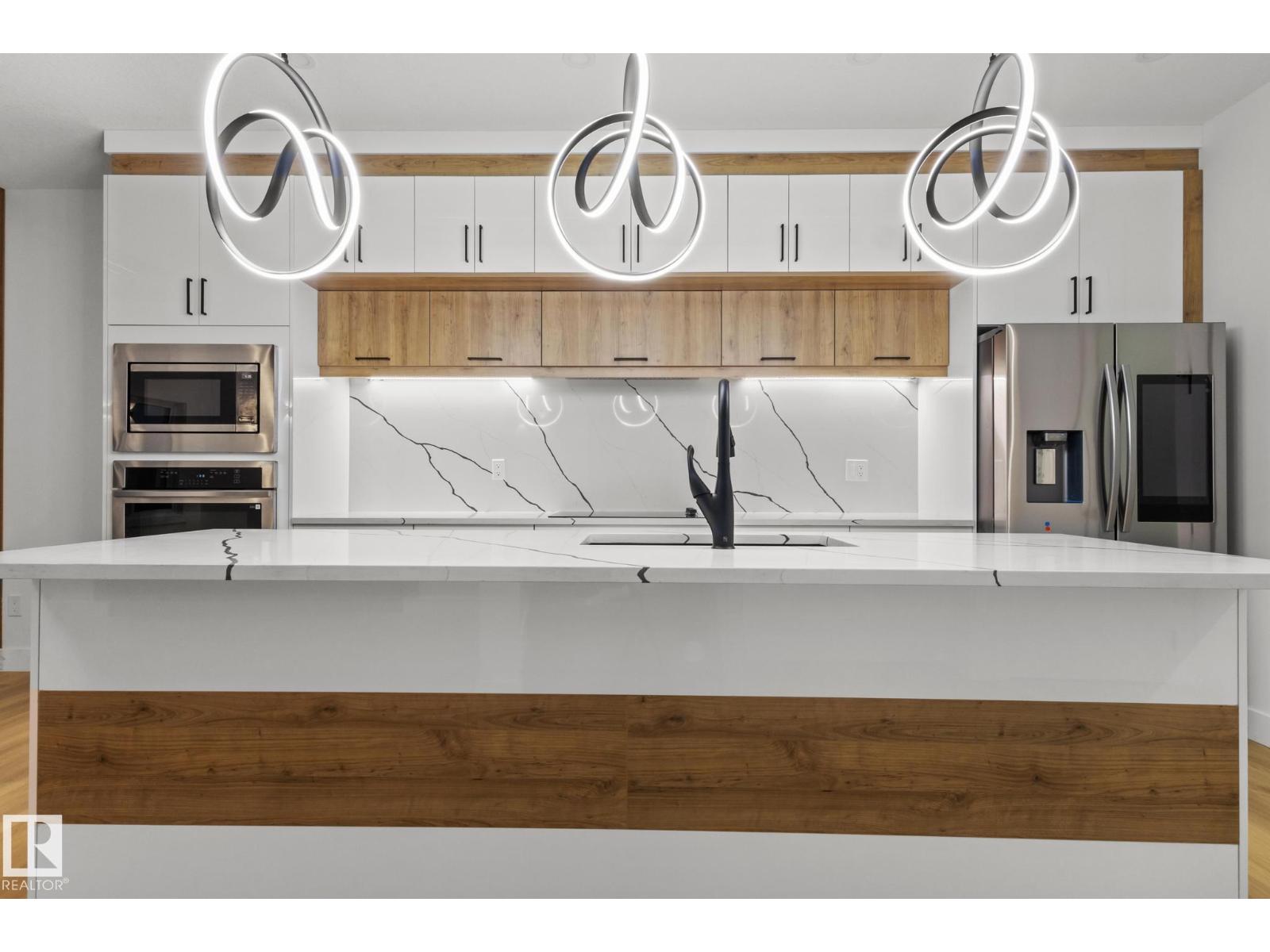 Welcome to this fully customized semi-detached home in the desirable Gorman community of Edmonton! The main floor showcases a soaring open-to-below ceiling in the living room, a gourmet kitchen complemented by a separate spice kitchen, and the added convenience of a bedroom/den with a full bathroom ideal for guests or multi-generational living. Upstairs, the spacious primary bedroom features a private balcony, walk-in closet, and luxurious 5pc ensuite. You’ll also find a versatile bonus room, two additional bedrooms, and convenient upstairs laundry. The finished basement offers a 2-bedroom suite, perfect for extended family. Enjoy outdoor living on the completed deck, with quick access to Anthony Henday Drive, grocery stores, schools, and nearby amenities. This home beautifully blends elegance, comfort, and functionality in a prime location, don’t miss it! (id:63190)