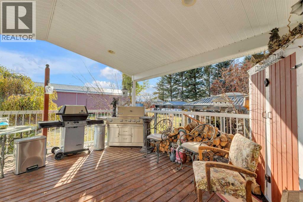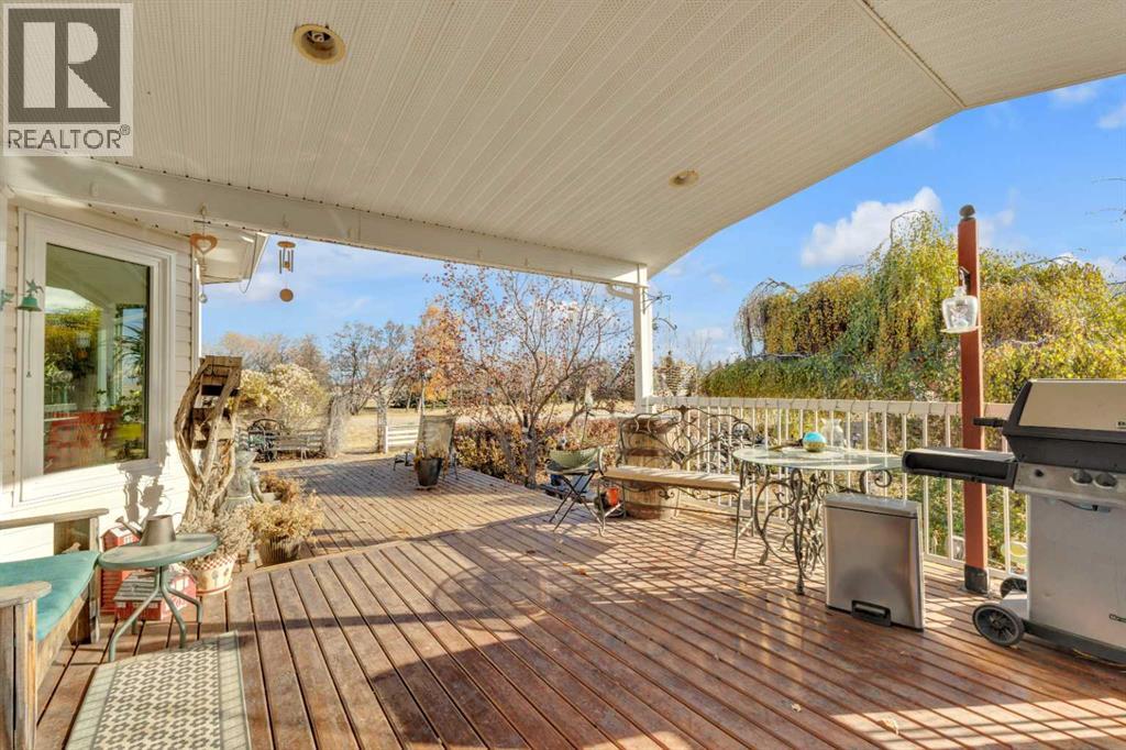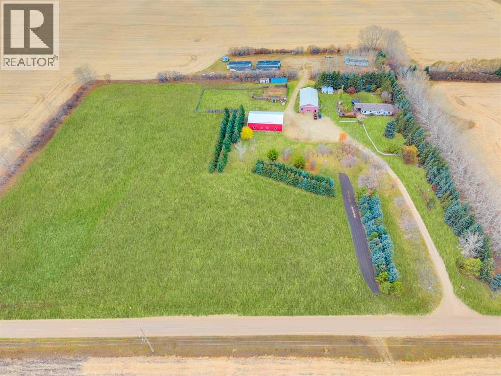 Exceptional opportunity to own 4.7 ± acres to start your county lifestyle. The parcel includes two shops, gated entrance and private setting. The home is a Triple M 2001 modular home in incredible condition on a heated 4-foot concrete foundation, offering nearly 1,885 sq ft, 3 bedrooms plus a den, 1 half bath, a 4-piece main bath, and a 3-piece ensuite. Bright bay windows, a skylight, and a wood-burning fireplace create warm, inviting living spaces, while outside features include a huge, welcoming deck, incredible landscaping, an ornamental fish pond, and a fully enclosed three-season gazebo. Infrastructure is outstanding with two shops. Shop #1 is a 40 × 80 × 14 ft lined and insulated shop with two 13.5 × 20 ft sliding doors, radiant heat, cement floor, floor drain, and fully insulated interior. Shop #2 is a 72 × 48.5 × 16 ft pole shed built in 2018 with a 14 × 20 ft overhead door, gravel floor, walk-in access, and eight windows providing natural light. The yard is reinforced for heavy oilfield traffic, offering durability and excellent access for large trucks and equipment, and additional buildings include three wooden sheds and an outhouse. Recent upgrades include the existing well being recased with new lining and a new pump in 2024, and a new septic tank and field installed in spring 2025. Located just ½ mile off pavement (Hwy 597), 1 mile from the Prentice plant, 3 miles from the NOVA Joffre plant, 13 miles from Lacombe, and 10 miles from Blackfalds. (id:63190)