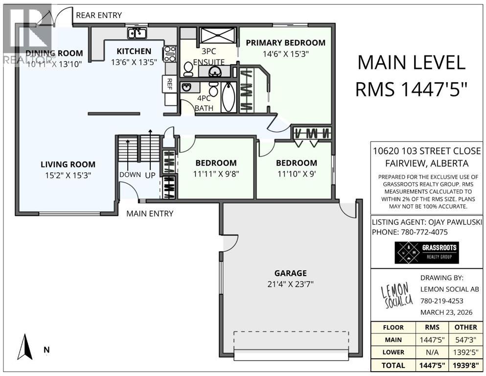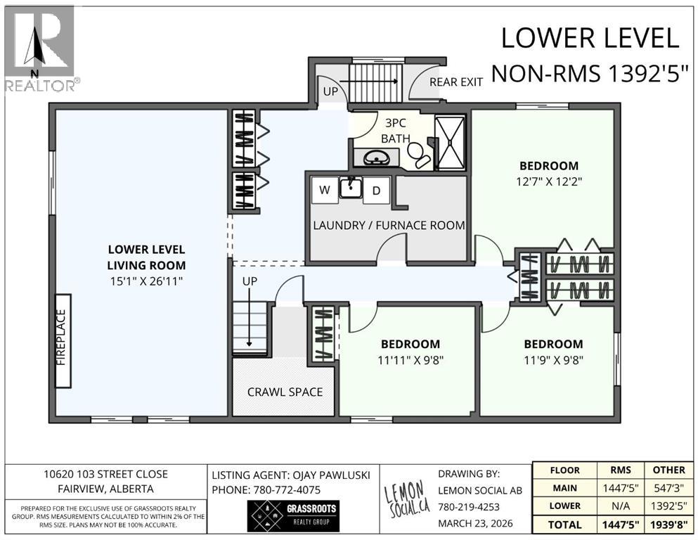 Spacious and well maintained bi level home located in a quiet cul-de-sac in Fairview, Alberta, offering 6 bedrooms and 3 full bathrooms. This property is ideal for growing families or those seeking additional space for guests or a home office. The main level features bright and open living areas with large windows allowing for plenty of natural light, an updated kitchen with newer appliances, and fully renovated bathrooms providing a modern and refreshed feel. The primary bedroom includes a walk in closet and a private ensuite bathroom for added comfort and convenience. Triple pane windows were installed in 2020, improving energy efficiency and helping reduce exterior noise. The fully finished basement provides a spacious recreation area with an electric fireplace, along with additional bedrooms and flexible living space to suit a variety of needs. Outside, the home offers a large private backyard with new fencing and a deck that is perfect for relaxing or entertaining. The attached double garage adds functionality and year round convenience. Major mechanical updates including the furnace, air conditioning, and hot water tank have already been completed, offering peace of mind to the next owner. This property is situated in a peaceful location backing onto green space with access to a nearby playground, and is close to schools, parks, and local amenities. Move in ready and well cared for, this home presents an excellent opportunity to own a spacious and updated property in a desirable area. (id:63190)