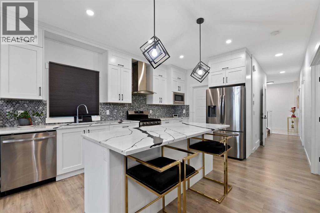 Welcome to 479 Bayview Way SW in the desirable community of Bayview, Airdrie—offering 2,257 SQFT of thoughtfully designed living space, a functional layout, and excellent versatility for families or investors alike. The main floor features a bright open-concept design with 9-foot ceilings, a spacious living room, dedicated dining area, and a modern kitchen complete with ample cabinetry, large island, Pantry, and quality finishes. A full 4-piece bathroom on the main level adds convenience and flexibility, ideal for guests or multi-generational living. Upstairs, you’ll find 4 well-sized bedrooms including a spacious primary retreat with a 5-piece ensuite featuring dual vanities and a walk-in closet. The upper level is completed by a bonus/family room, laundry room, and two additional 4-piece bathrooms, offering both comfort and practicality for a growing family. The fully developed basement with separate entrance adds significant value, featuring 2 bedrooms, a den, full kitchen, recreation area, and a 3-piece bathroom—perfect for extended family or potential rental income. Situated in a family-friendly neighborhood close to parks, pathways, schools, and amenities, this home is a fantastic opportunity to own a well-appointed property in one of Airdrie’s growing communities. (id:63190)