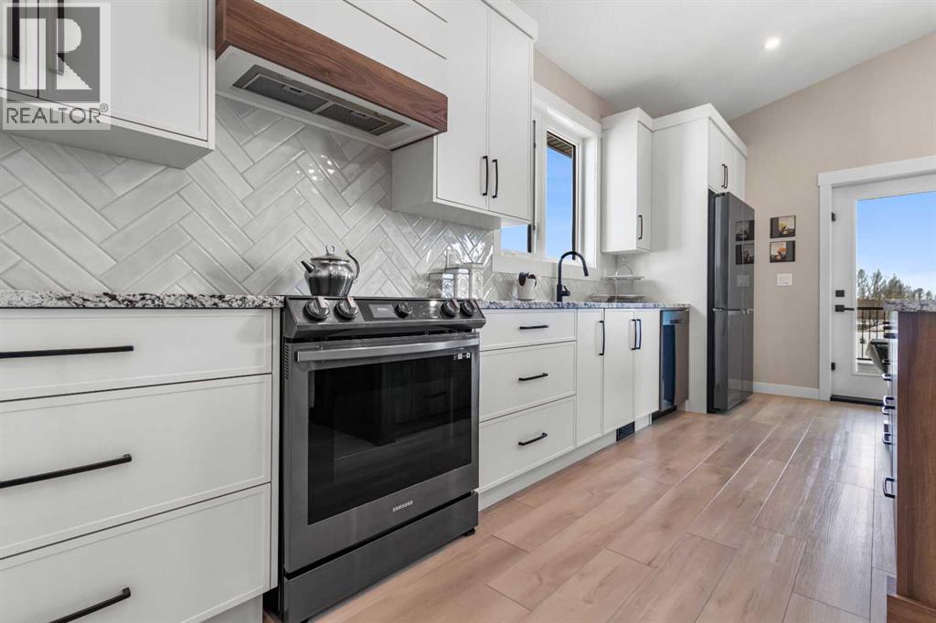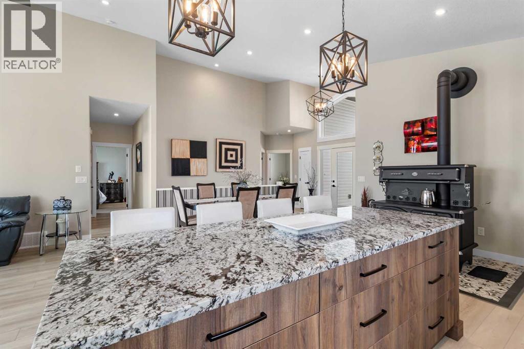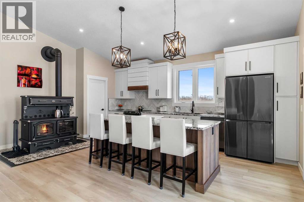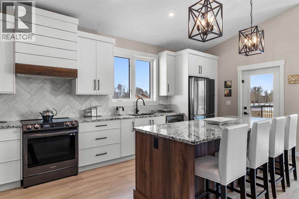 Experience perfect the blend of peaceful country living on this exceptional acreage with pavement right to the property. Centrally located less than 30 minutes drive to Red Deer, less than 20 minutes drive to Sylvan Lake and within 15 minutes drive to Gleniffer Lake for swimming, fishing, and boating . This like new bungalow with a oversized triple car garage fully finished with infloor heating, upgraded oversized garage doors. The home offers a open concept layout with a massive vaulted ceiling modern slim shaker custom kitchen cabinets and a oversized island with beautiful upgraded granite counter-tops, herringbone tile back splash and under mounted sink, oversized walk in pantry used for your additional counter top appliances and storage. Beautiful wood cook stove for cold winter days. Warm natural wall colours and upgraded vinyl flooring and finishing throughout, tons of closet space with upgraded built in shelves. The main floor also offers three bedrooms including a master bedroom, walk in closet and en-suite with a stand up shower, glass door and wall tile, large vanity with granite counter top and under mounted sink and linen closet for additional storage. The home offers upgraded oversized triple-pane windows with beautiful views of gentle rolling hills. Massive oversized deck with vinyl decking and aluminium railing facing south west. The basement includes an additional bedroom that requires flooring for finishing, the rest of the basement is framed with large common area and another oversized bedroom, bathroom with tub, laundry room, cool storage, and mechanical room. The basement requires a few final touches regarding rough in's to have the basement ready for drywall. This home sits on this AG zone property with oversized septic field with tie in and a potential to build a large shop, or secondary home, or potentially operate a small business on the property tons of parking for toys or equipment. The property also includes a number of garden beds, gree n house with a number of raised beds for growing, chicken coup fully completed with run. (id:63190)