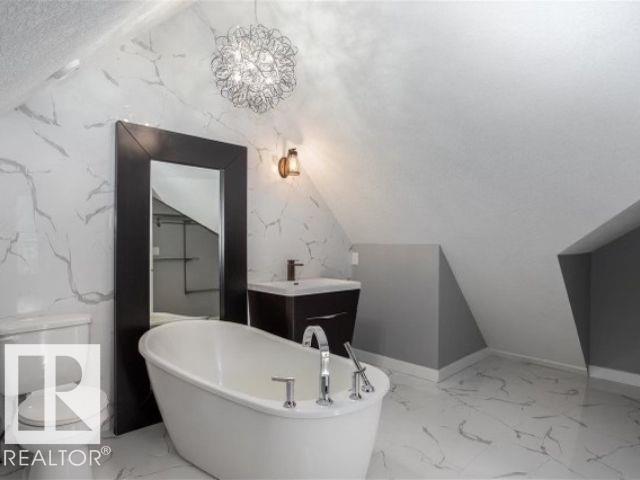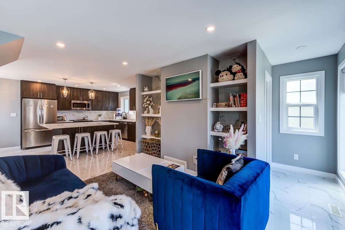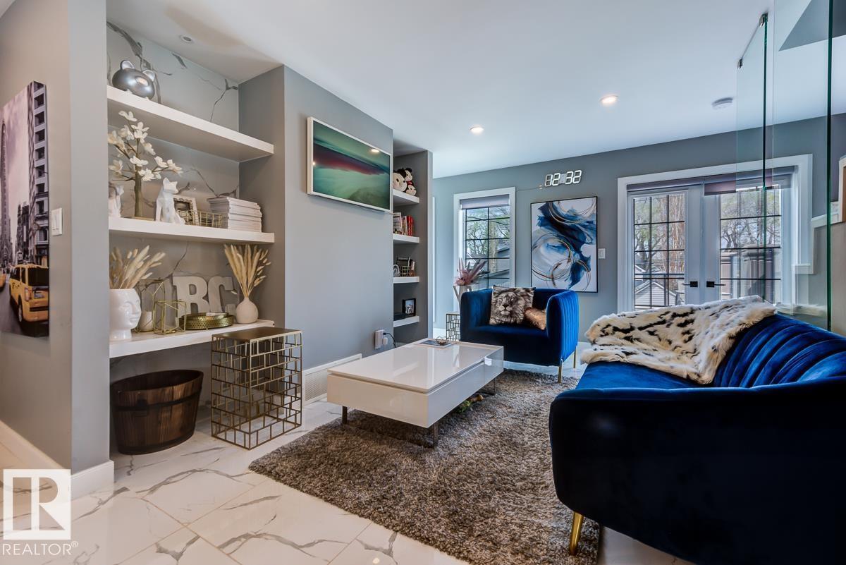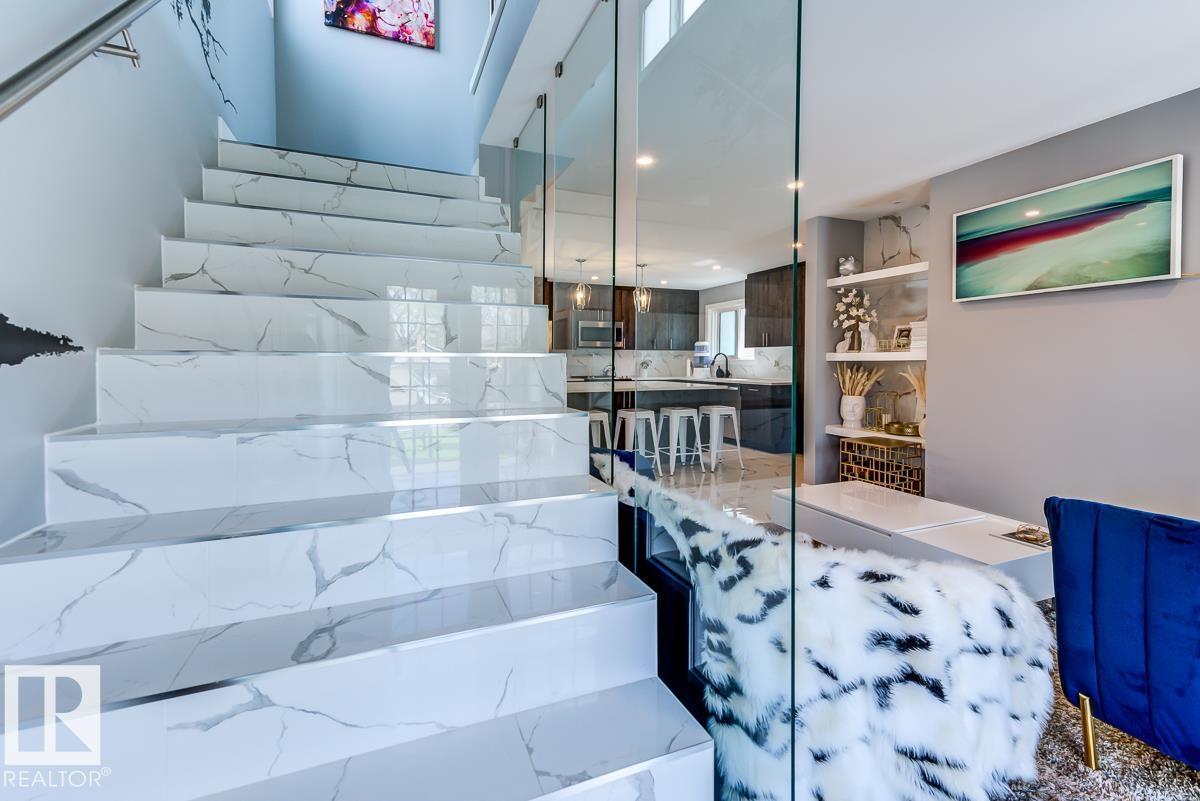 Live in style and functionality in this incredible laid out and BEAUTIFULLY finished home in the perfect central YEG location! This amazing 3 bed + 3.5 bath home has so much space for everyone! Walking up to the 1st level from your attached garage you're met with a luxurious main floor with stunning tiled floors, bright windows, + glass feature wall that is sure to impress. The kitchen is exquisitely laid out with loads of dark wood cabinetry for storage, white quartz counters, & SS appliances. Completing the main floor is the rear patio perfect for summer night entertaining! Heading to the next floor you'll find 2 generous sized bedrooms with a shared 4pc bathroom. Heading to the top floor, you'll find a loft-style primary bedroom with a STUNNING ensuite and access to a rooftop patio. The basement has a rec space plus an additional bathroom! Beautiful finishes inside and out. Glass railing, custom built-ins, trendy finishes make this the Pinterest-perfect home! (id:63190)