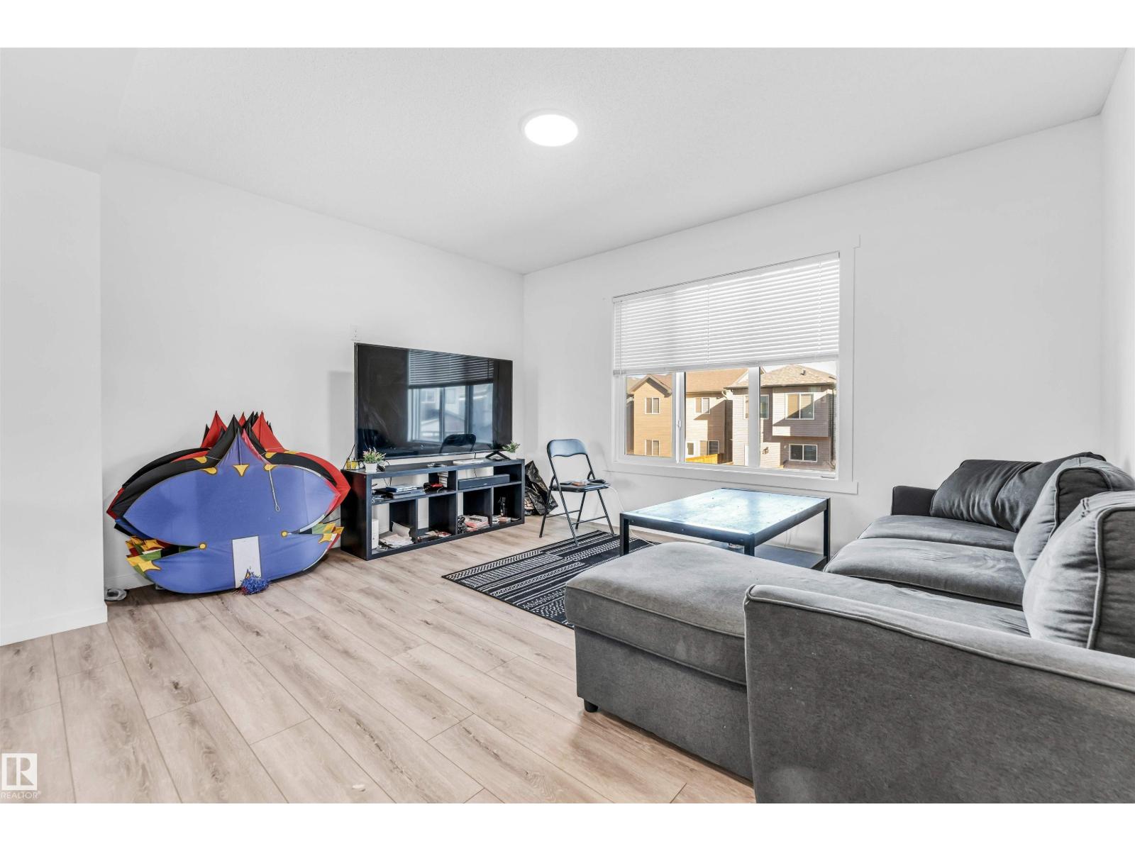 *NO CONDO FEES**UPGRADED FINISHES**OPEN-CONCEPT LAYOUT**SINGLE OVERSIZED ATTACHED GARAGE*. Welcome to this stylish and well-maintained freehold townhouse, the “Abbey” by StreetSide Developments, located in the sought-after community of Aster in Southeast Edmonton. This modern home offers 3 bedrooms and 2.5 bathrooms, featuring a bright open-concept layout with upgraded luxury vinyl plank flooring throughout. The sleek kitchen is designed with upgraded cabinetry, quartz countertops, tile backsplash, and stainless steel appliances. The main floor includes a small size bedroom, good for single bed that can be used as a den or home office. Upstairs, you’ll find a spacious primary suite with a walk-in closet and private ensuite, along with an additional bedroom and a full bathroom. Complete with a landscaped yard and a single oversized attached garage, this home is perfectly situated near parks, schools, shopping, and offers quick access to Anthony Henday Drive. (id:63190)