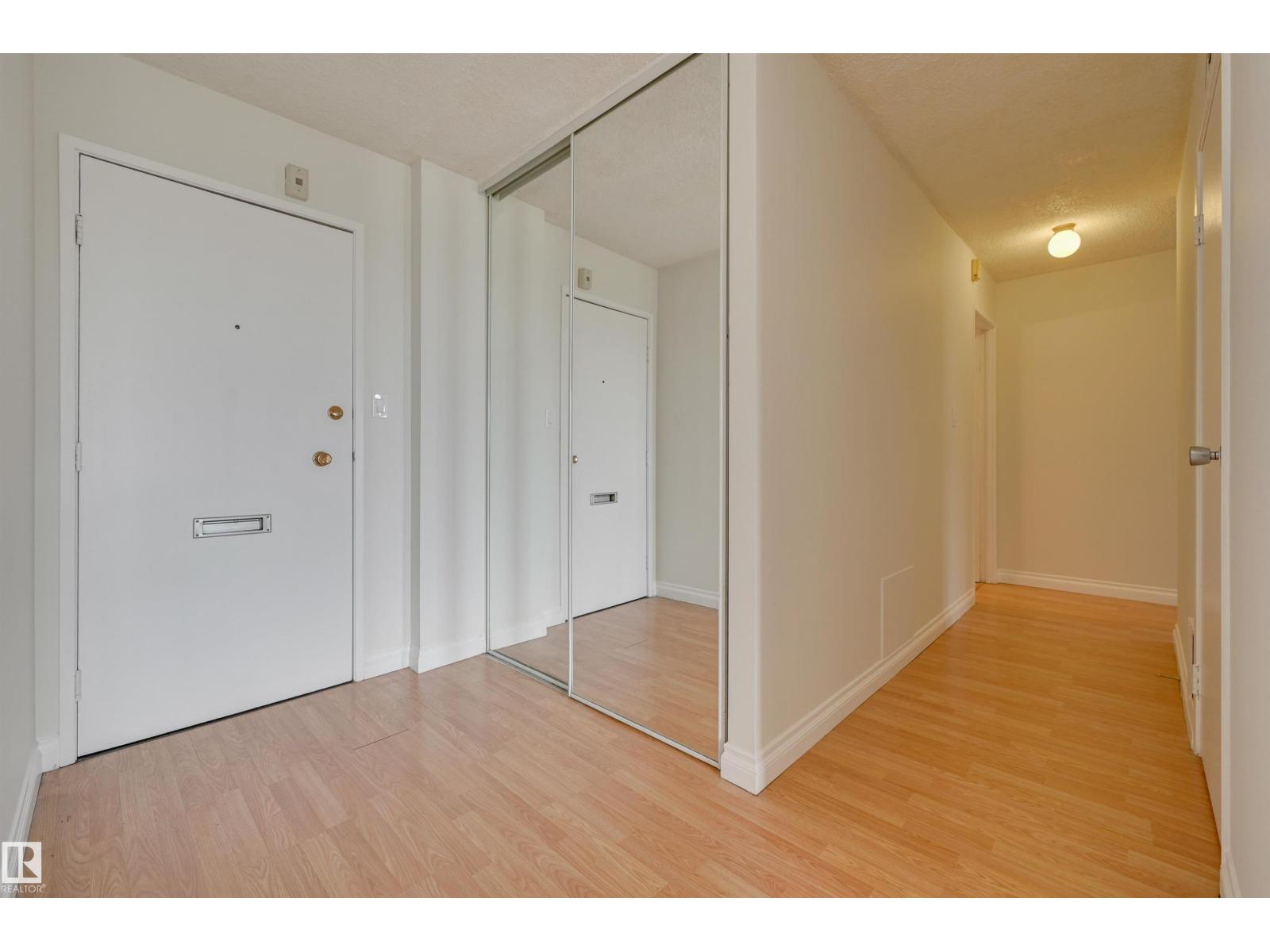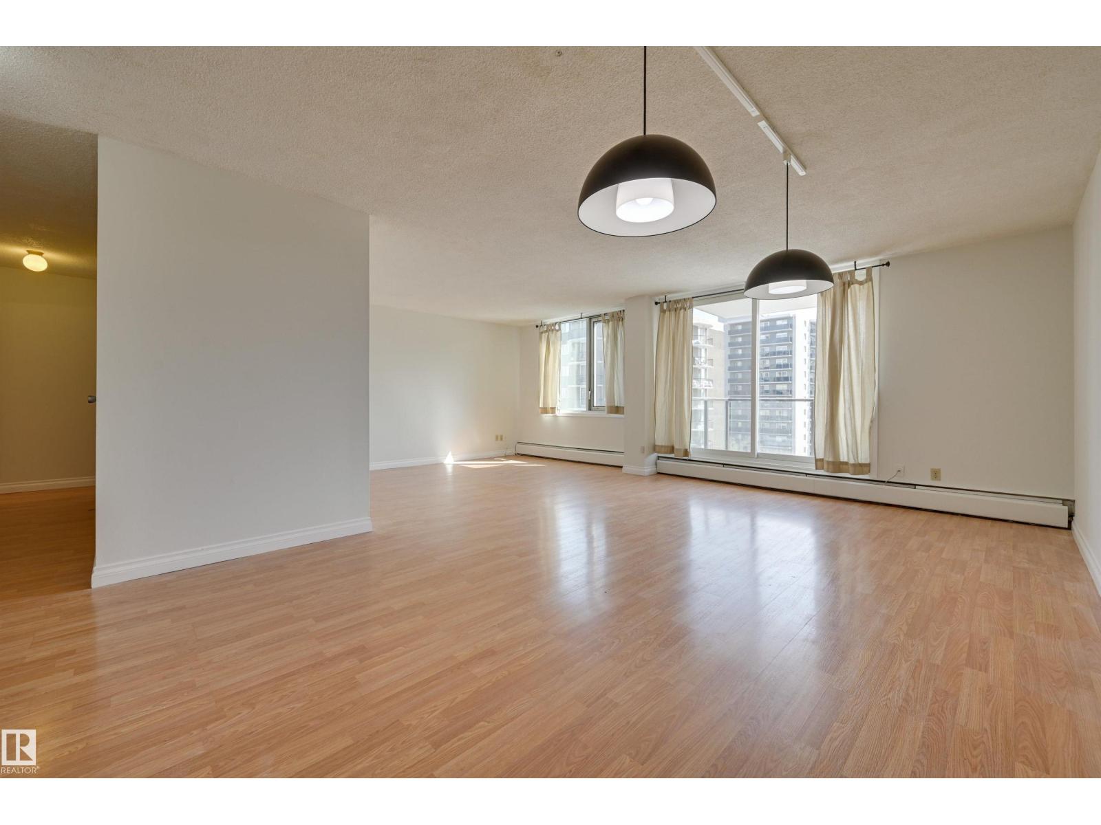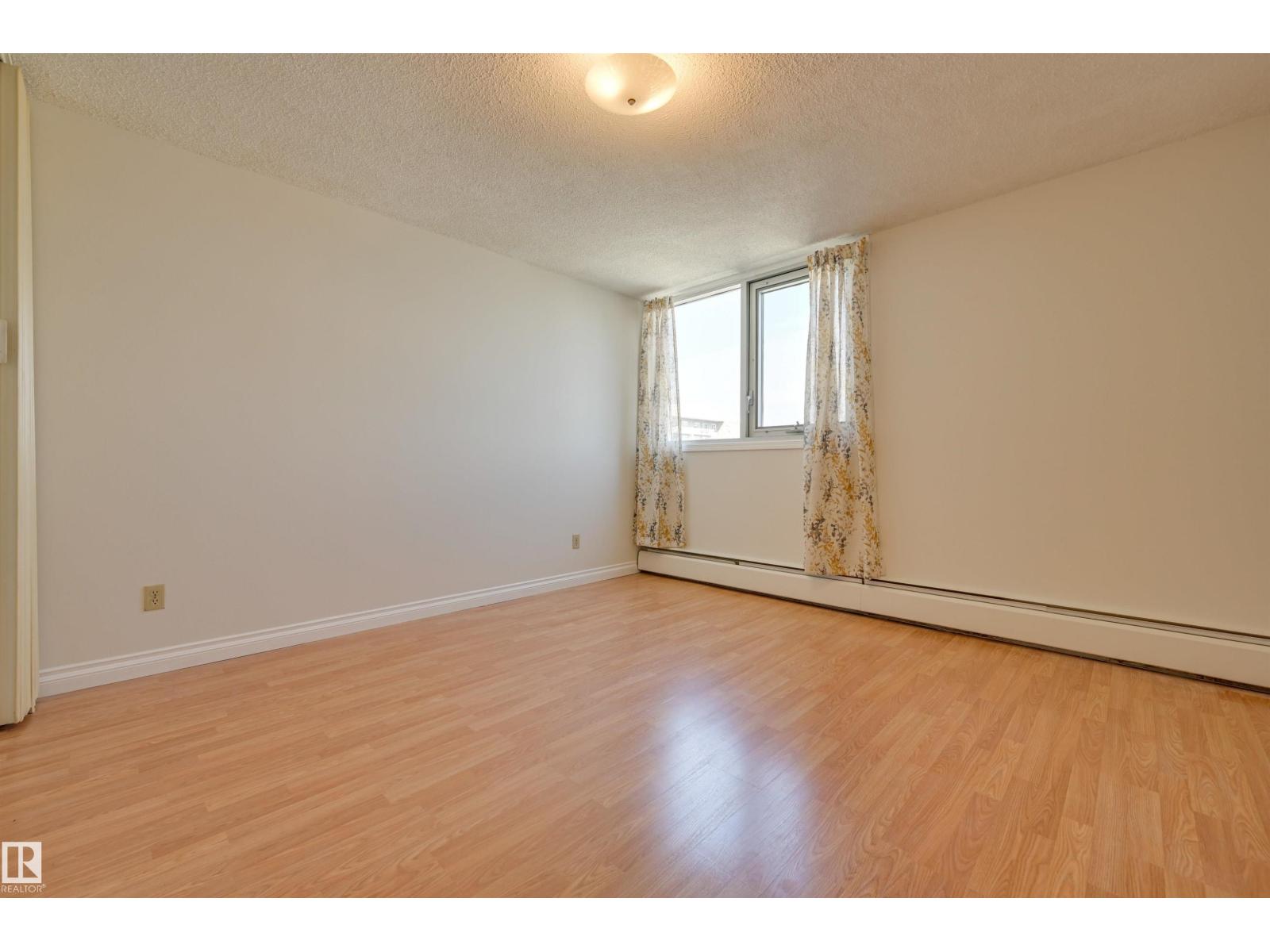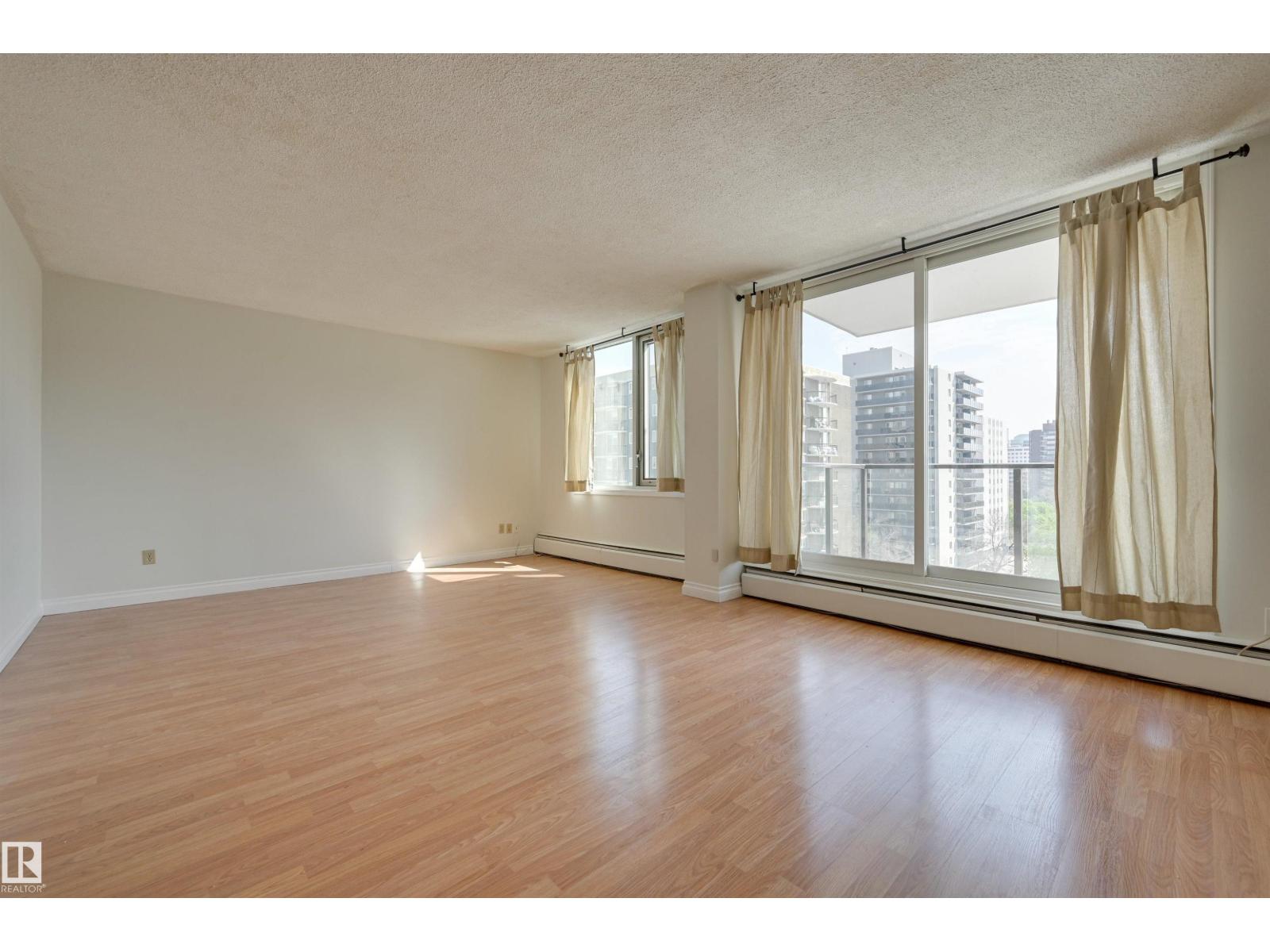 DOWNTOWN VIEWS from this spacious TWO Bedroom condo in ACADEMY PLACE! Natural light streams thru the NEW windows. The patio doors frame the East facing balcony. You will enjoy the open Living/Dining room. The Kitchen is well appointed & can be customized to your needs. FRESHLY PAINTED with ample Storage! Updated Full Bathroom is adjacent to the TWO HUGE Bedrooms: The Primary bedroom allows for much more than a King bed & has built-ins that make organization a breeze. The Second bedroom also allows for a King bed or would make an incredible office for those working from home! Laundry (reloaded card valued at $50 ea. month) is included & on the same floor. Assigned parking in the parkade next to the building. New windows & patio doors. The CONDO FEES INCLUDE HEAT, POWER, WATER, INSURANCE & PARKING . Transportation is at your doorstep & this home is just steps away from the river valley trails, restaurants, coffee shops & quick access to the Brewery District, Ice District, MacEwan University, & U of A. (id:63190)