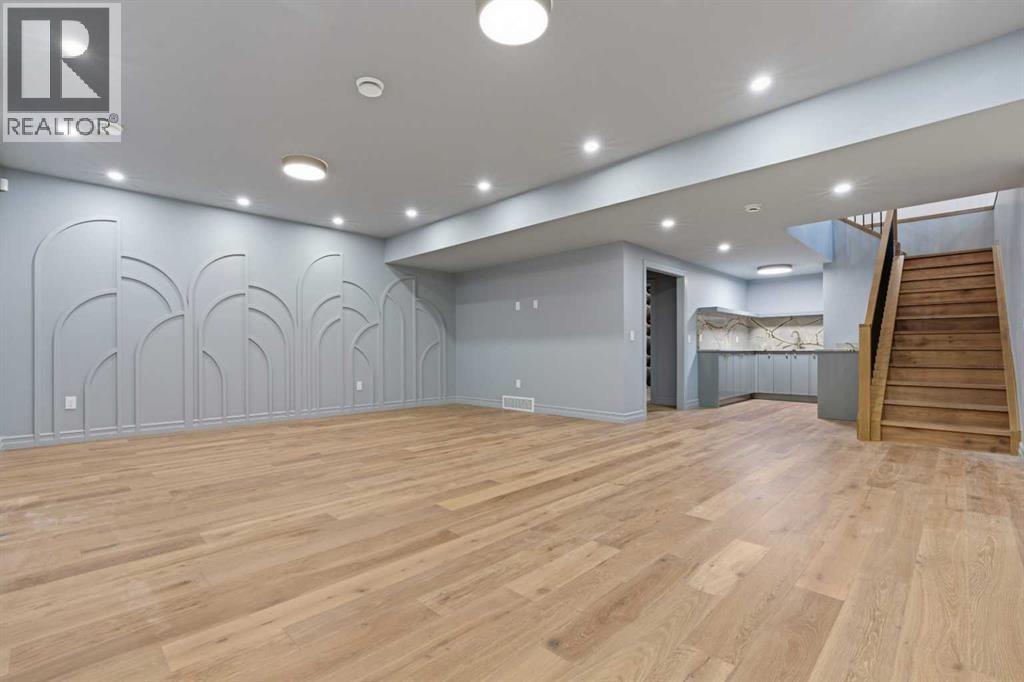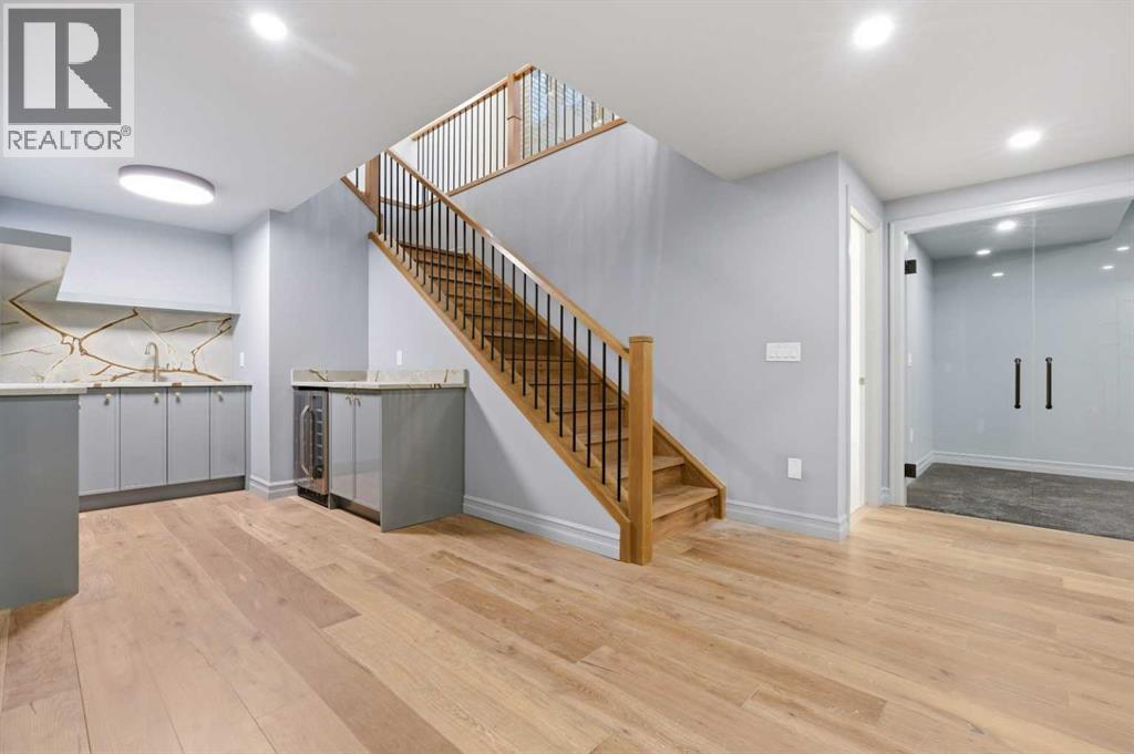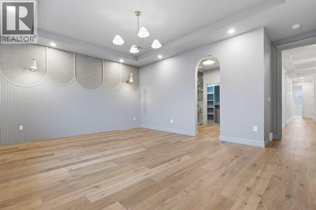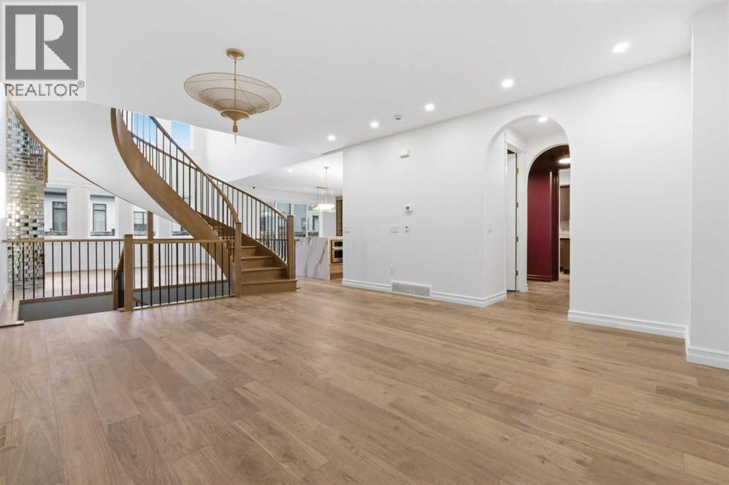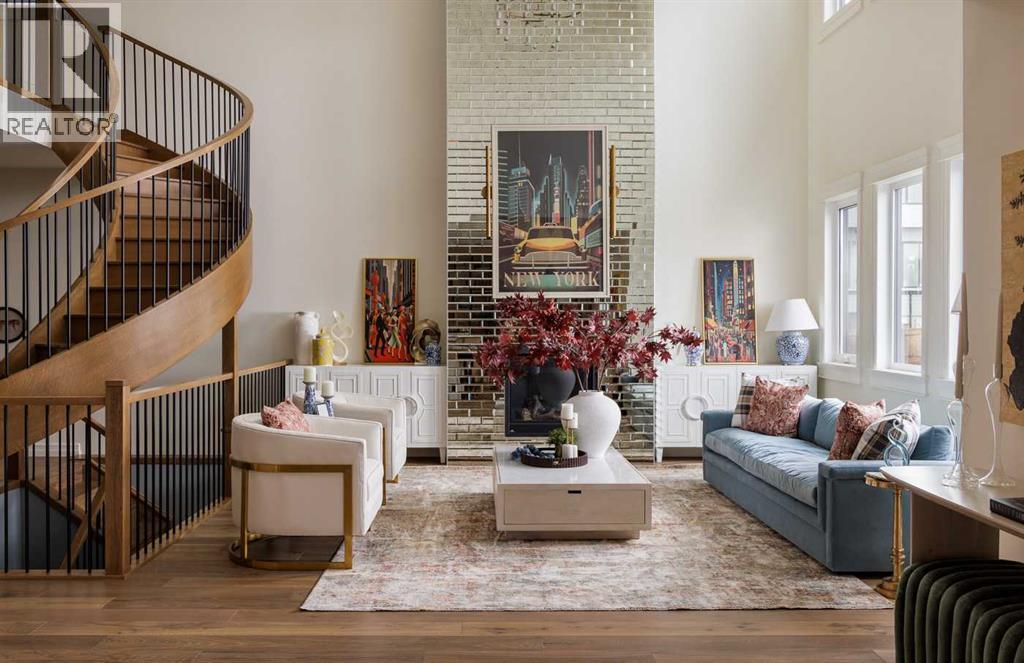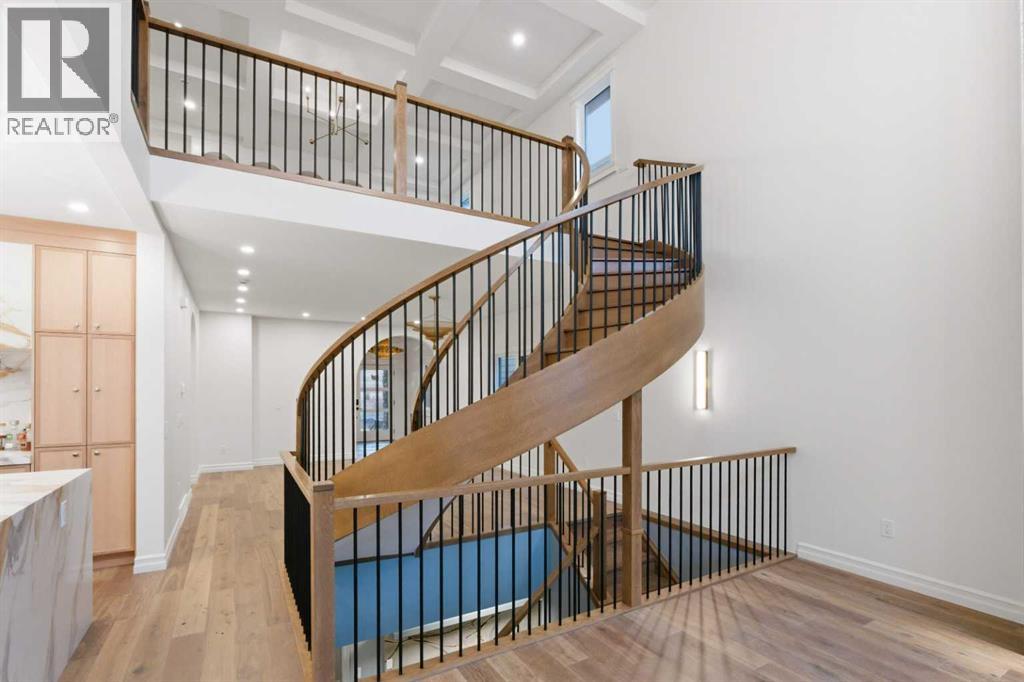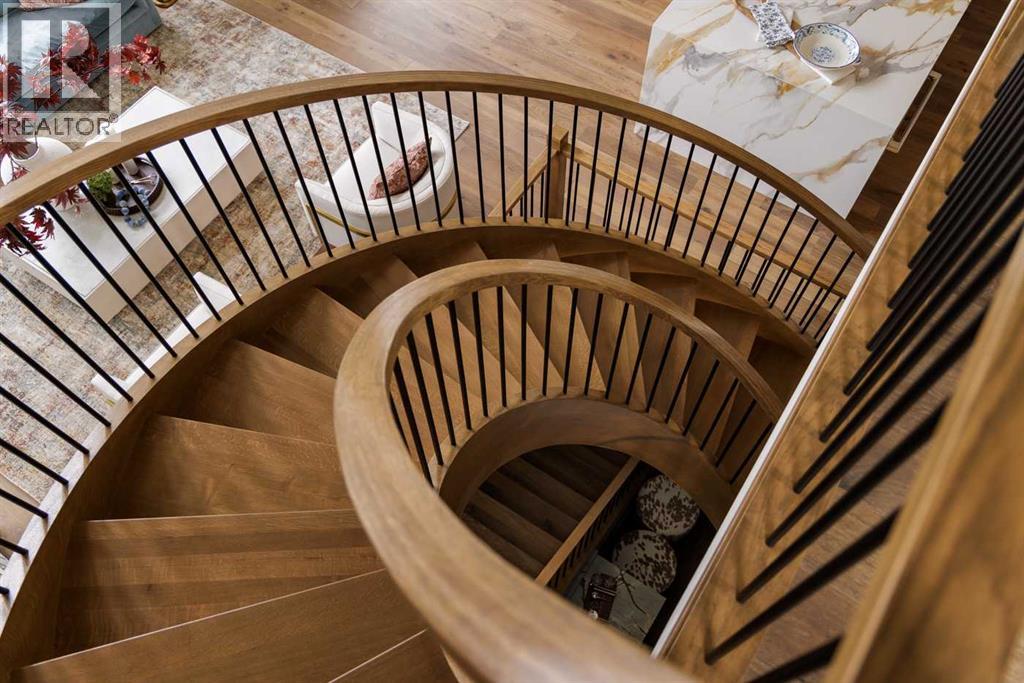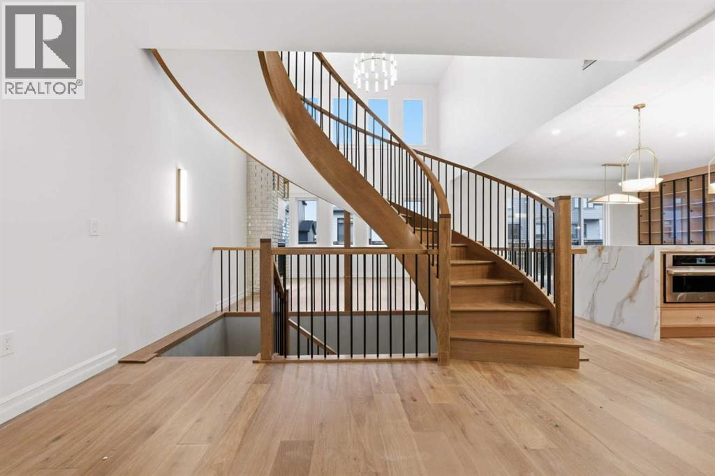 Welcome to an exceptional luxury residence in the prestigious community of Upper Greenwich, highlighted by a breathtaking custom spiral staircase that serves as a true architectural centerpiece—an unforgettable first impression that sets the tone for the entire home.This custom-built two-storey offers over 4,500 sq ft of meticulously crafted living space, blending refined design with everyday functionality. Soaring ceilings, expansive windows, and a seamless open-concept layout create an atmosphere of elegance and ease, perfect for both grand entertaining and comfortable family living.At the heart of the home, the gourmet chef’s kitchen is a showpiece, featuring premium appliances, an oversized island, and a fully equipped spice kitchen—ideal for effortless hosting. The main floor living area is anchored by a striking fireplace and flows seamlessly into the dining space and outdoor living area. A private office and thoughtfully designed mudroom add versatility and convenience.Upstairs, the luxurious primary retreat offers a serene escape with a spa-inspired ensuite, complete with a deep soaker tub, oversized glass shower, and a spacious walk-in closet. Additional bedrooms are generously sized, each with access to beautifully appointed bathrooms.The fully developed basement expands your living space with a large recreation area, wet bar, fitness room, and guest accommodations—perfect for entertaining or multi-generational living.Situated on a premium lot, this home also features a triple attached garage and is just minutes from parks, pathways, shopping, and top-tier amenities. A rare opportunity to own a truly distinguished home in one of Calgary’s most sought-after emerging communities. (id:63190)
