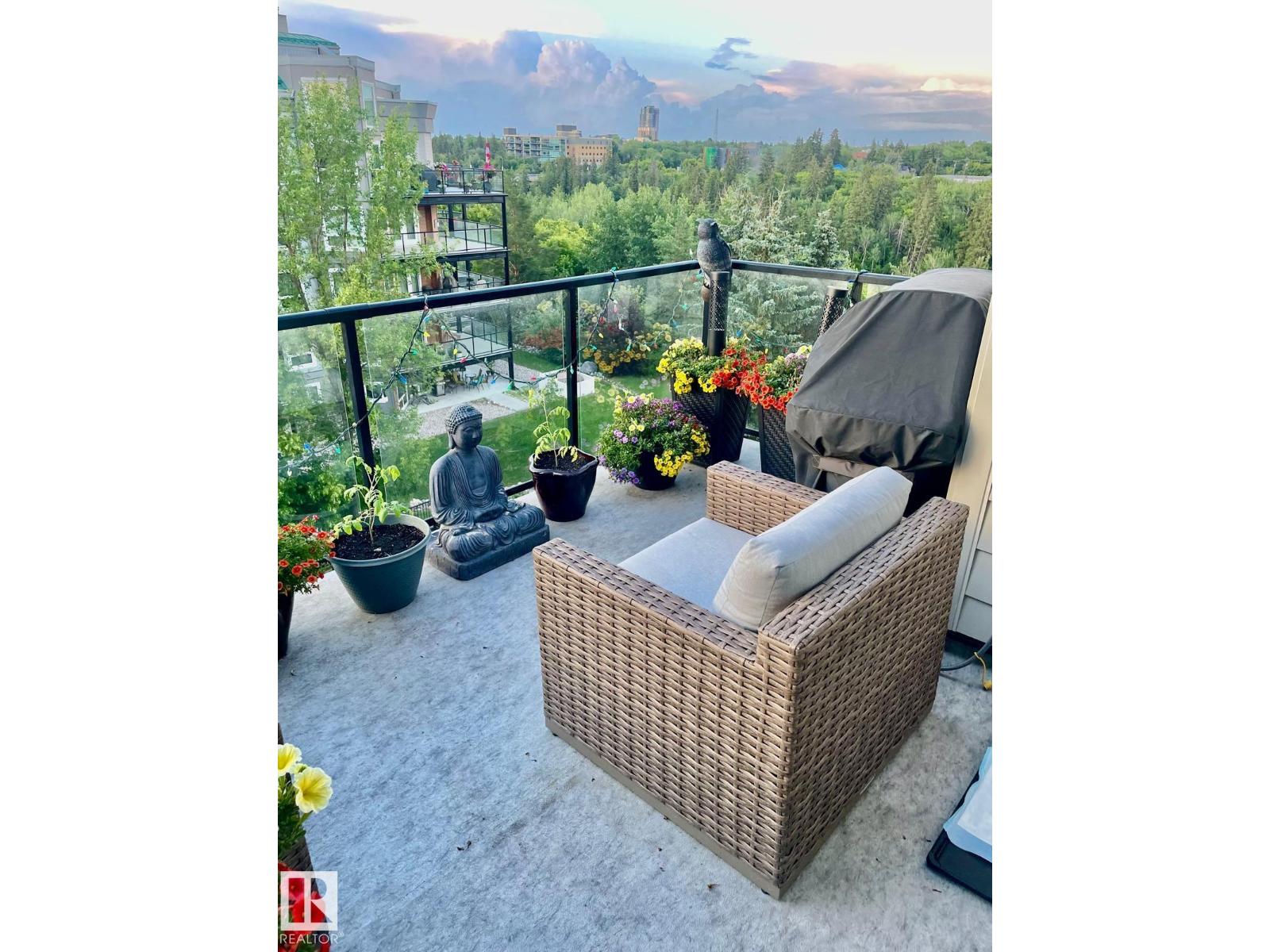 Visually stunning two-story penthouse on Mill Creek Ravine. Executive Living at it finest, in the heart of Ritchie. This 1,458 Sq Ft Condo has Soaring 20 foot vaulted ceilings with floor to ceiling windows which feature endless natural light. This premium ravine unit boasts Breathtaking views of Mill Creek ravine. Fantastic $80,000 modern renovations include a stunning chef‘s kitchen with granite counters with waterfall as well as Modern appliances and lighting fixture’s. The 2 bedrooms feature their own en suite bathrooms, luxury flooring and a custom window Zebra blind package accent this beautiful unit. The huge loft / flex area may be used as a third bedroom or office area or entertainment space. There are two outdoor decks to enjoy ravine views including a private rooftop terrace ideal for entertaining or lounging or having your morning coffee. This condo features a heated underground parking stall as well as a storage locker. Up to two pets are allowed with board approval. (id:63190)