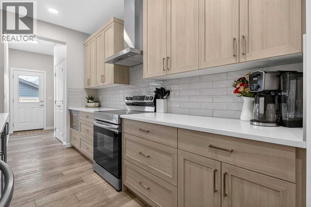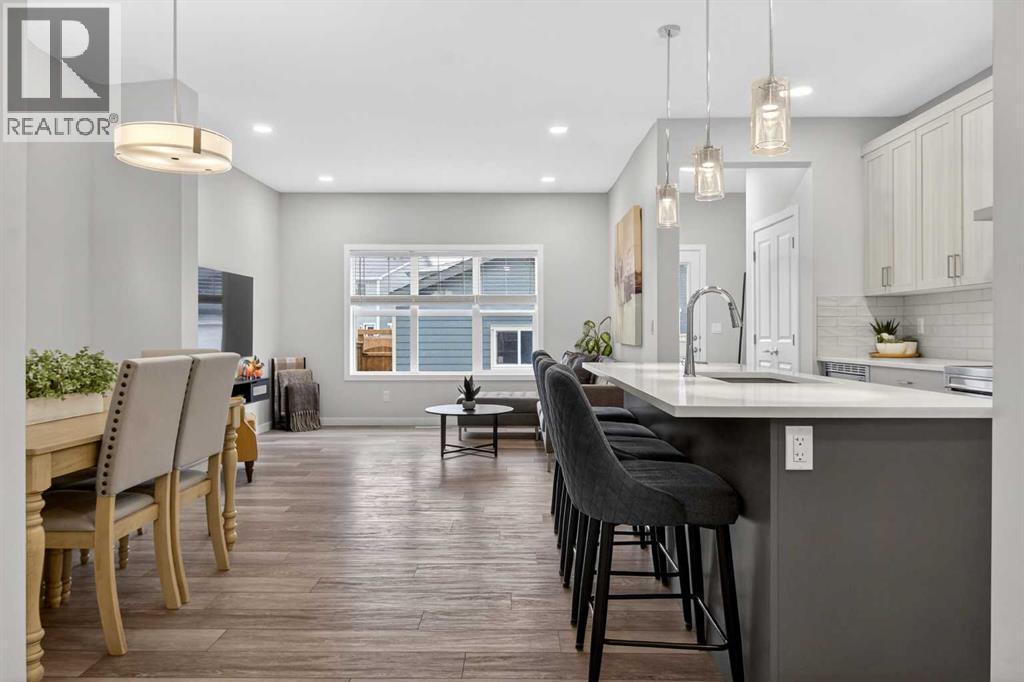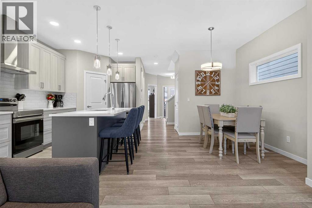 Located in the sought-after lake community of Mahogany, this upgraded and move-in ready home offers over 2,600 sq ft of developed living space, with 5 bedrooms, 3.5 bathrooms, and over $50,000 in thoughtful upgrades throughout. The main floor delivers both function and flow, with 9-foot ceilings and a bright, open-concept layout. A versatile front flex room adapts easily as a home office, sitting area, or playroom. The kitchen anchors the space with upgraded quartz countertops, extended cabinetry, upgraded appliances, and refined lighting and plumbing fixtures. An oversized 8-foot island provides additional seating and workspace, seamlessly connecting the kitchen, dining, and living areas. Upstairs features three well-sized bedrooms, a large bonus room, and the convenience of upper-floor laundry. The primary suite offers a walk-in closet and a well-appointed ensuite, creating a comfortable and private retreat. The professionally developed basement, completed by the builder, offers 9-foot ceilings, fire-rated separation, two additional bedrooms, a full bathroom, and a spacious recreation area. The exterior is equally well considered, with a fully fenced yard, a large rear deck, and a poured concrete pad ready for a future hot tub. The double detached garage is finished with durable Hardie board siding to match the home. All improvements have been completed with permits, and a compliant RPR is available. Mahogany is one of Calgary’s premier lake communities, offering year-round access to the lake, beaches, parks, pathways, playgrounds, schools, and the shops and restaurants of Westman Village just minutes away.With its size, level of finish, fully developed basement, and overall functionality, this property is competitively positioned within the Mahogany market—offering a level of space and upgrades that is increasingly difficult to find at this price point. (id:63190)