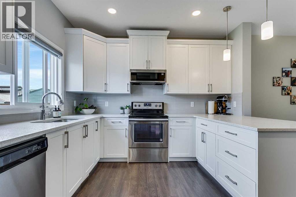 Exceptional value in Walden—this bright, move-in ready home offers three finished levels, four true bedrooms, and the kind of functional layout that just works for real life. Bright, welcoming, and full of functional space, this Walden home offers three finished levels, four true bedrooms, and enough room for everyone to have their own little corner to crash, create, or chill. Walk up the charming front porch and step into a main floor that was made for real life. It’s open and airy, with big windows and a layout that just makes sense. The classic white kitchen features granite countertops and a generous pantry, flowing easily into the living and dining areas. There’s even a half bath and a mudroom tucked off the back entrance to keep the daily chaos out of sight but close at hand. Upstairs on the second level, the spacious primary suite includes a walk-in closet and private four-piece ensuite. Two more bedrooms, a full bathroom, and laundry are also on this floor. Yes, the laundry is upstairs, right where you want it. One more level up, you’ll find the kind of flexible bonus space you didn’t know you needed. Whether it’s a teen hangout, office zone, guest retreat, or creative studio, this upper floor has a large fourth bedroom, another full bathroom, and a cozy nook perfect for working, relaxing, or just taking five minutes to yourself. The basement is currently partially finished with drywall and offers loads of potential. With an exterior stairwell entrance and plumbing already roughed in, it’s ready for whatever you dream up. Think in-law’s, home gym, games room, or storage that keeps your main floor clutter-free. Outside, the fenced backyard has room to play, garden, or unwind. There’s a raised deck for morning coffees or evening drinks and a poured concrete parking pad ready for your future garage. Walden is one of Calgary’s newer southeast communities and is known for its modern vibe, walkable paths, and convenient access to nature and amenities. You’ll fin d schools, shops, parks, and restaurants all close by, plus quick routes to wherever else life takes you. (id:63190)