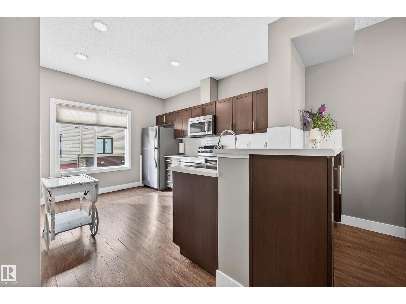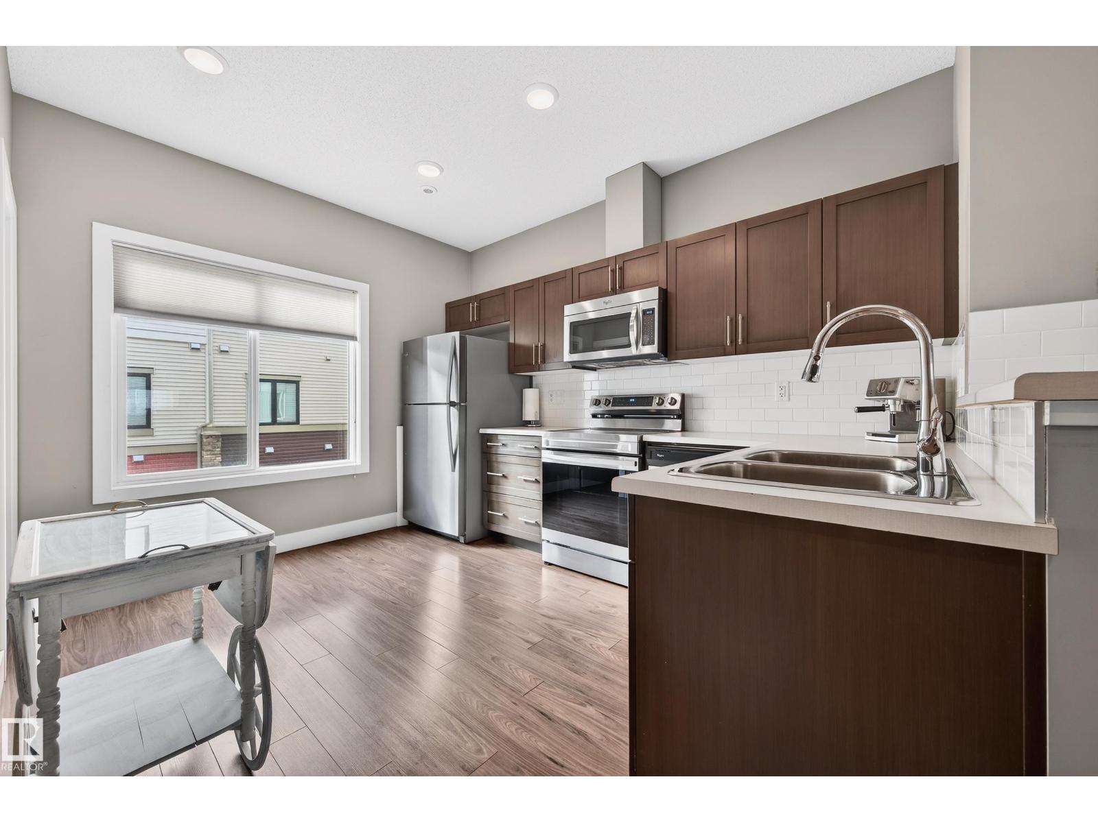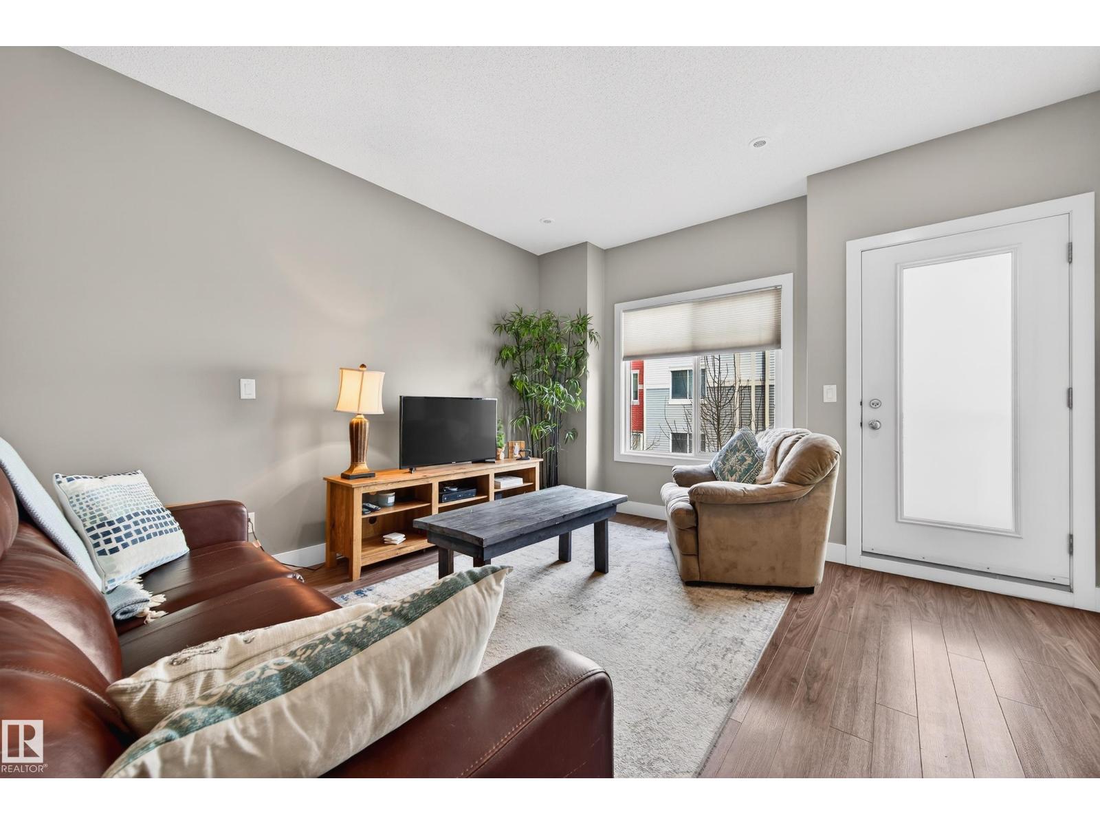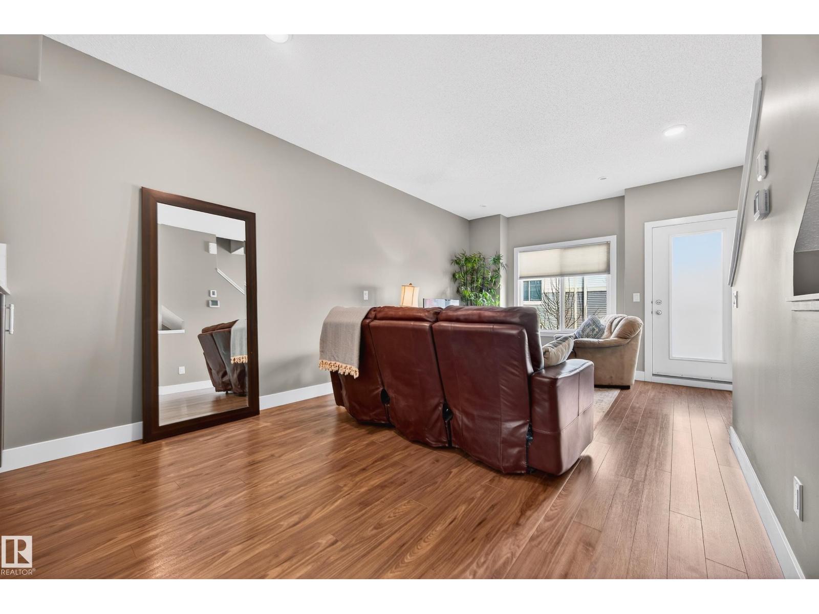 This thoughtfully designed 2-bed, 2.5 bath townhome in Village at Walker Lakes has been well maintained by the original owners. The main level features 9' ceilings and a bright, open layout with a modern kitchen, large pantry, and living and dining areas that lead out to your private balcony. Upstairs, you'll find two spacious bedrooms, each with walk-in closets, including a primary with a 3-piece ensuite, along with a second full bath and convenient upper laundry. The lower level includes a flex space ideal for a home office or workout area, plus access to the attached garage and front patio, perfect for enjoying some summer sun. Built by Landmark Homes, this home features energy-efficient mechanical systems including on-demand hot water, a high-efficiency furnace, HRV and triple-pane windows. Ideally located close to walking trails, ponds, shopping, and everyday amenities, with quick access to the Henday and South Edmonton Common. A great option for low-maintenance living without sacrificing space. (id:63190)