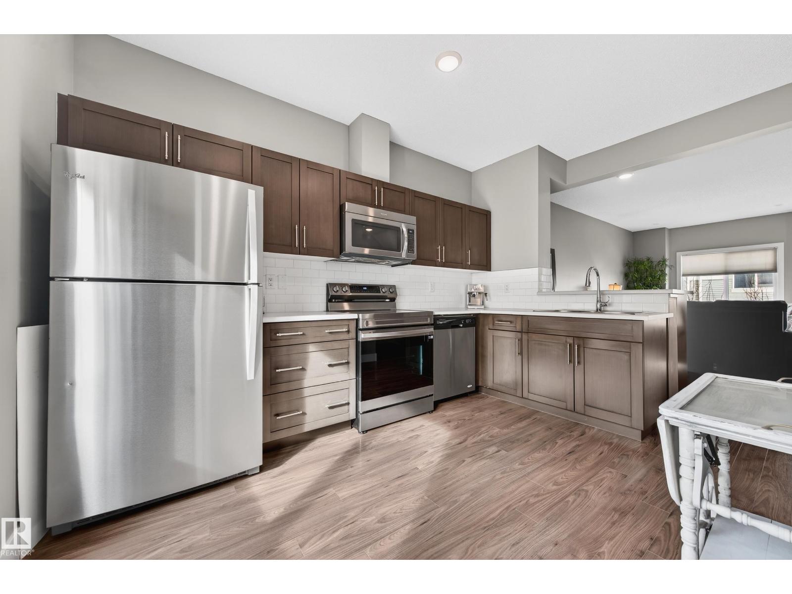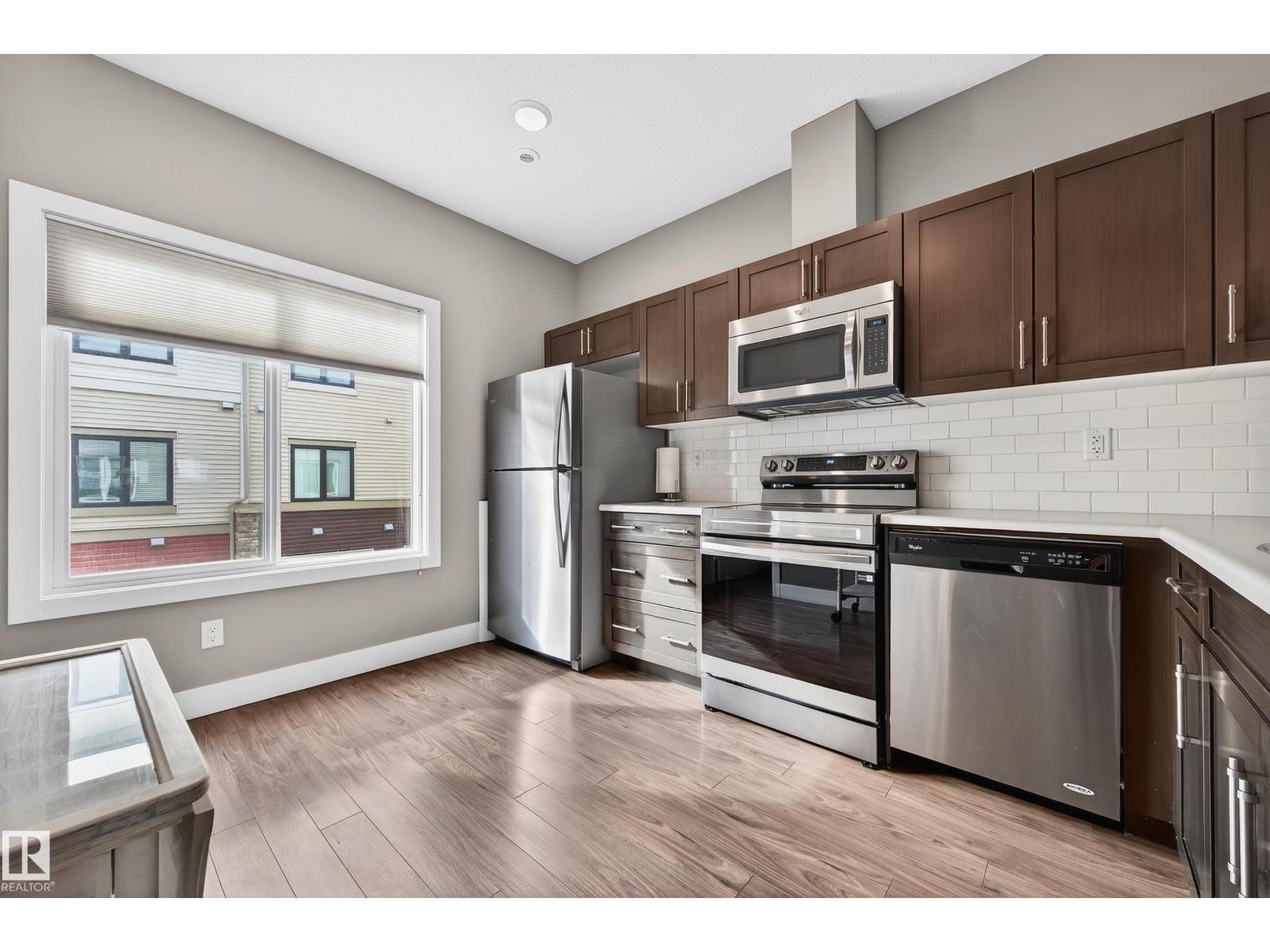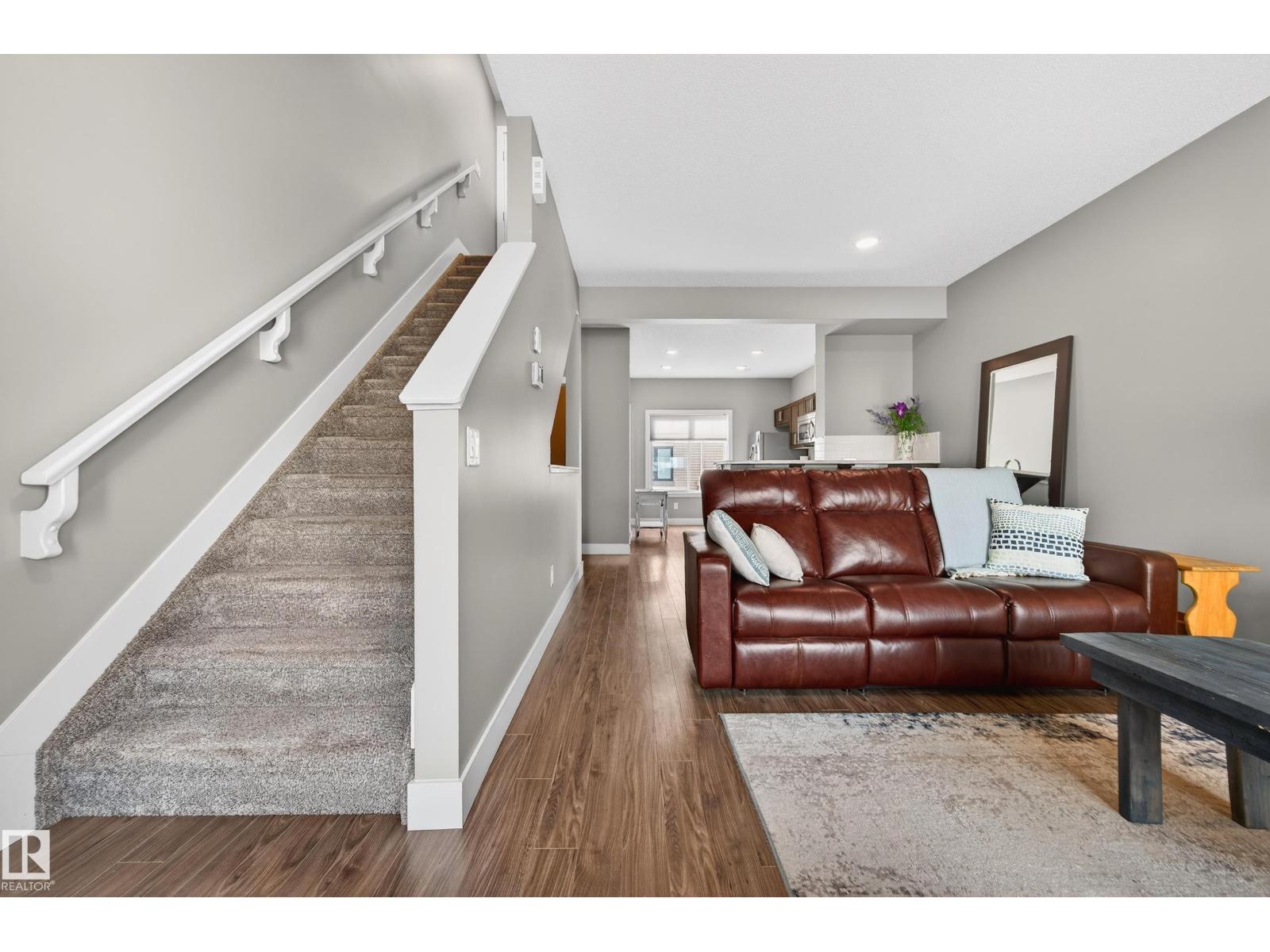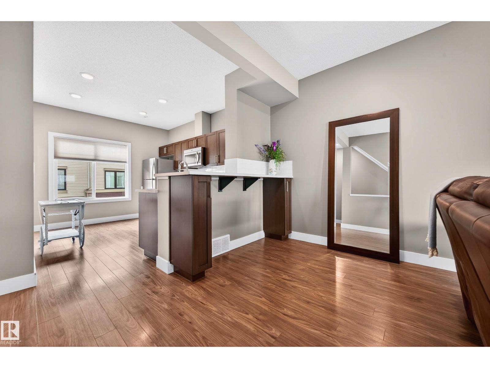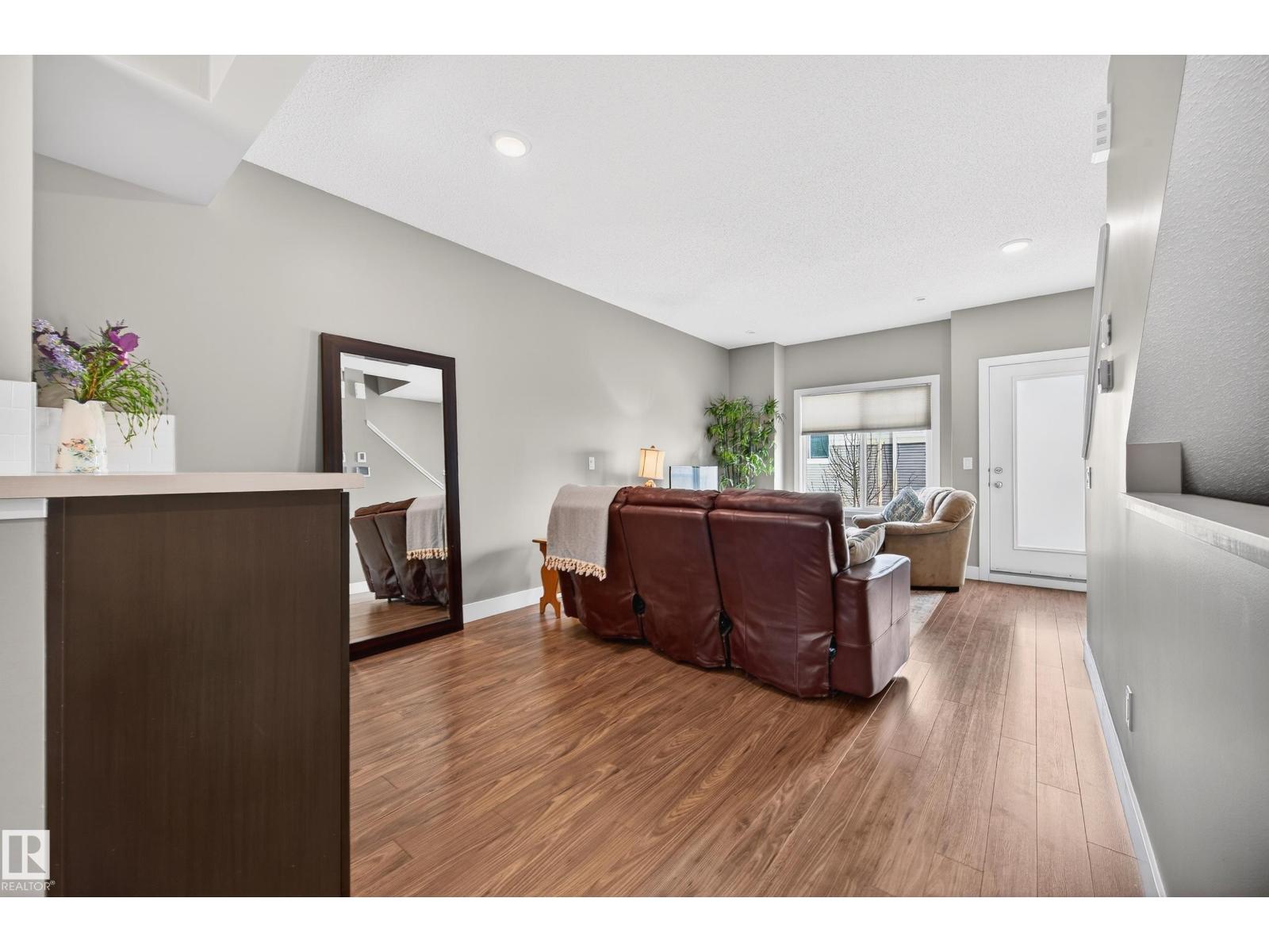 This thoughtfully designed 2-bed, 2.5 bath townhome in Village at Walker Lakes has been well maintained by the original owners. The main level features 9' ceilings and a bright, open layout with a modern kitchen, large pantry, and living and dining areas that lead out to your private balcony. Upstairs, you'll find two spacious bedrooms, each with walk-in closets, including a primary with a 3-piece ensuite, along with a second full bath and convenient upper laundry. The lower level includes a flex space ideal for a home office or workout area, plus access to the attached garage and front patio, perfect for enjoying some summer sun. Built by Landmark Homes, this home features energy-efficient mechanical systems including on-demand hot water, a high-efficiency furnace, HRV and triple-pane windows. Ideally located close to walking trails, ponds, shopping, and everyday amenities, with quick access to the Henday and South Edmonton Common. A great option for low-maintenance living without sacrificing space. (id:63190)