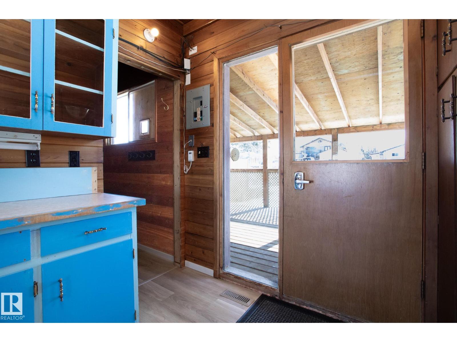 Your lake life starts here—just steps from the water in Yellowstone. Morning walks to the shoreline, access to community dock options, and quiet afternoons along lakeside trails are right outside your door. This 3-bedroom cabin delivers an affordable mix of character, comfort, and future potential. Inside, warm cedar walls, exposed beams, a spiral staircase and wood stove create true cottage atmosphere. The layout is functional with durable vinyl plank flooring and a bright main living space, while the kitchen and bathroom offer opportunity to update and add value. Drilled well and municipal greywater system provide reliable pressure and everyday ease. Bedrooms are compact, but the trade-off is a generous, regraded lot backing onto park and playground—ideal for a bunkie, garage or expanded outdoor living. A large shed already handles storage and toys. Comfortable for weekend escapes or simple full-time living, with dock participation adding to the lake experience. (id:63190)