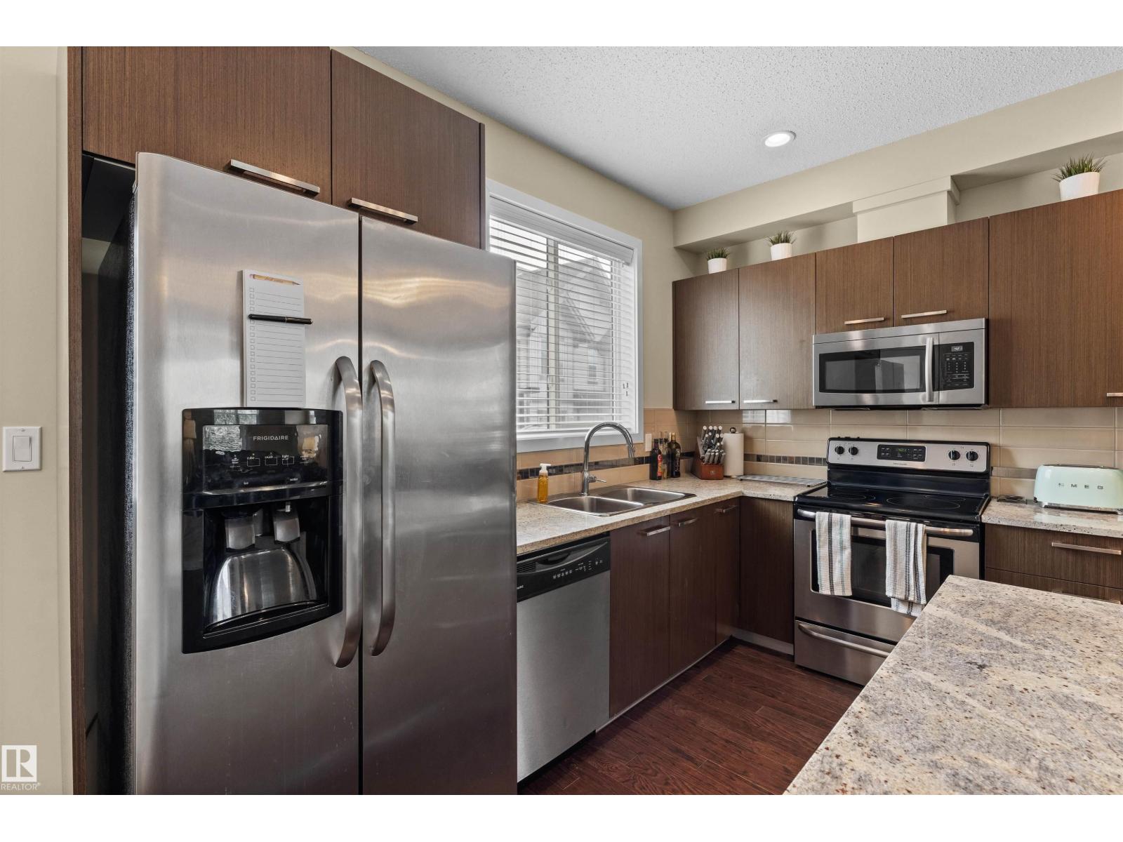 Welcome to Southern Springs, located in the vibrant and growing community of Walker. This stylish and well-maintained townhouse offers the perfect blend of comfort, function, and convenience. The entry level features a versatile flex room—ideal for a home office, gym, or guest space—as well as access to the double attached garage. Upstairs, you'll find a bright, open-concept living area with beautiful hardwood flooring, large windows that flood the space with natural light, and a spacious kitchen complete with a huge island and plenty of storage. Step onto the sunny balcony to enjoy your morning coffee or unwind at the end of the day. The top floor hosts two generous bedrooms, each with its own private ensuite, offering privacy and comfort. Ideally situated close to parks, schools, shopping, public transit, and all essential amenities, this home truly has it all. New furnace installed 2026. (id:63190)