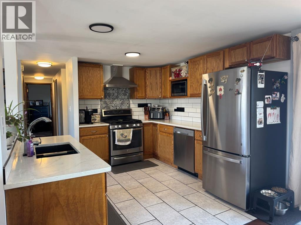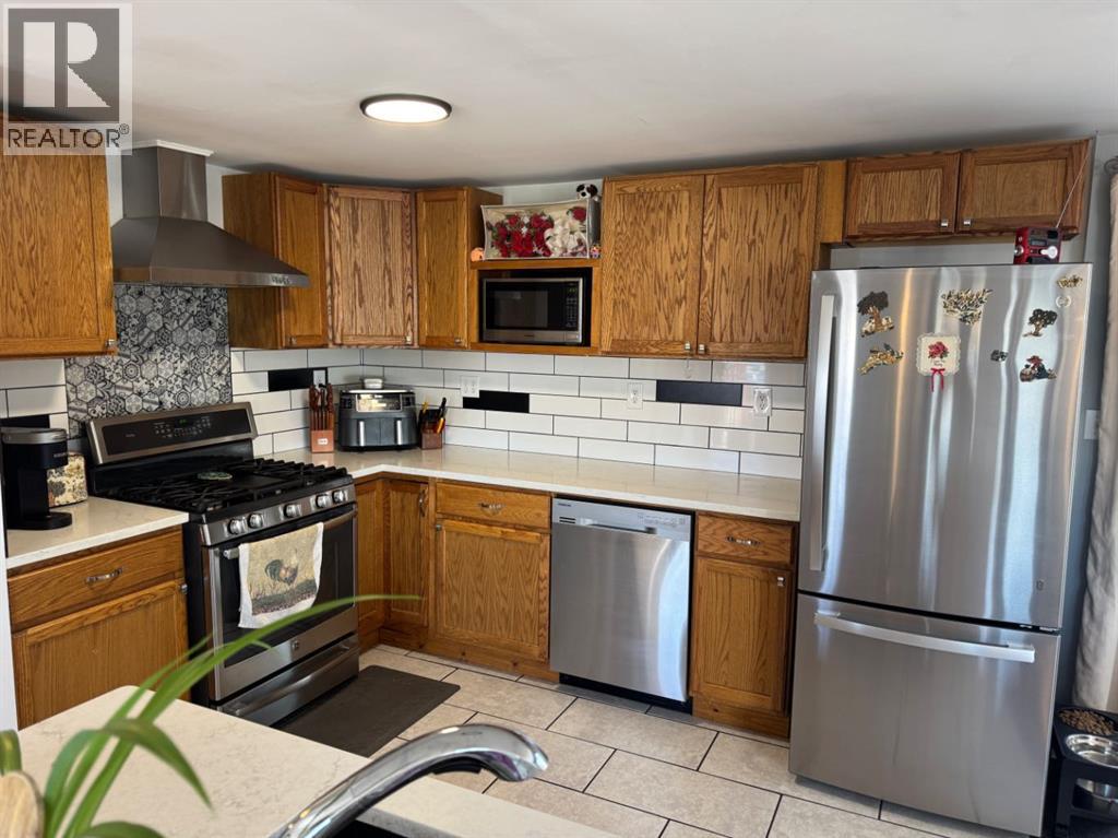 Welcome to this tastefully updated and meticulously maintained 4-bedroom 3-bathroom home, perfectly suited for comfortable family living and modern convenience. From the moment you arrive, you’ll appreciate the pride of ownership and thoughtful upgrades throughout. Age of structure was 1978 but has been completely rebuilt in 2012 Step inside to discover a bright, open-concept main floor featuring a spacious living room, dining area, and a stylish kitchen designed for both function and entertaining. The kitchen is a true highlight, complete with quartz countertops, stainless steel appliances—including a newer fridge (September 2022), gas stove with hood fan, dishwasher, and microwave—along with under-cabinet lighting and soft-close drawers that add a touch of everyday luxury. Just off the kitchen, a convenient butler’s pantry with chest freezer provides additional storage and prep space.The dining area opens through patio doors to a private, east-facing deck—perfect for enjoying your morning coffee in the sunshine. The main level offers two generously sized bedrooms, including a relaxing primary retreat featuring a ceiling fan, dual closets, and a spa-inspired 4-piece ensuite with a soaking tub and walk-in shower. A second full bathroom on this level showcases beautiful wood-textured tile and another walk-in shower.The lower level offers incredible versatility with a separate walk-out entrance. Here you’ll find a spacious flex room complete with a wet bar, second fridge, and dishwasher—ideal for entertaining or multi-generational living. Two additional bright bedrooms, a full bathroom with tub/shower, and a large laundry area with stacking washer/dryer, laundry sink, and ample storage complete this level.This home has been extensively upgraded for peace of mind, including newer vinyl windows and doors, 2x6 construction, updated plumbing, electrical, and lighting, a high-efficiency furnace and hot water tank (approximately 10 years old), and shingles replaced just 8 years ago. Flooring throughout includes a blend of durable tile, rich wood, bamboo in the bedrooms, and Tuscany maple in the lower level. The home is also wired with ethernet cable to ensure reliable connectivity throughout.Outside, the fully fenced backyard offers plenty of space for kids, pets, and outdoor enjoyment. Two storage sheds (10x10 and 10x12) provide added convenience, while a removable 32-foot fence/gate allows easy access for RV or recreational vehicle storage.Move-in ready and packed with features, this exceptional property is ready to welcome you home. Don’t miss your opportunity—book your private showing today! (id:63190)