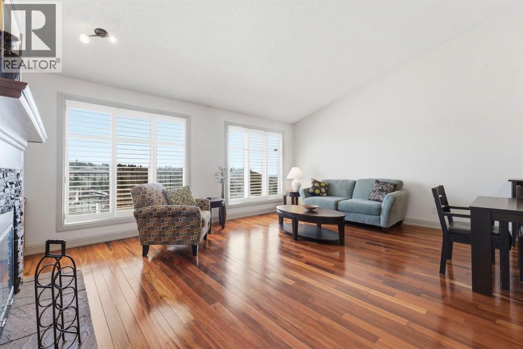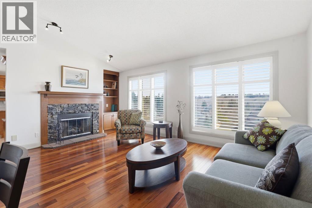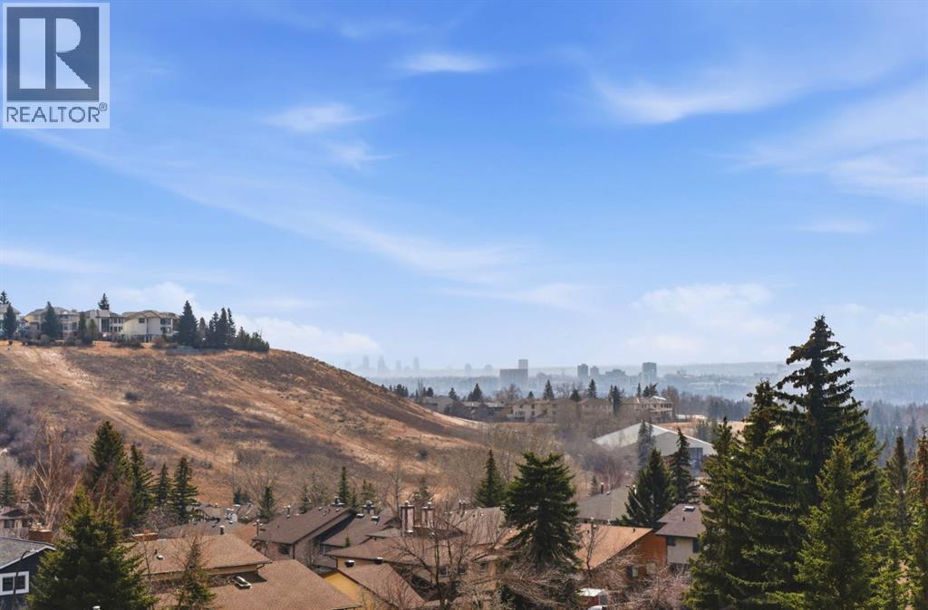 Discover 54 Edgeland Close NW—a beautifully maintained villa-style home in the prestigious Summit Point Estates of Edgemont. Perfectly positioned backing directly onto lush greenspace, this rare property offers breathtaking city and valley views from your private east-facing deck and select main-level windows. Enjoy unparalleled privacy and tranquility surrounded by mature trees, rolling green belts, and natural beauty—all steps from everyday conveniences. Completely updated throughout with fresh neutral décor, high-end plantation shutters on every window, and exquisite Brazilian Tigerwood hardwood flooring flowing seamlessly through most of the main floor. The home features a brand new high-efficiency furnace, central air conditioning, newer shingles and fresh exterior paint for lasting curb appeal and worry-free ownership. The sun-filled main level welcomes you through a large front entrance with vaulted ceilings and generous windows framing beautiful views. Open-concept living and dining area flows to a living room anchored by a gas fireplace featuring elegant oak mantle and stone facing, complemented by oak built-in bookshelves adding character and function. The chef's kitchen offers abundant oak cabinetry, granite countertops, stainless steel appliances, large pantry, in-floor heating for comfort, and garden door to east-facing balcony with gas BBQ hookup—ideal for outdoor dining. Both balcony and lower deck feature new Duradek surfaces for fresh, durable, low-maintenance enjoyment. The oversized primary bedroom easily accommodates king-sized bed with 4-piece ensuite featuring in-floor heating. A main-floor office/den with custom oak built-ins provides versatile quiet workspace, while convenient 2-piece bath combined with laundry completes this well-designed level. The fully developed walk-out lower level offers 9-foot ceilings, full in-floor heating, sliding door to lower deck, and bright open layout perfect for relaxing or entertaining. The family room showca ses gas fireplace with oak mantle and brick facing plus oak built-ins for warmth and charm. Two generous bedrooms and 4-piece bathroom provide comfortable guest or family accommodation, while massive storage areas with extensive shelving and cabinetry ensure effortless organization. Step out to private west-facing decks—ideal outdoor retreats for relaxing, entertaining, or soaking in spectacular city and valley vistas. Summit Point Estates delivers vibrant yet peaceful condo living with meticulously maintained common areas and easy access to Edgemont's shops, restaurants, transit, schools, and extensive pathway network. This turnkey villa combines exceptional updates, premium oak finishes, vaulted ceilings, large front entrance, comprehensive in-floor heating, central air conditioning, unbeatable greenspace position, and postcard-worthy views representing one of the finest offerings in Calgary's most coveted northwest enclaves. (id:63190)