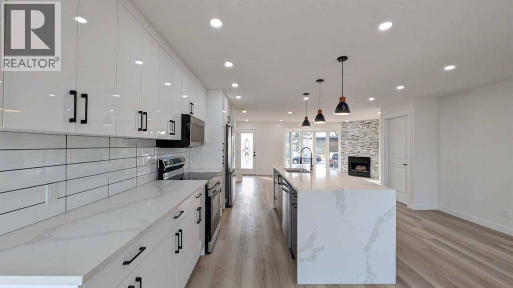 Exceptional bungalow in Southwest Calgary’s sought-after Haysboro, just blocks from the C-Train, parks, and top-rated schools. This newly renovated home offers an OPEN CONCEPT main floor with three spacious bedrooms, a designer bathroom, and a stunning gourmet kitchen featuring a large island, quartz countertops, and premium finishes. The living area showcases a fireplace and recessed lighting, creating a warm and contemporary atmosphere. The FULLY FINISHED BASEMENT with SEPARATE SIDE ENTRY provides excellent SUITE POTENTIAL (subject to city permits), featuring two additional bedrooms, a full bath, a generous living area perfect for extended family or rental income and a utility room with 2nd set of laundry and NEW FURNACE. Outside, enjoy a HUGE PRIVATE BACKYARD, a large deck ideal for entertaining, and an oversized double detached garage. Situated on a quiet cul-de-sac in the heart of Haysboro, this home offers a perfect blend of style, function, and location, with excellent nearby schools including Haysboro Elementary, Woodman Jr High, Henry Wise Wood High, and Our Lady of the Rockies High School. (id:63190)