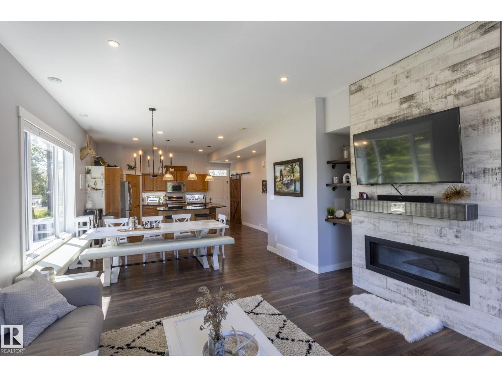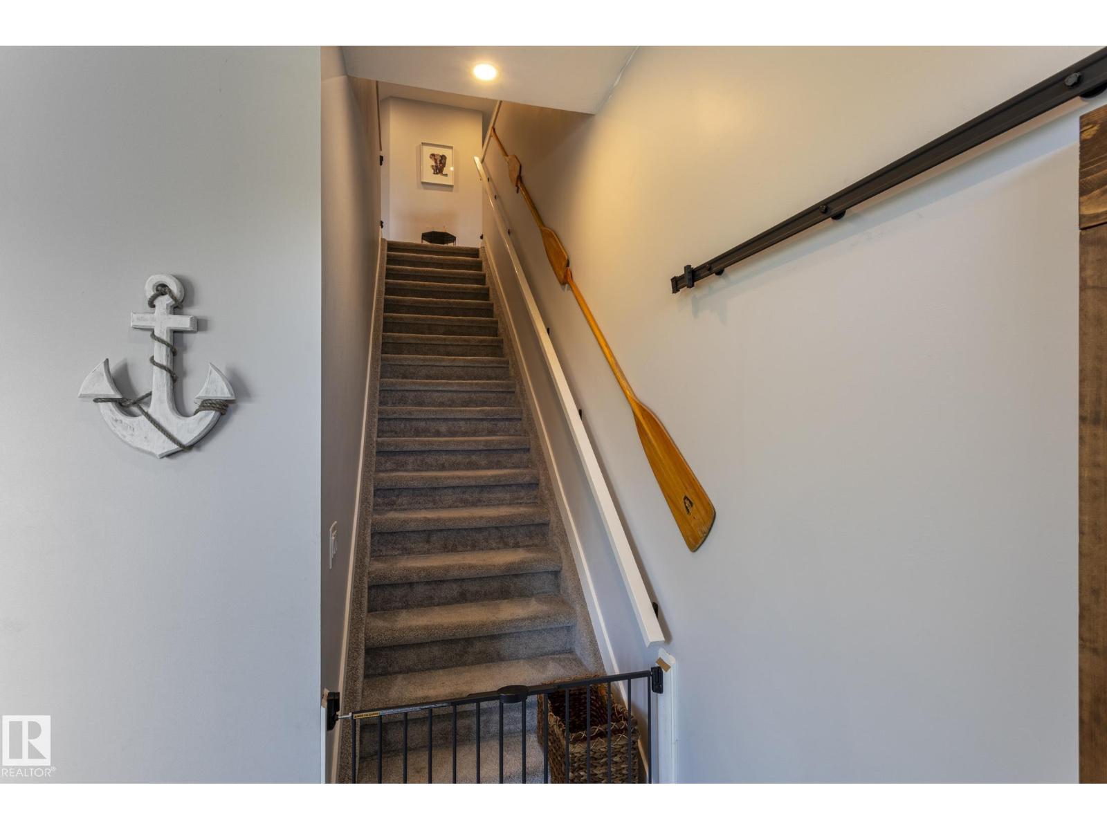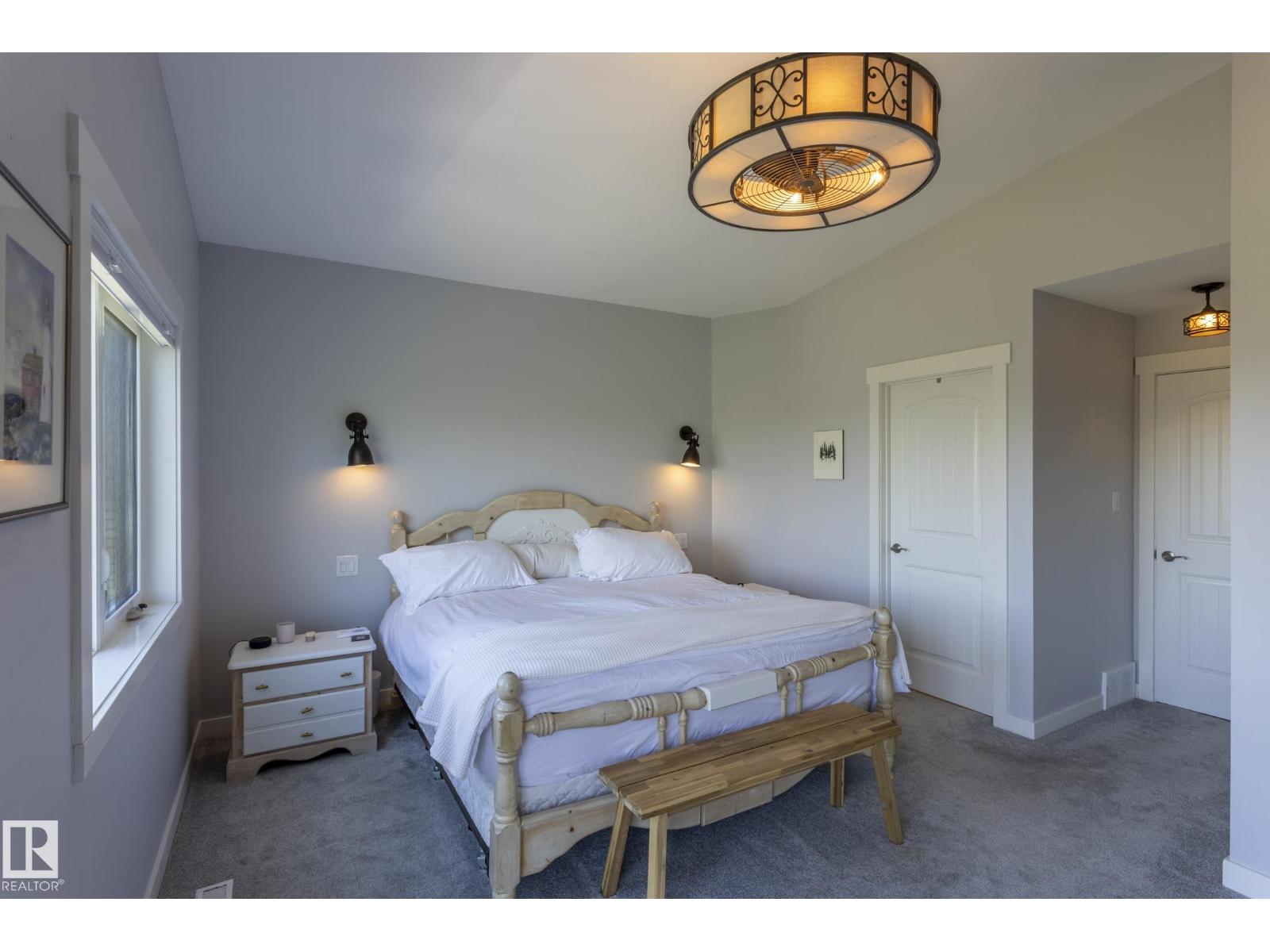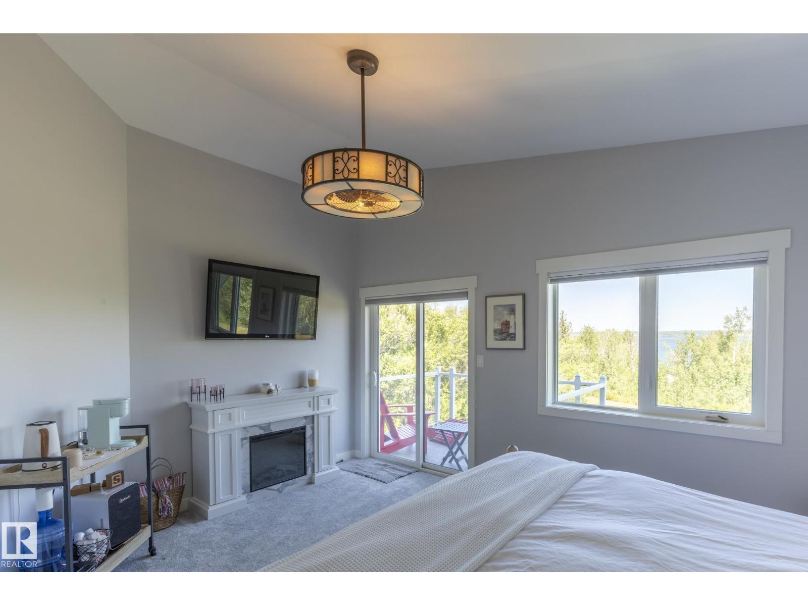 This is more than a cottage—it’s a home. Located in the gated community of Betula Beach on the sought-after south side of Lake Wabamun, this spacious property blends comfort and lakeside charm. The kitchen features stainless appliances, granite counters, oak cabinets, a corner pantry, and breakfast bar. Soaring 10' ceilings on the main floor create an airy feel, while upstairs you’ll find 6 generously sized bedrooms, 2 full baths, and convenient laundry. The primary suite includes a 3-piece ensuite, walk-in closet, and a Juliet balcony with a lake view—a perfect place for your morning coffee. Stay cool with central A/C and warm all winter with radiant heat in the tandem double attached garage. The lot is perched at the back of the subdivision with lake access and a shared community dock that extends to deeper water where your boat lift can be placed. A rare opportunity in one of the lake’s finest communities. (id:63190)