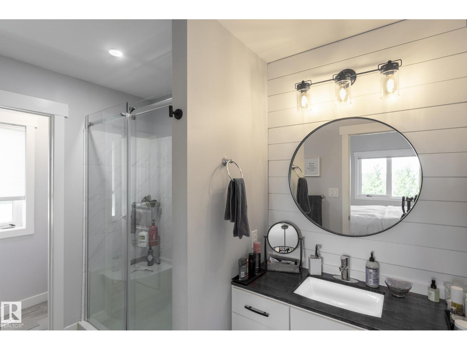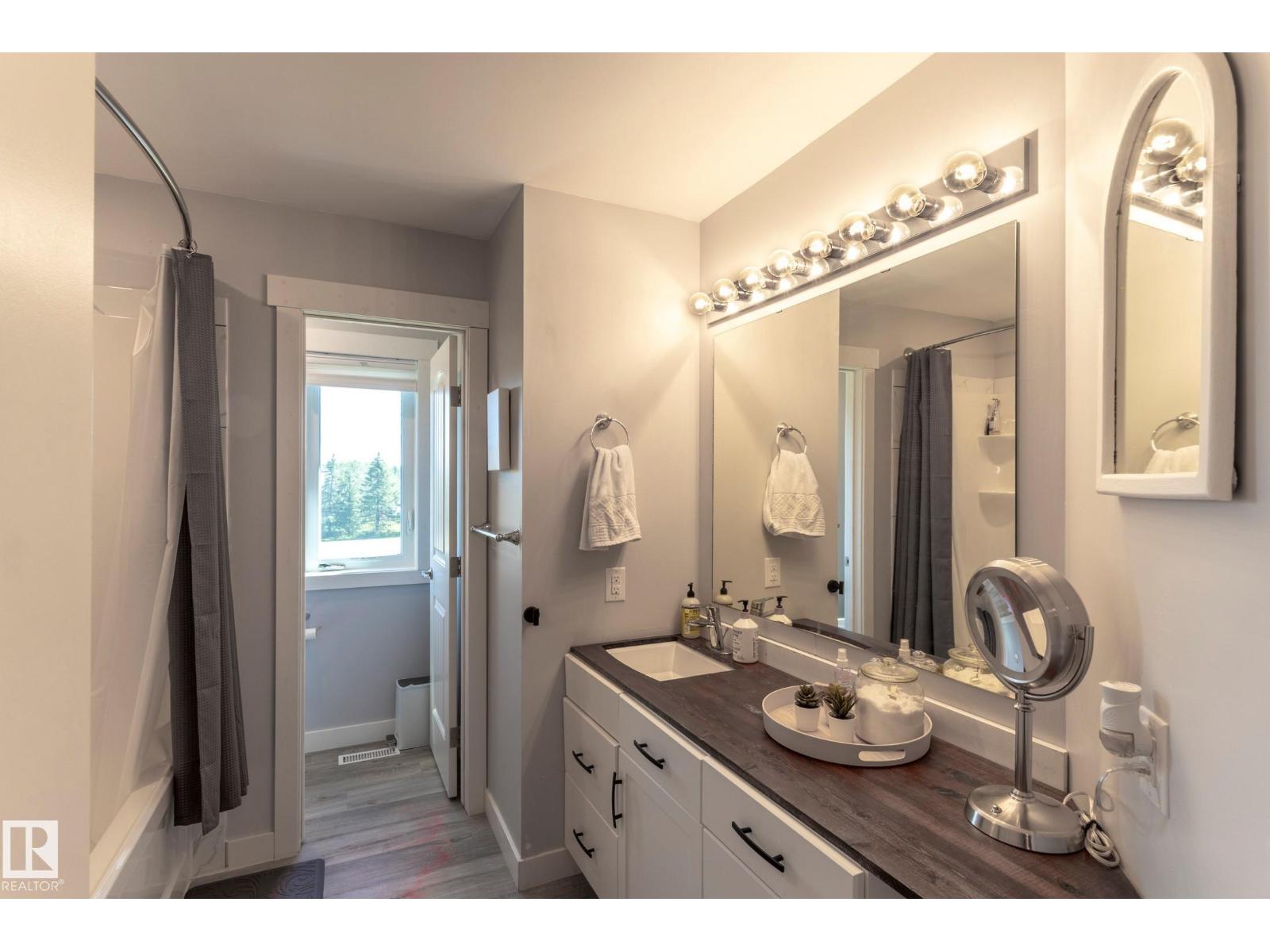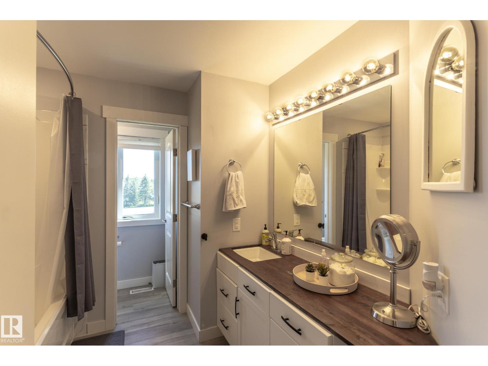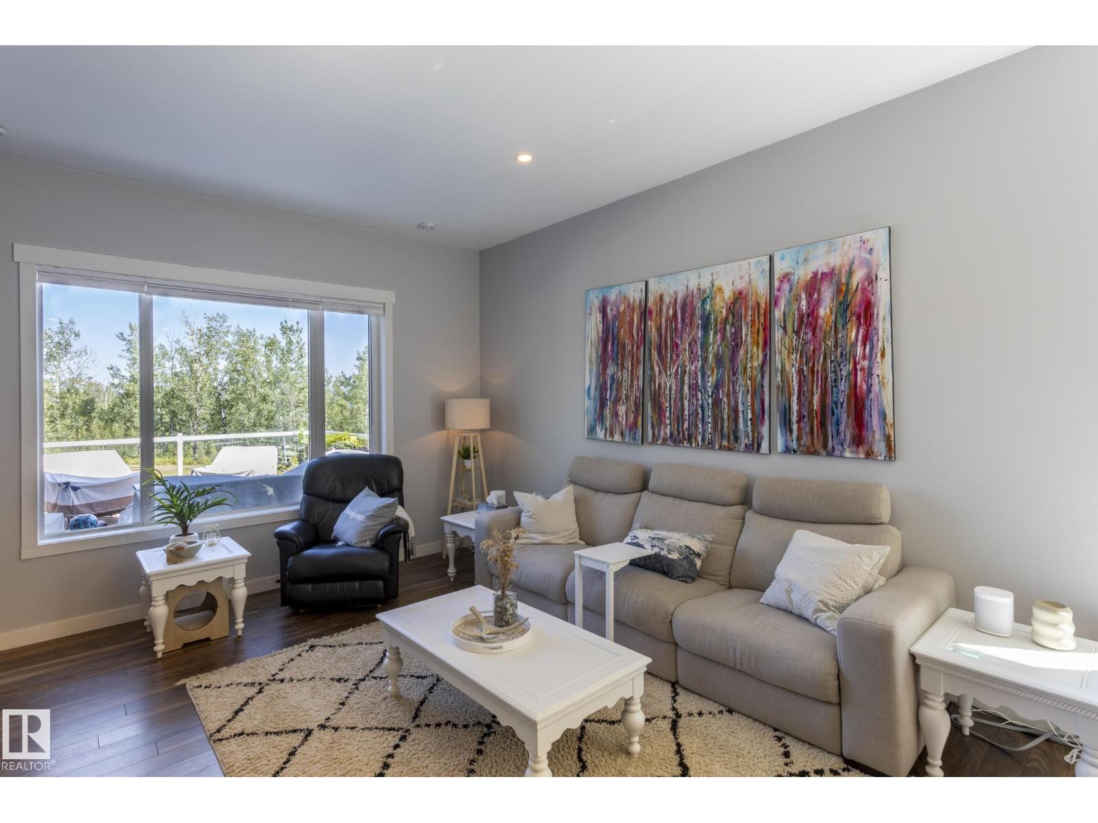 This is more than a cottage—it’s a home. Located in the gated community of Betula Beach on the sought-after south side of Lake Wabamun, this spacious property blends comfort and lakeside charm. The kitchen features stainless appliances, granite counters, oak cabinets, a corner pantry, and breakfast bar. Soaring 10' ceilings on the main floor create an airy feel, while upstairs you’ll find 6 generously sized bedrooms, 2 full baths, and convenient laundry. The primary suite includes a 3-piece ensuite, walk-in closet, and a Juliet balcony with a lake view—a perfect place for your morning coffee. Stay cool with central A/C and warm all winter with radiant heat in the tandem double attached garage. The lot is perched at the back of the subdivision with lake access and a shared community dock that extends to deeper water where your boat lift can be placed. A rare opportunity in one of the lake’s finest communities. (id:63190)