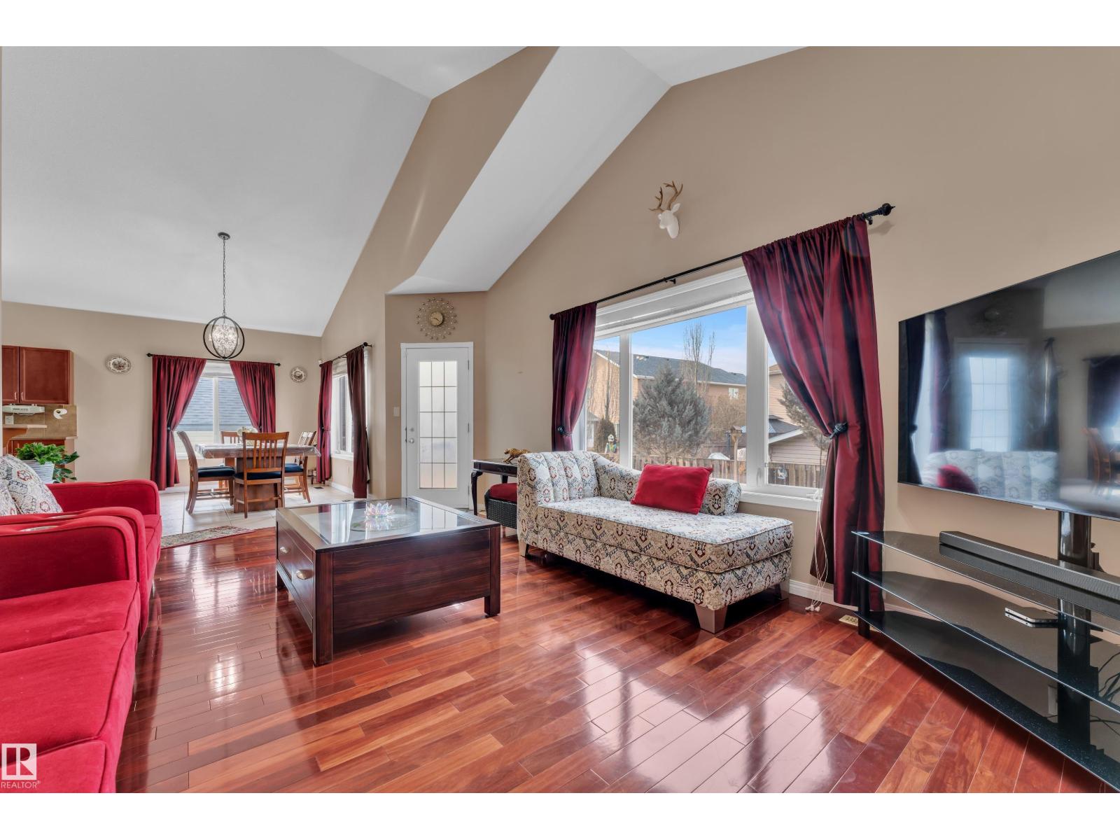 Welcome to EAGLEMONT HEIGHTS. This East Facing, bright & beautiful, fully finished with Double Attached Garage Bi-level is just at walking distance to Beaumont's SPORT and RECREATION Center. Over 2,900 sq ft of developed living space features 5 Bedrooms and 3 full washrooms. The main floor features a large open floor plan w/a spacious kitchen boasting ample cabinets, corner pantry and breakfast bar. The dining area can fit that large family table. The living room features hardwood floor, gas fireplace and vaulted ceilings. Completing the main floor is the 4pce bath and bedrooms 2 & 3. The large primary suite is on the upper level and feature a 4pce ensuite and walk-in closet. The finished basement boasts a great family room w/bar, 3pce bath, huge 4th and 5th bedroom. The lower level is the laundry/mechanical room that feature a great storage area. The west facing yard features a two-tiered deck, large trees and shed. Close to schools and amenities. (id:63190)