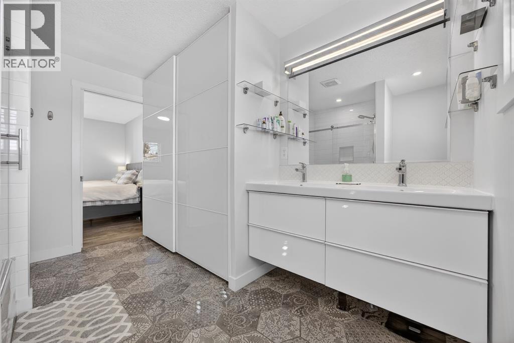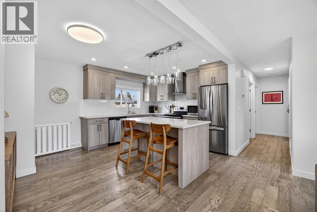 Welcome to one of the most beautifully renovated bungalows on a quiet street in the family-oriented community of Fairview. Completely reimagined in 2018, this home offers a stunning open-concept design filled with natural light and elevated by timeless, high-end finishes throughout. The main floor features engineered hardwood flooring and a designer kitchen complete with upgraded cabinetry, quartz countertops, stainless steel appliances, and statement lighting that anchors the space. The layout flows effortlessly into the dining and living areas, creating an ideal setting for both everyday living and entertaining. Retreat to the spacious primary bedroom, highlighted by a luxurious 4-piece ensuite. A well-appointed second bedroom and a stylish 4-piece bathroom on the main level provide excellent flexibility for family, guests, or a home office, while all bedrooms are equipped with custom closet organizers. The fully developed lower level continues to impress with a large, bright family room and two additional oversized bedrooms, perfect for guests or growing families. Extensive upgrades ensure modern comfort and peace of mind, including air conditioning, a high-efficiency furnace, custom blinds and updated lighting. The outdoor space is equally inviting, featuring a large front yard with garden area, a recently epoxied rear patio, a stone walkway and a newer double detached garage. Truly turnkey and meticulously maintained, this exceptional home offers refined living just steps from schools, parks, and everyday amenities. (id:63190)