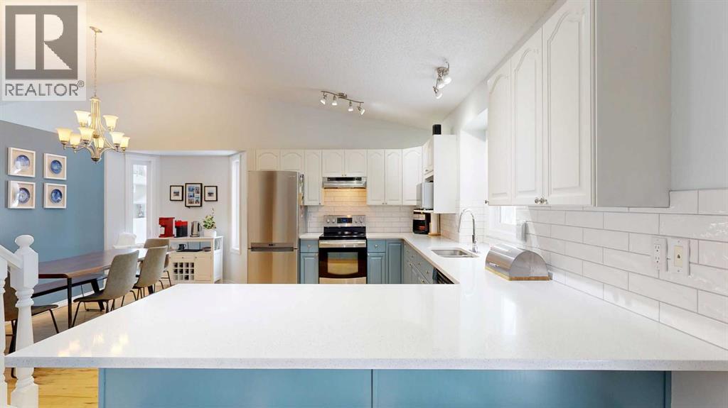 Spacious and versatile home offering excellent flexibility for growing families! Currently configured as a 3-bedroom property for MLS purposes, this 1.5-storey home also features additional basement rooms that can function as bedrooms, office space, or hobby rooms—providing potential for up to 5 sleeping areas.The main floor showcases a unique and functional layout with vaulted ceilings, a large kitchen, and an open-concept dining and living area at the back of the home—perfect for everyday living and entertaining. A second, more private front living room near the entry offers a great space to relax or host guests. You’ll also appreciate the convenience of main floor laundry and a 2-piece bathroom located just off the garage.Upstairs features three bedrooms, including a spacious primary with its own 4-piece ensuite, plus an additional 4-piece bathroom for family or guests.Enjoy peace of mind with new triple-pane windows and updated plumbing, along with a large lot and RV parking. Ideally located in an excellent area close to amenities, this home offers both space and flexibility to suit your needs. (id:63190)