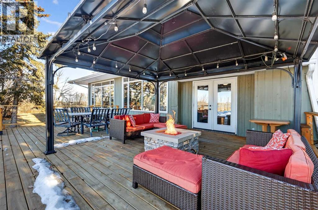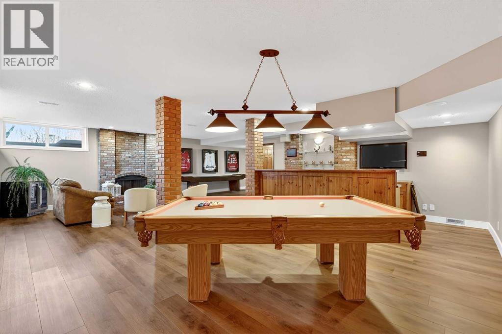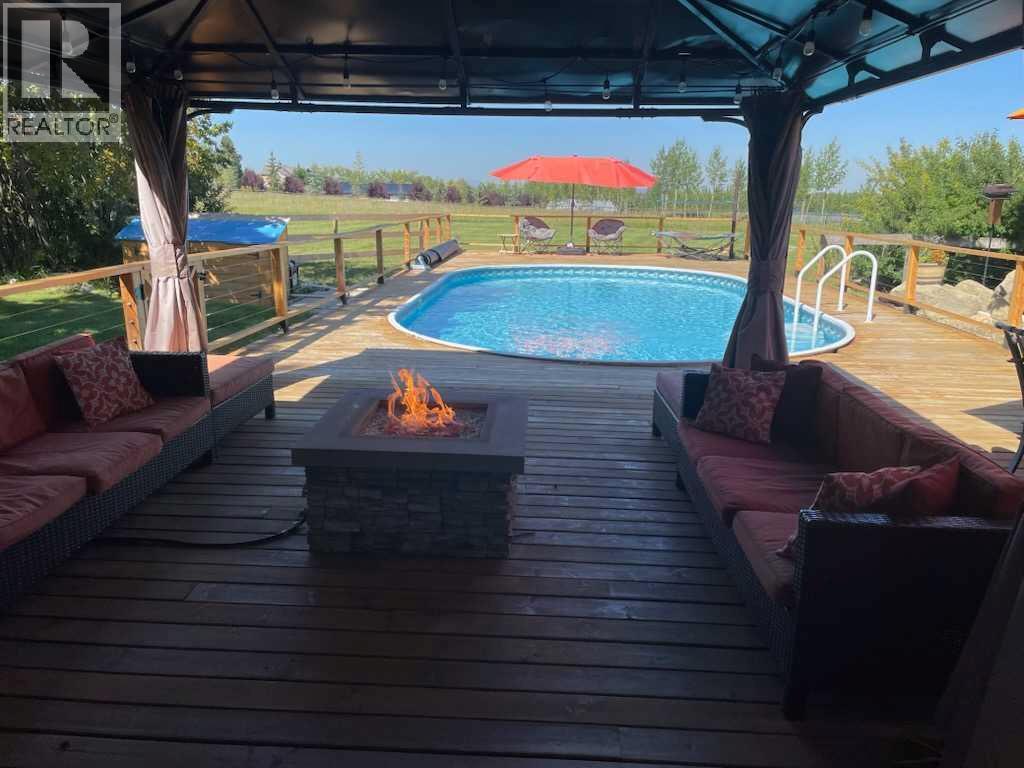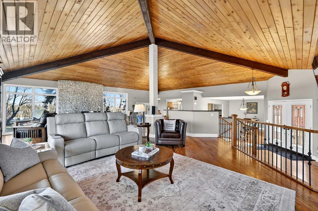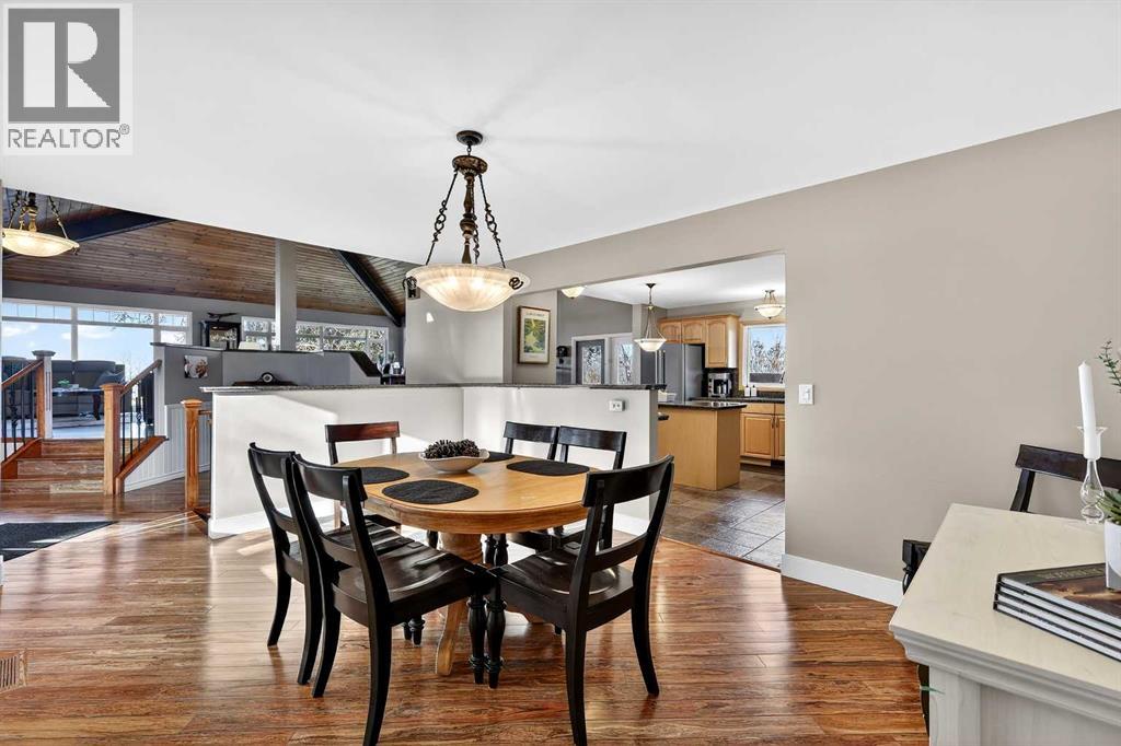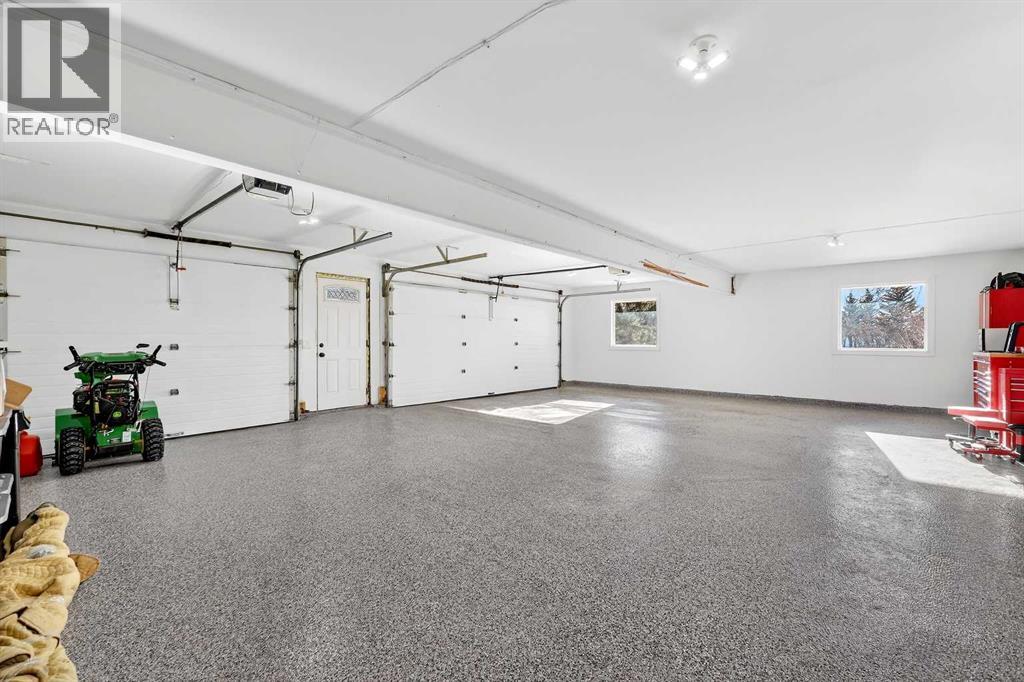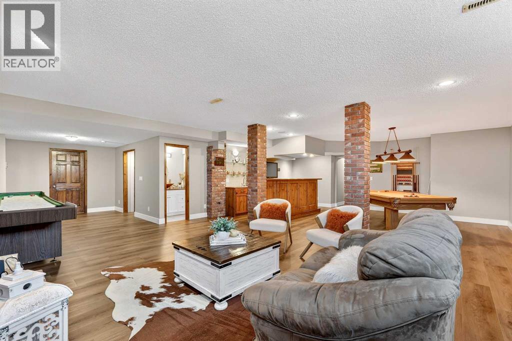 Welcome to an exceptional lifestyle property in the sought-after Red Deer Lake area, just minutes from Spruce Meadows and a short 5 minute drive to the amenities of Calgary. This beautifully maintained ranch-style home offers the perfect balance of peaceful country living and everyday convenience, making it ideal for families, professionals, and anyone seeking space, privacy, and long-term value.Designed for both comfort and functionality, the main level features four spacious bedrooms, including a private primary retreat with a spa-inspired ensuite complete with rain shower and generous walk-in closet. Thoughtful finishes such as hardwood flooring, vaulted ceilings, and quality fixtures create a warm yet refined atmosphere throughout the main living spaces. The bright, open layout connects the upgraded kitchen, dining area, and living room, making it equally suited for entertaining or relaxed daily living.The freshly updated lower level expands your lifestyle possibilities with luxury vinyl plank flooring, a full bathroom, wet bar, games area, hobby room, and extensive storage including a cold room and wine cellar, ideal for entertaining, recreation, or multigenerational flexibility.Outdoors, the property truly shines as a private retreat. Enjoy gorgeous mountain views, a semi-inground gas-heated pool, multiple patios, a gazebo with fire pit, low-maintenance landscaping, and plenty of room for play, gatherings, or quiet evenings under the sky with the Rocky Mountains as your backdrop! Families will appreciate the dedicated play structure and even a covered school bus shelter at the driveway for added convenience.Car enthusiasts, hobbyists, or business owners will recognize the exceptional value of the heated oversized triple garage with epoxy floors and workspace, plus a separate single garage perfect for equipment, storage, or projects. A renovated mudroom with lockers and direct garage access keeps daily life organized and efficient.Set in a tranquil setting only minutes to groceries, medical services, and daily essentials, this property delivers the rare combination of rural serenity, functional space, and city accessibility. With extensive upgrades already completed and pride of ownership evident throughout, this is more than a home… it’s a lifestyle opportunity in one of the region’s most desirable country residential communities. (id:63190)