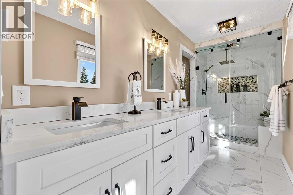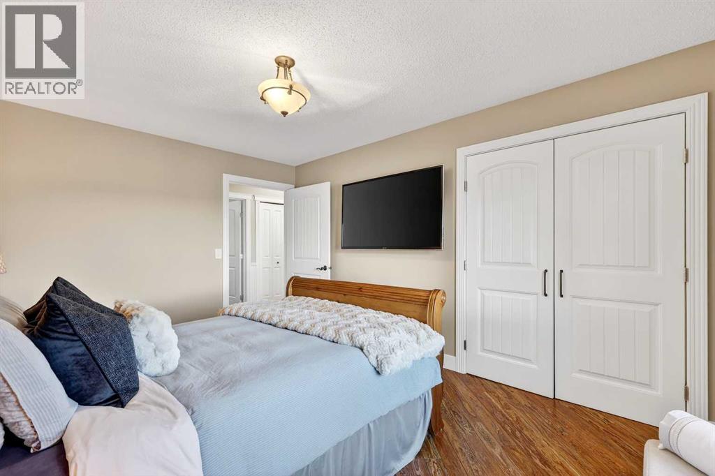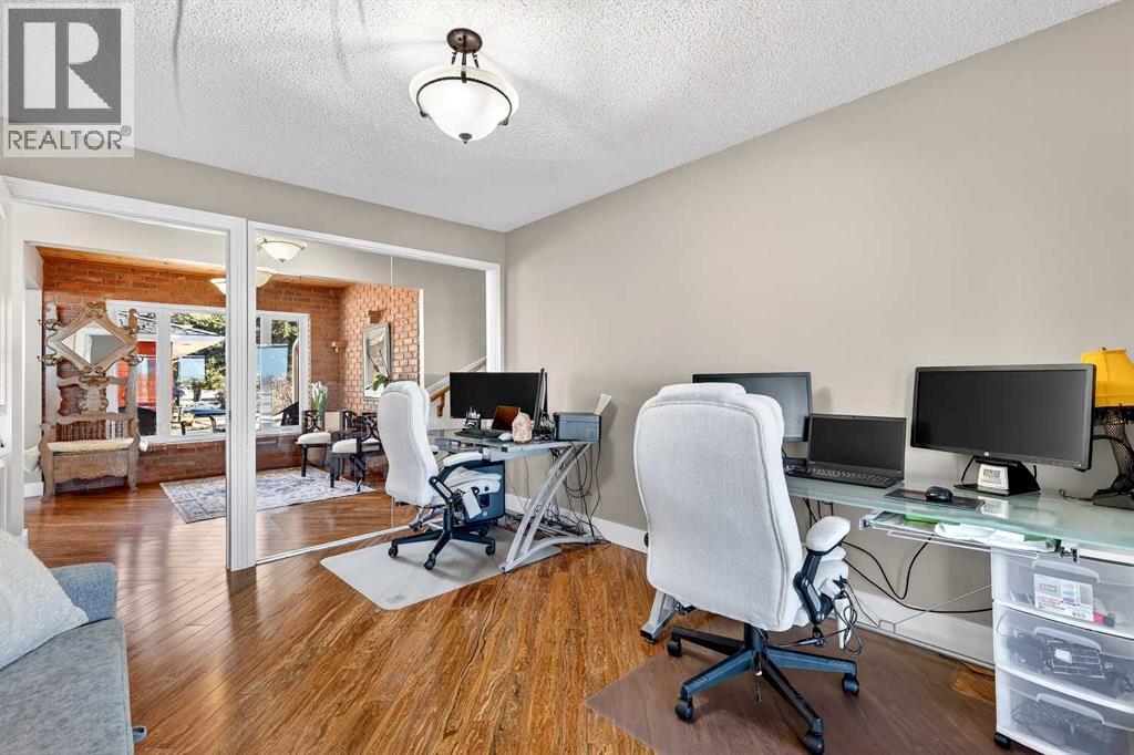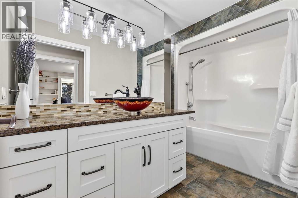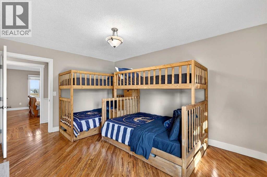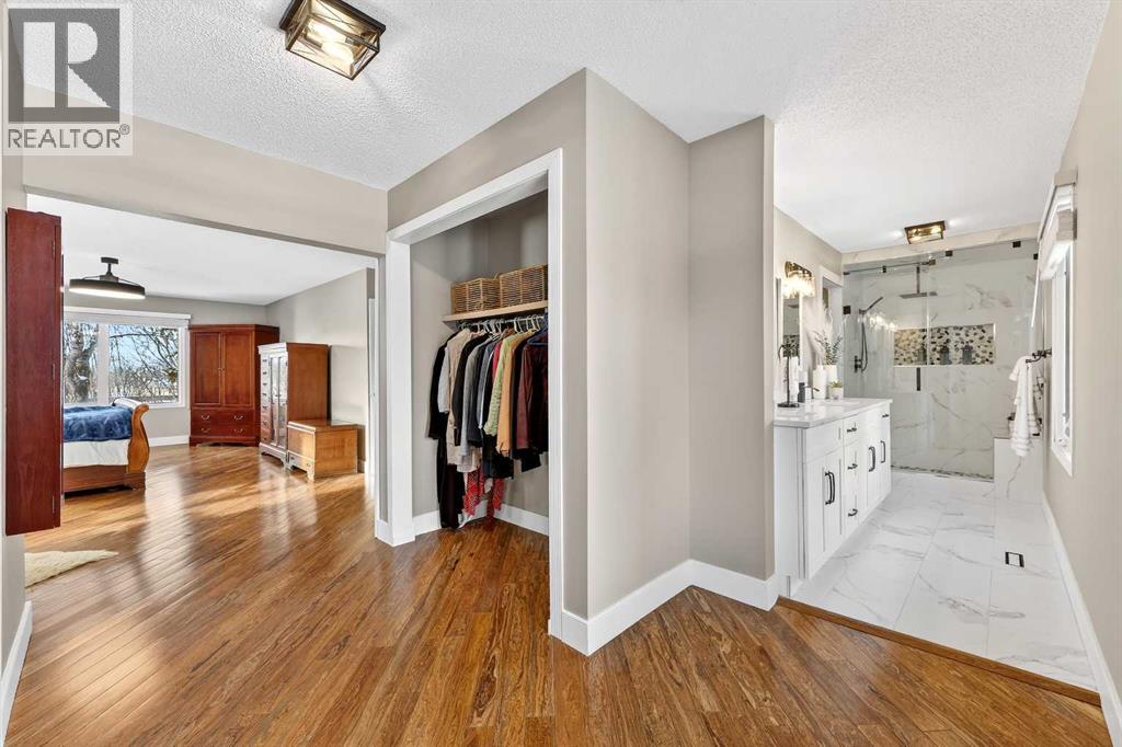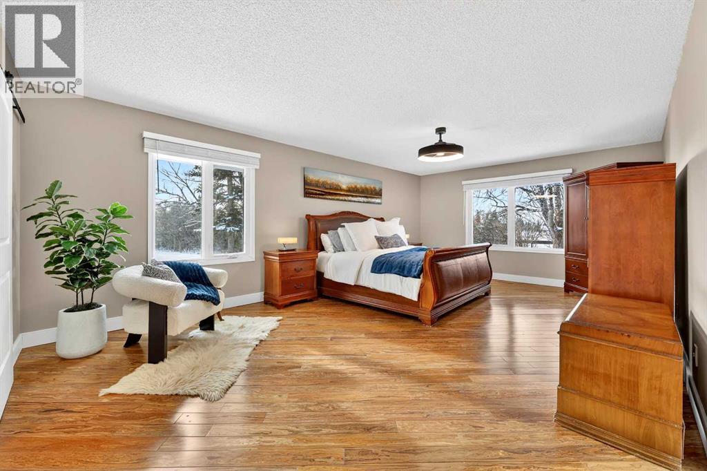 Welcome to an exceptional lifestyle property in the sought-after Red Deer Lake area, just minutes from Spruce Meadows and a short 5 minute drive to the amenities of Calgary. This beautifully maintained ranch-style home offers the perfect balance of peaceful country living and everyday convenience, making it ideal for families, professionals, and anyone seeking space, privacy, and long-term value.Designed for both comfort and functionality, the main level features four spacious bedrooms, including a private primary retreat with a spa-inspired ensuite complete with rain shower and generous walk-in closet. Thoughtful finishes such as hardwood flooring, vaulted ceilings, and quality fixtures create a warm yet refined atmosphere throughout the main living spaces. The bright, open layout connects the upgraded kitchen, dining area, and living room, making it equally suited for entertaining or relaxed daily living.The freshly updated lower level expands your lifestyle possibilities with luxury vinyl plank flooring, a full bathroom, wet bar, games area, hobby room, and extensive storage including a cold room and wine cellar, ideal for entertaining, recreation, or multigenerational flexibility.Outdoors, the property truly shines as a private retreat. Enjoy gorgeous mountain views, a semi-inground gas-heated pool, multiple patios, a gazebo with fire pit, low-maintenance landscaping, and plenty of room for play, gatherings, or quiet evenings under the sky with the Rocky Mountains as your backdrop! Families will appreciate the dedicated play structure and even a covered school bus shelter at the driveway for added convenience.Car enthusiasts, hobbyists, or business owners will recognize the exceptional value of the heated oversized triple garage with epoxy floors and workspace, plus a separate single garage perfect for equipment, storage, or projects. A renovated mudroom with lockers and direct garage access keeps daily life organized and efficient.Set in a tranquil setting only minutes to groceries, medical services, and daily essentials, this property delivers the rare combination of rural serenity, functional space, and city accessibility. With extensive upgrades already completed and pride of ownership evident throughout, this is more than a home… it’s a lifestyle opportunity in one of the region’s most desirable country residential communities. (id:63190)