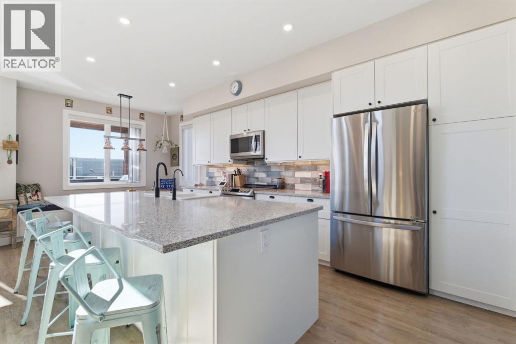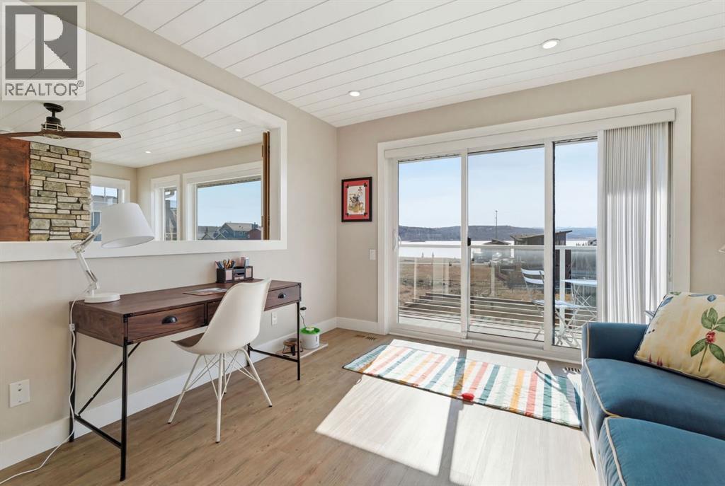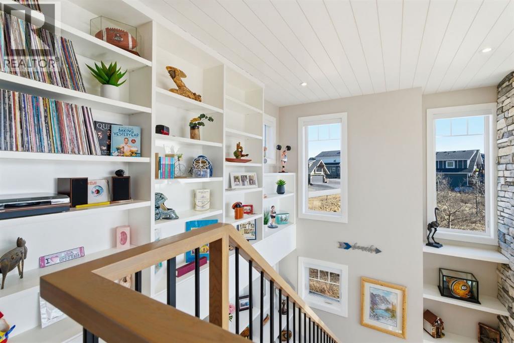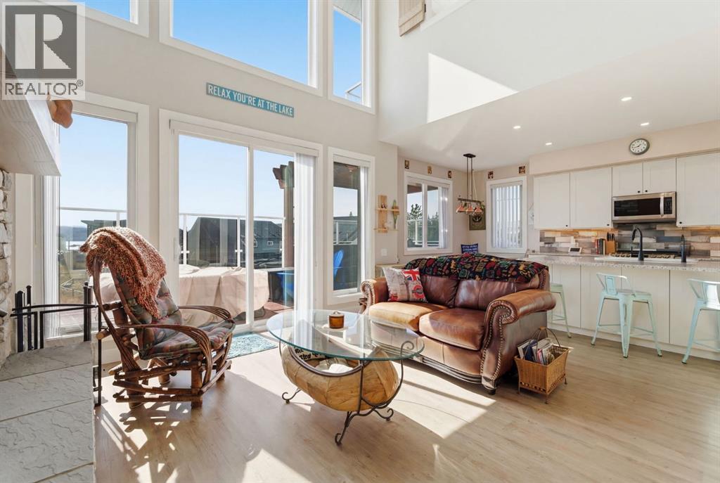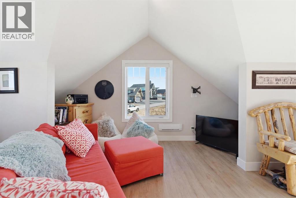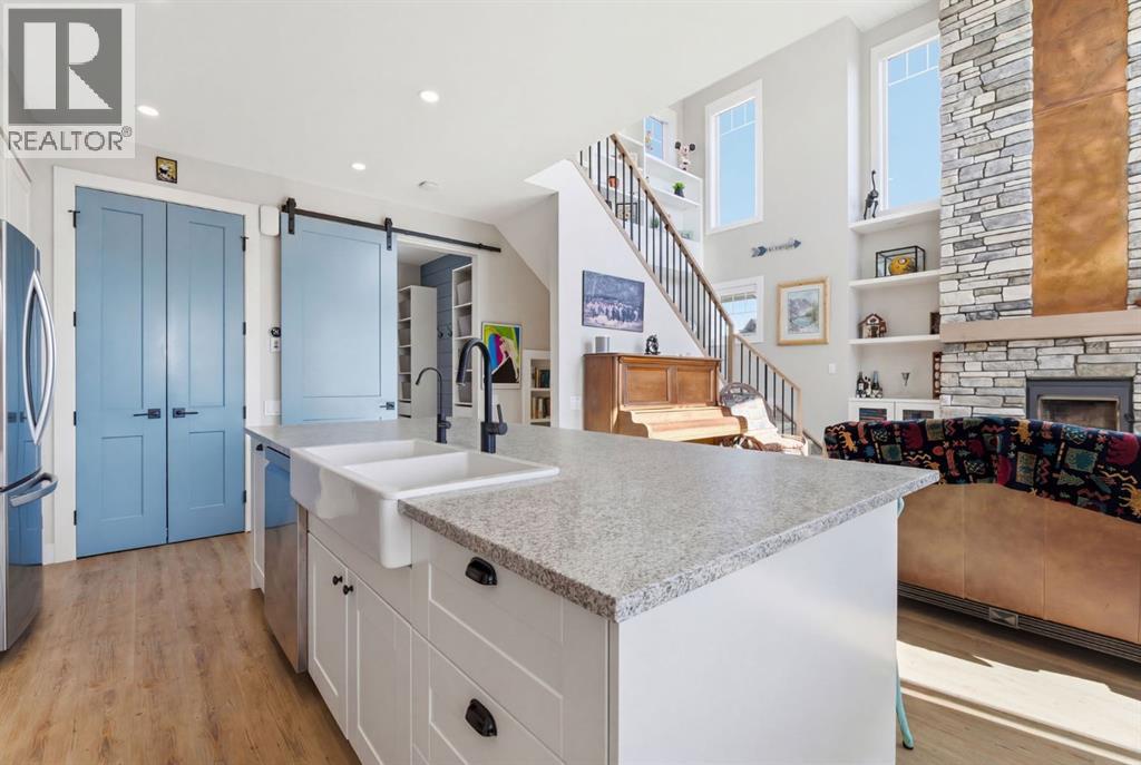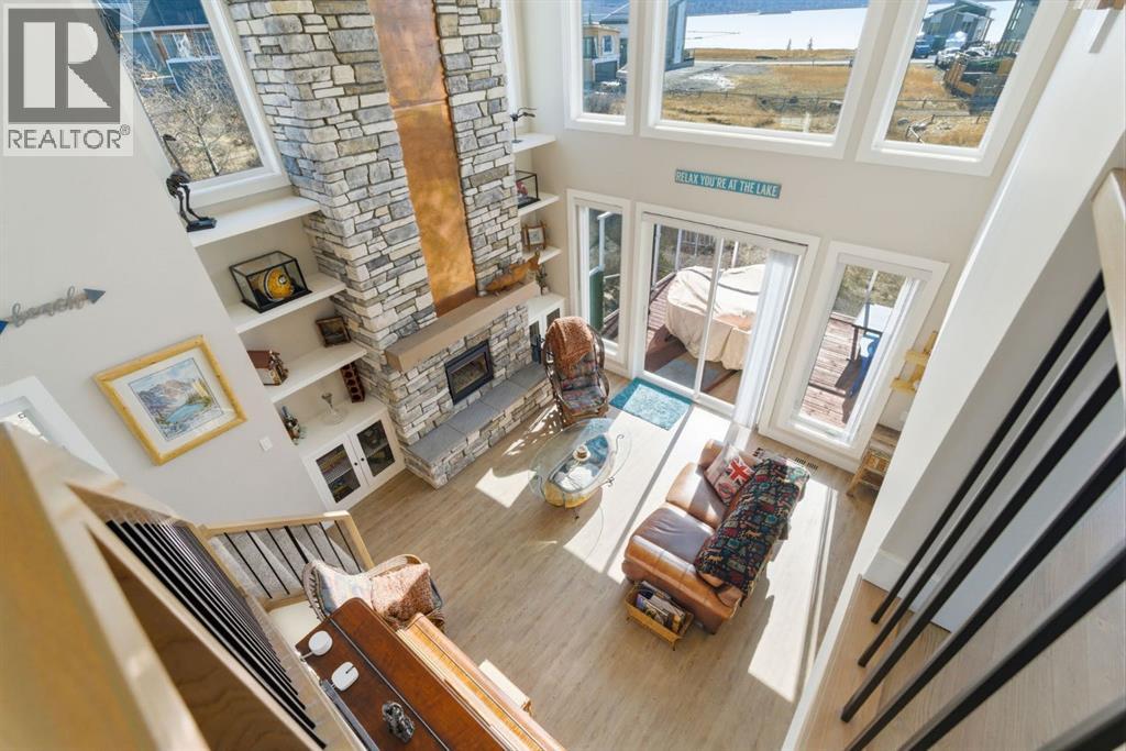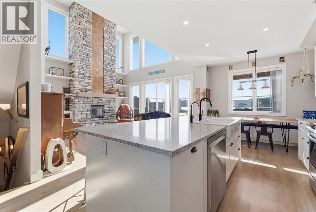 Welcome to CottageClub at Ghost Lake—where lake living meets mountain views and every day feels like an escape. Just minutes from Cochrane and an easy drive from Calgary, this vibrant, amenity-rich community offers the perfect balance of weekend retreat and full-time living. Built by Aura Quality Homes, this fully finished 1.5-storey walkout offers 2,293 of total living space and has been thoughtfully designed—offering flexibility, and highly elevated finishes throughout. Step inside and you’re immediately welcomed by an inviting entry with custom storage solutions and a stylish 2-piece bath. The heart of the home is the open-concept main living area, with soaring two-storey ceilings, a wood-burning stone fireplace with copper insert, and custom built-ins, adding both character and function. The kitchen is nothing short of impressive where attention to detail shines—from soft-close cabinetry and a stone backsplash to the oversized granite island with farmhouse sink. Added features such as a water filtration system and extensive storage space elevate both comfort and convenience. Shiplap detailing and expansive triple-pane windows bring in natural light while framing the incredible views beyond. The dining area features built-in bench seating with storage—perfect for gathering with family and friends. Step outside onto the expansive full-width deck, complete with stairs leading to the yard, creating a seamless indoor-outdoor lifestyle. Upstairs, you’ll find two versatile spaces—one is a perfect bedroom with a large walk-in closet and another ideal as a 2nd bedroom or home office—along with a 3-piece bath. A private balcony off the upper level offers a quiet place to take in the panoramic lake and mountain views. The walkout lower level is dedicated to the primary retreat, designed for relaxation with a spacious bedroom, walk-in closet, and a luxurious spa inspired 5-piece ensuite featuring in-floor heating and a glass steam shower. Barn doors allow you to create sep aration or maintain an open feel with a large family room. Patio doors lead directly outside, further connecting you to the natural surroundings. Laundry and additional storage complete this level. Above the double heated garage, is a bunk house with a 3-piece bath offering incredible flexibility—perfect for teens, guests, extended family, or a private workspace. This home is also equipped for modern living with smart home features, integrated network wiring, and an energy-efficient Mitsubishi Zuba heat pump providing both heating and cooling year-round. Just steps from the clubhouse, and lake access, making its location truly one of the best in the community. CottageClub is a unique community offering an unmatched lifestyle—complete with a private beach, lake access, sport courts, and walking paths. The recreation centre features a gym, indoor pool, hot tub, and library. Whether you’re looking for a weekend getaway or a full-time home, this is your opportunity to experience lake living at its finest. (id:63190)