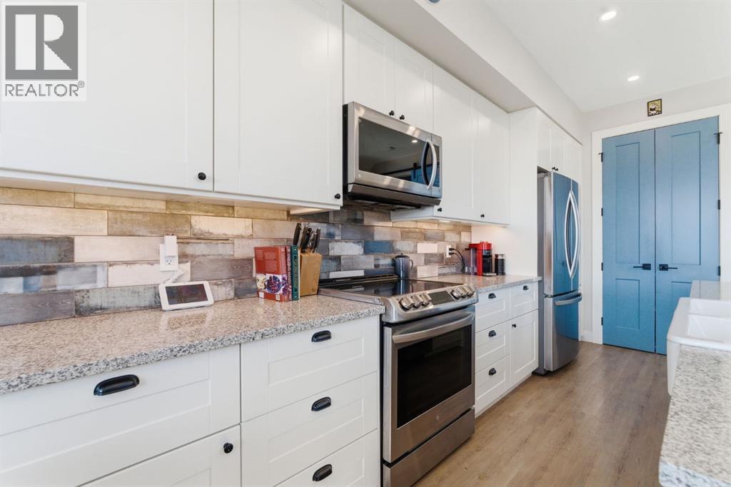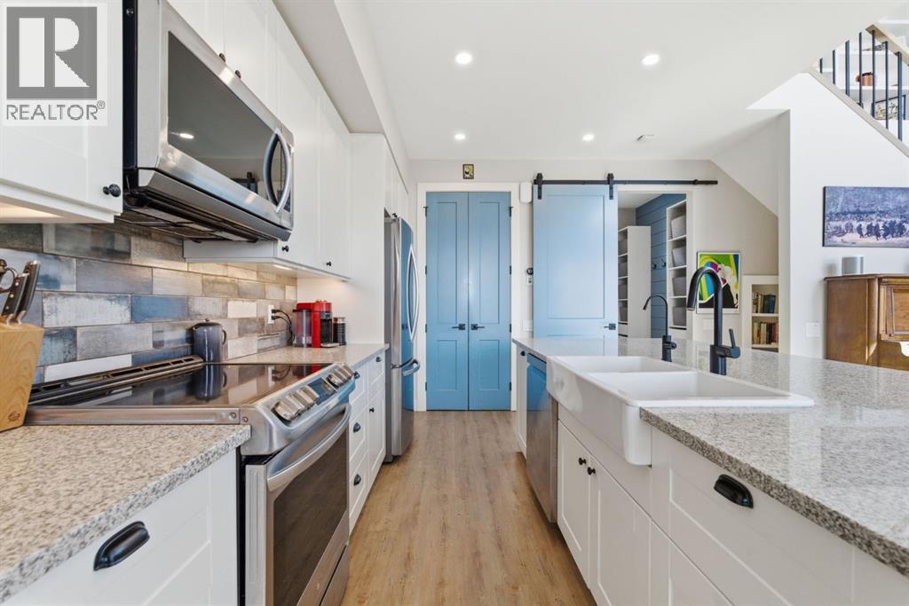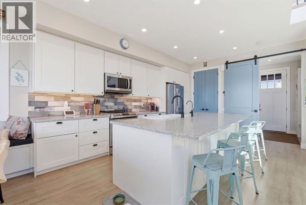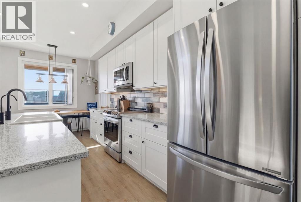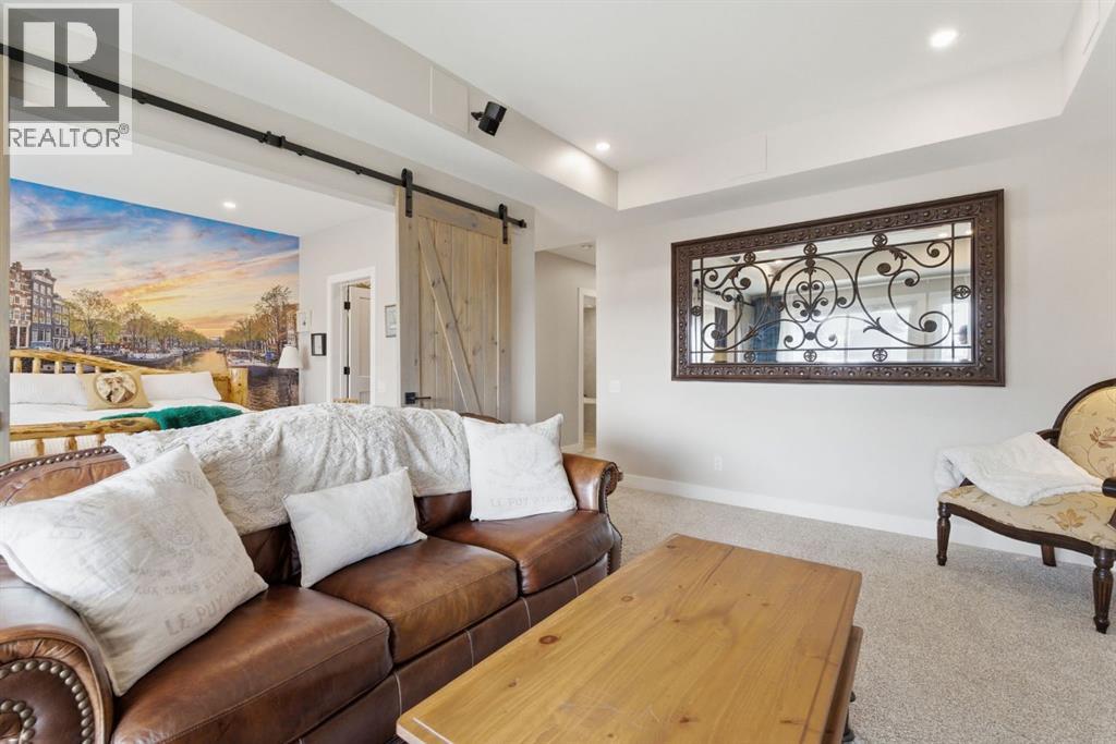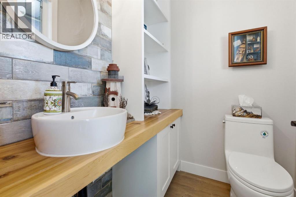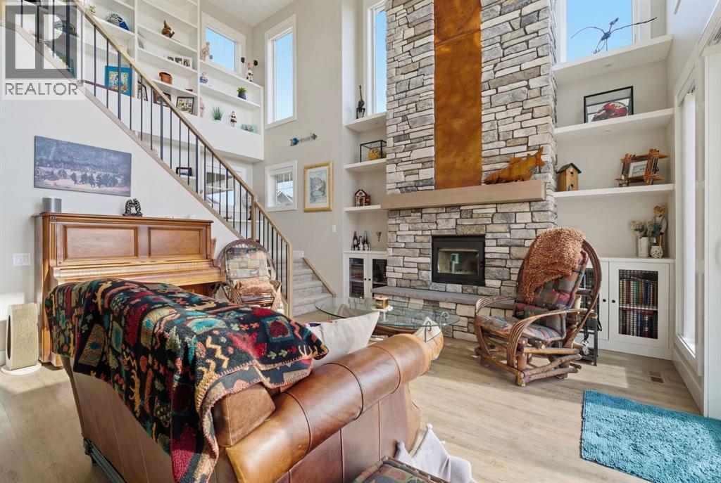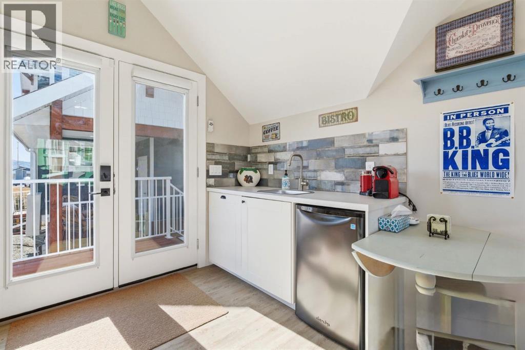Welcome to CottageClub at Ghost Lake—where lake living meets mountain views and every day feels like an escape. Just minutes from Cochrane and an easy drive from Calgary, this vibrant, amenity-rich community offers the perfect balance of weekend retreat and full-time living. Built by Aura Quality Homes, this fully finished 1.5-storey walkout offers 2,293 of total living space and has been thoughtfully designed—offering flexibility, and highly elevated finishes throughout. Step inside and you’re immediately welcomed by an inviting entry with custom storage solutions and a stylish 2-piece bath. The heart of the home is the open-concept main living area, with soaring two-storey ceilings, a wood-burning stone fireplace with copper insert, and custom built-ins, adding both character and function. The kitchen is nothing short of impressive where attention to detail shines—from soft-close cabinetry and a stone backsplash to the oversized granite island with farmhouse sink. Added features such as a water filtration system and extensive storage space elevate both comfort and convenience. Shiplap detailing and expansive triple-pane windows bring in natural light while framing the incredible views beyond. The dining area features built-in bench seating with storage—perfect for gathering with family and friends. Step outside onto the expansive full-width deck, complete with stairs leading to the yard, creating a seamless indoor-outdoor lifestyle. Upstairs, you’ll find two versatile spaces—one is a perfect bedroom with a large walk-in closet and another ideal as a 2nd bedroom or home office—along with a 3-piece bath. A private balcony off the upper level offers a quiet place to take in the panoramic lake and mountain views. The walkout lower level is dedicated to the primary retreat, designed for relaxation with a spacious bedroom, walk-in closet, and a luxurious spa inspired 5-piece ensuite featuring in-floor heating and a glass steam shower. Barn doors allow you to create sep aration or maintain an open feel with a large family room. Patio doors lead directly outside, further connecting you to the natural surroundings. Laundry and additional storage complete this level. Above the double heated garage, is a bunk house with a 3-piece bath offering incredible flexibility—perfect for teens, guests, extended family, or a private workspace. This home is also equipped for modern living with smart home features, integrated network wiring, and an energy-efficient Mitsubishi Zuba heat pump providing both heating and cooling year-round. Just steps from the clubhouse, and lake access, making its location truly one of the best in the community. CottageClub is a unique community offering an unmatched lifestyle—complete with a private beach, lake access, sport courts, and walking paths. The recreation centre features a gym, indoor pool, hot tub, and library. Whether you’re looking for a weekend getaway or a full-time home, this is your opportunity to experience lake living at its finest. (id:63190)