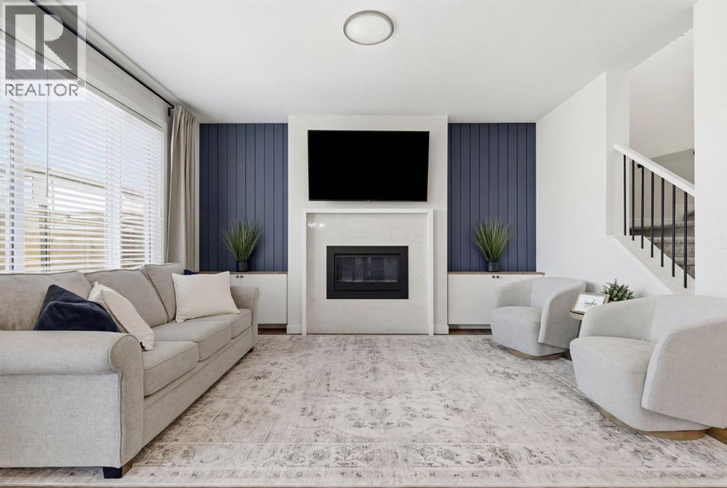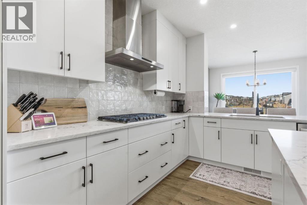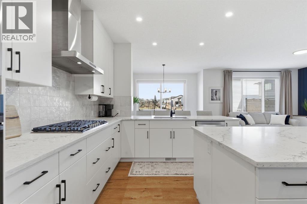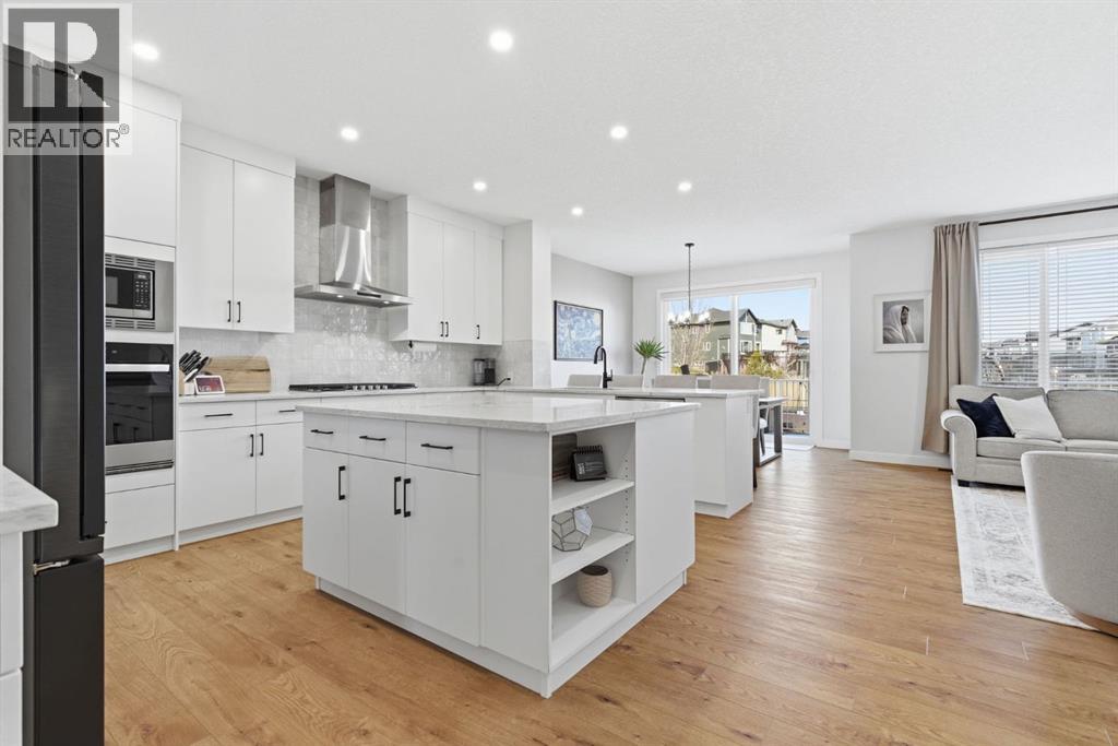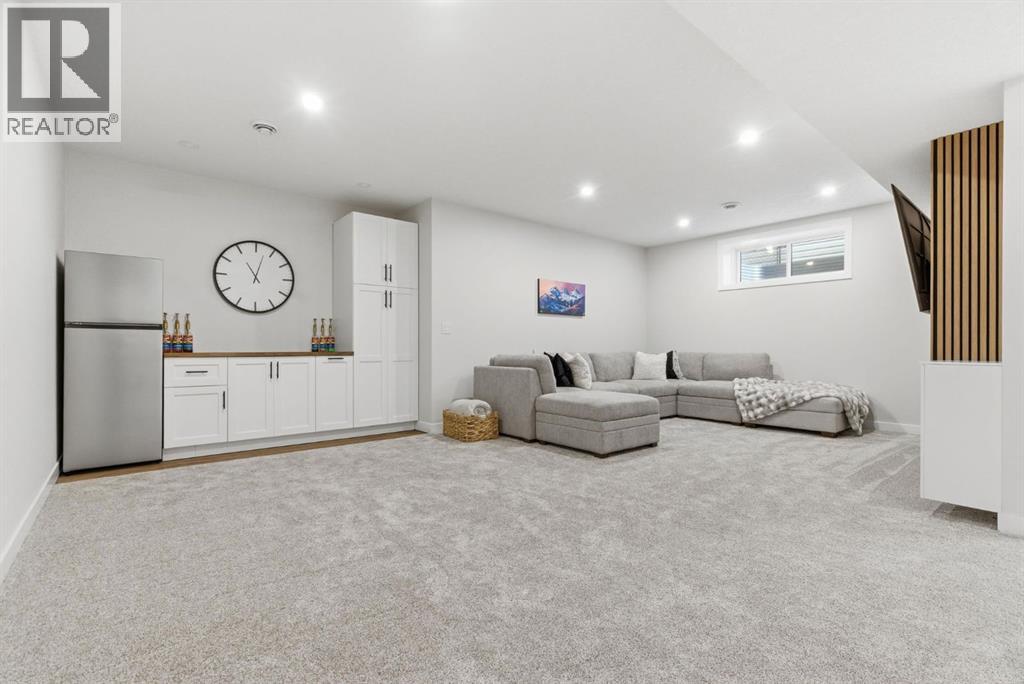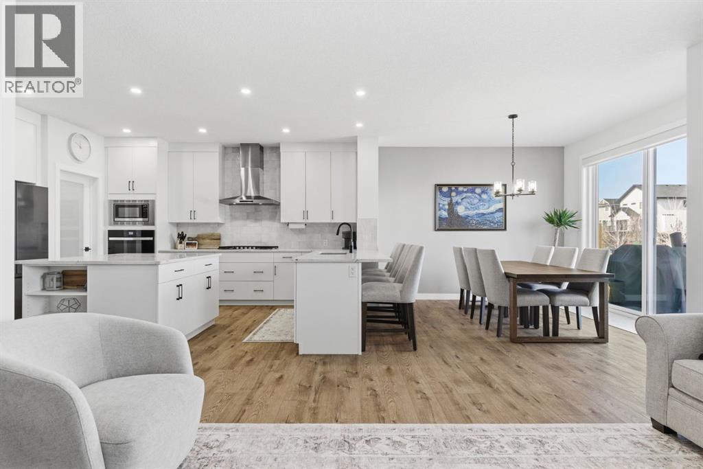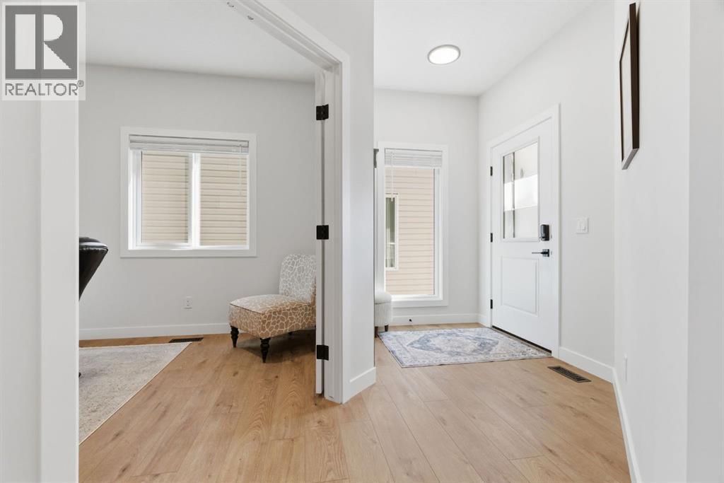 **OPEN HOUSE: 1 - 3PM, April 11, 2026 (Saturday)** Welcome to 117 Ranchers View in Okotoks. This home is better than brand new. Built just over a year ago by Sterling Homes and still offering New Home Warranty, it has been kept in meticulous condition and delivers what new builds don’t. A fully finished basement, Gemstone Lights, completed landscaping with a fenced yard and irrigation, window coverings already in place, and a washer and dryer included. All the extras are done, so you can just move in and enjoy. Offering just under 2,500 sqft above grade and over 3,400 sqft of total developed living space, this home checks every box. You’ll notice the curb appeal right away with hardie-board siding on both the front and back, along with an oversized double attached garage. Out back, the home backs onto a green belt with open sightlines across the green space, creating a private and peaceful setting. The main floor features durable vinyl plank flooring, a front office, a half bath, and a functional mudroom off the garage with built-in shelving. A walk-through pantry leads you into the upgraded kitchen, complete with ceiling-height cabinetry, quartz countertops, two islands, a stainless steel fridge, built-in microwave and oven, and a gas cooktop. This is a true chef’s kitchen designed for both everyday living and entertaining. The open concept layout flows seamlessly into the living room with a fireplace, and into the dining area with patio doors leading to your composite deck. From here, you’ll enjoy incredible views of the large yard and green space behind. Upstairs features the highly sought-after four bedrooms on one level, along with a spacious bonus room. Two of the bedrooms are positioned perfectly for kids with a nearby bathroom, while the third bedroom sits closer to the primary. The primary bedroom offers a large walk-in closet and expansive windows overlooking the green space and pathway. The ensuite includes double sinks, a soaker tub, tiled shower, and a separate water closet. The recently developed basement offers 9-foot ceilings, a dry bar with included fridge, and a feature wall with a TV, along with a great open flex space perfect for a kids homework zone or easily converted into a fifth bedroom. Around the corner is a beautifully finished bathroom with custom tile, along with additional storage under the stairs. Located in one of Okotoks’ most desirable areas, you’ll love the quick access to the highway and proximity to schools. Why buy brand new when you can own better than brand new. (id:63190)
