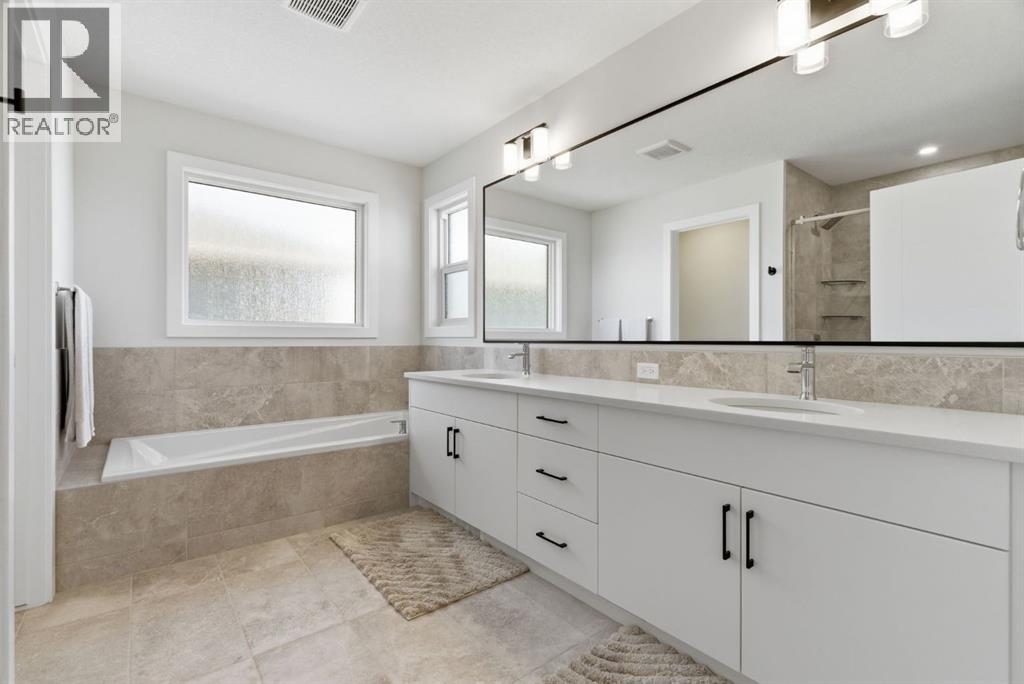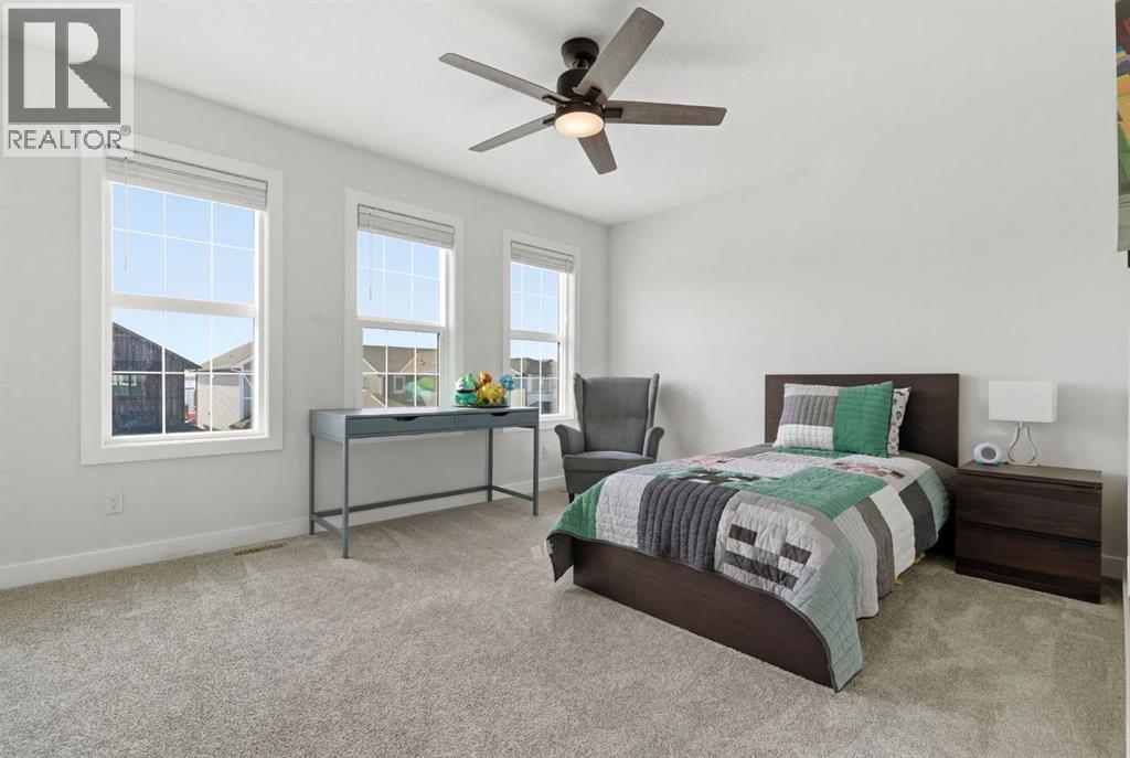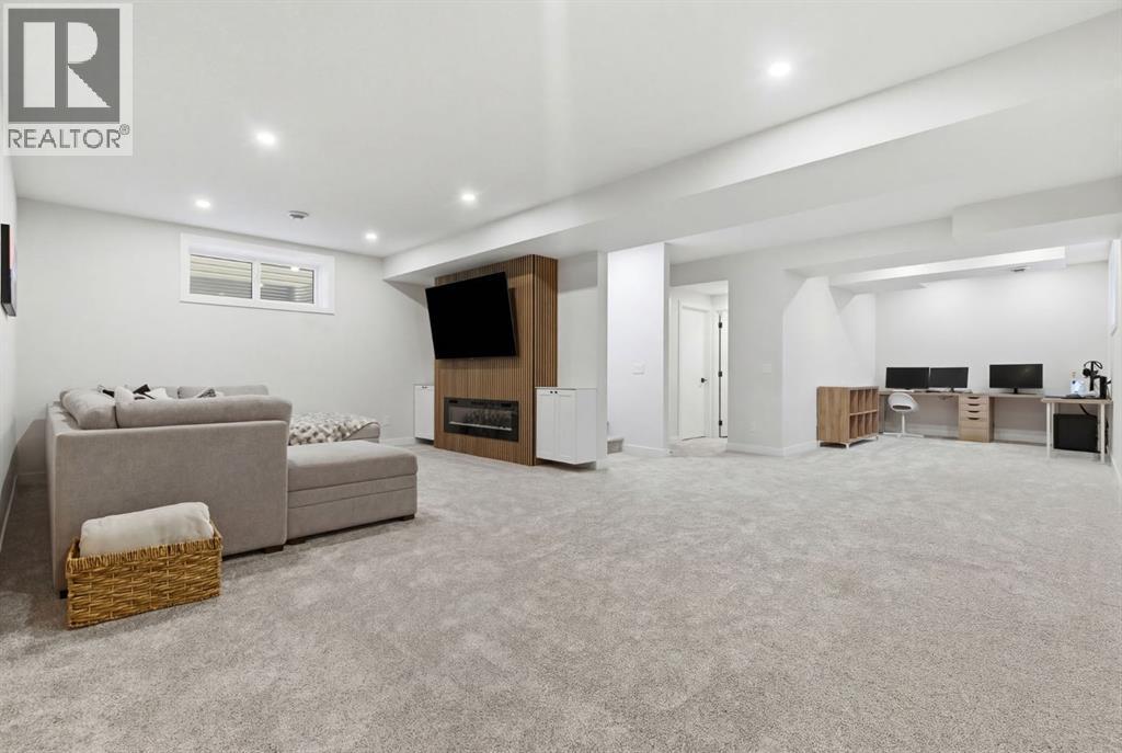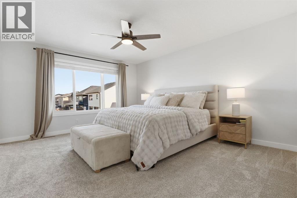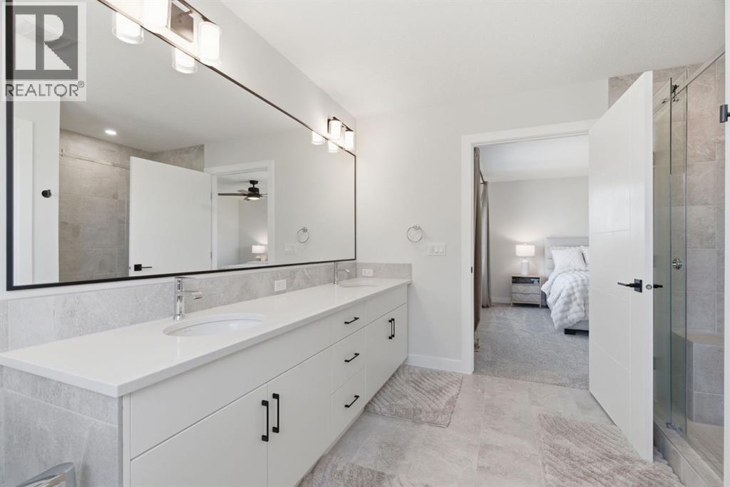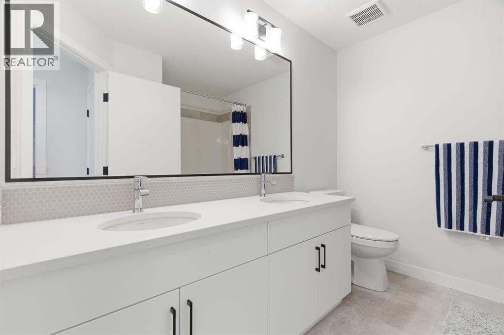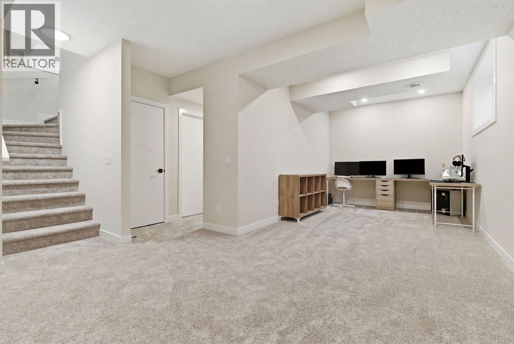 **OPEN HOUSE: 1 - 3PM, April 11, 2026 (Saturday)** Welcome to 117 Ranchers View in Okotoks. This home is better than brand new. Built just over a year ago by Sterling Homes and still offering New Home Warranty, it has been kept in meticulous condition and delivers what new builds don’t. A fully finished basement, Gemstone Lights, completed landscaping with a fenced yard and irrigation, window coverings already in place, and a washer and dryer included. All the extras are done, so you can just move in and enjoy. Offering just under 2,500 sqft above grade and over 3,400 sqft of total developed living space, this home checks every box. You’ll notice the curb appeal right away with hardie-board siding on both the front and back, along with an oversized double attached garage. Out back, the home backs onto a green belt with open sightlines across the green space, creating a private and peaceful setting. The main floor features durable vinyl plank flooring, a front office, a half bath, and a functional mudroom off the garage with built-in shelving. A walk-through pantry leads you into the upgraded kitchen, complete with ceiling-height cabinetry, quartz countertops, two islands, a stainless steel fridge, built-in microwave and oven, and a gas cooktop. This is a true chef’s kitchen designed for both everyday living and entertaining. The open concept layout flows seamlessly into the living room with a fireplace, and into the dining area with patio doors leading to your composite deck. From here, you’ll enjoy incredible views of the large yard and green space behind. Upstairs features the highly sought-after four bedrooms on one level, along with a spacious bonus room. Two of the bedrooms are positioned perfectly for kids with a nearby bathroom, while the third bedroom sits closer to the primary. The primary bedroom offers a large walk-in closet and expansive windows overlooking the green space and pathway. The ensuite includes double sinks, a soaker tub, tiled shower, and a separate water closet. The recently developed basement offers 9-foot ceilings, a dry bar with included fridge, and a feature wall with a TV, along with a great open flex space perfect for a kids homework zone or easily converted into a fifth bedroom. Around the corner is a beautifully finished bathroom with custom tile, along with additional storage under the stairs. Located in one of Okotoks’ most desirable areas, you’ll love the quick access to the highway and proximity to schools. Why buy brand new when you can own better than brand new. (id:63190)
