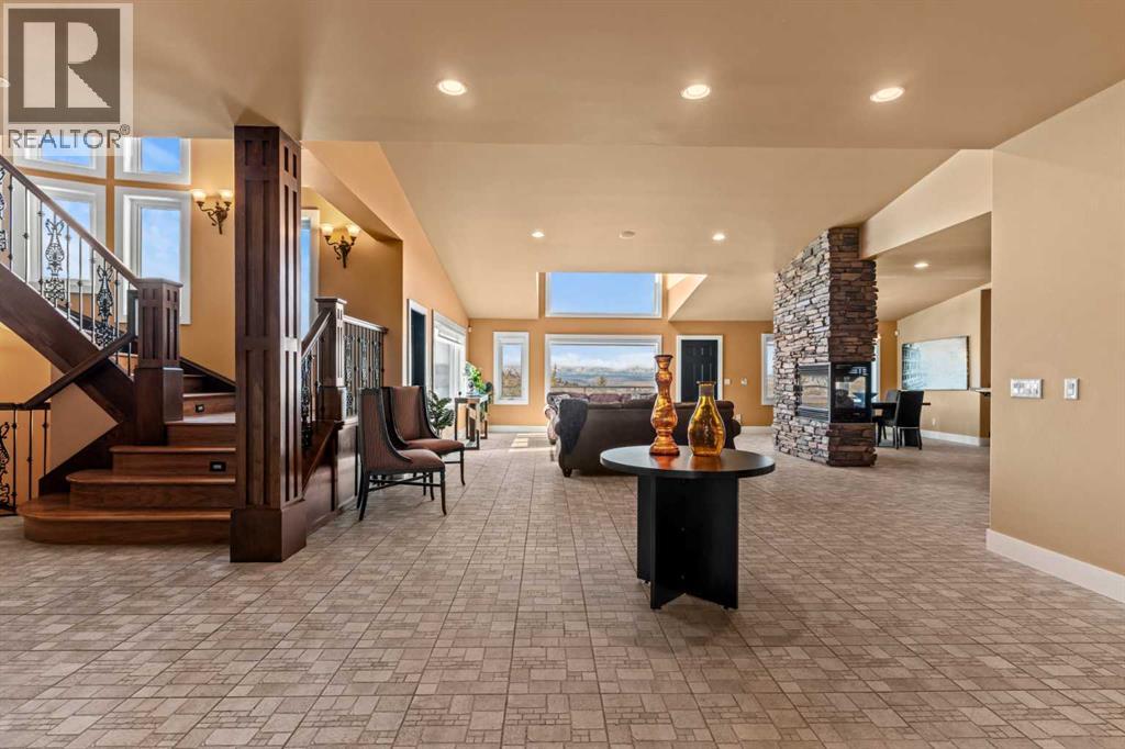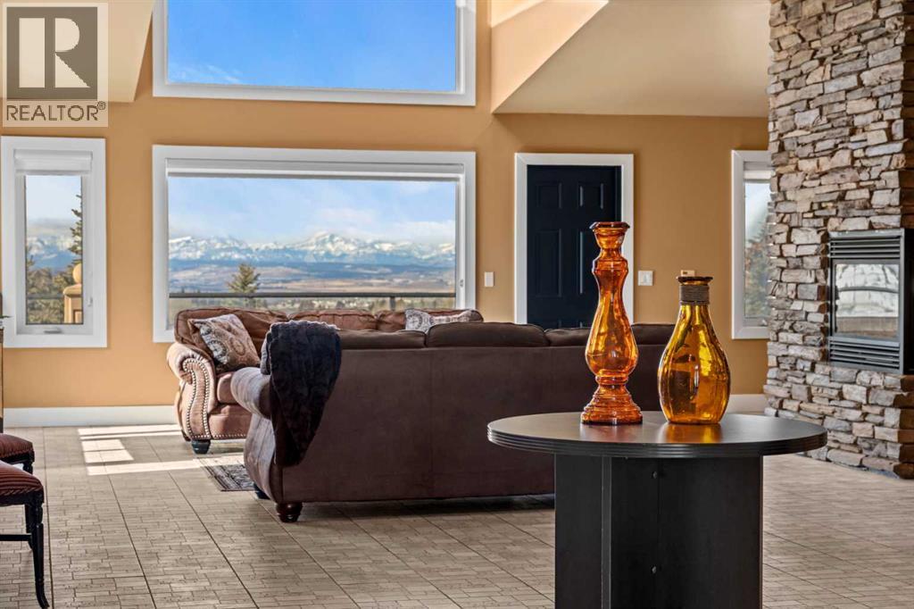 Set on 9.17 acres in Bearspaw, 10 Minutes to the NW Calgary Light Rail Transit, this custom-built estate offers unobstructed west-facing Rocky Mountain views, and minutes to major shopping in Cochrane and Calgary. The 9.17 Acres can be subdivided into two parcels. Boasting over 10,000 sq.ft. of developed living space, the home features 7 bedrooms (4 above grade, 3 on the walk-out lower level, including another Master Suite) and 10 bathrooms, ideal for large or multi-generational families. The upper level includes three junior suites with private ensuites and balconies, along with a stunning primary retreat showcasing vaulted ceilings, fireplace, spa-inspired ensuite, and expansive walk-in closet. The fully developed walk out level in addition to the three bedrooms with ensuites offers an exercise area, steam room, and a full ensuite bathroom. This level also includes an indoor/outdoor area with a Hot Tub Hookup and a woodburning Fireplace.The main level is designed for executive living and entertaining, highlighted by a chef’s kitchen with custom site-built cabinetry, copper inlay detailing, granite countertops, multi-level island, walk-in pantry, and fully equipped Butler’s Kitchen. Formal dining, private offices, a dedicated meeting room with separate veranda access, and multiple fireplaces elevate both function and design.Landscaped grounds feature two wildlife ponds, gated entry, paved driveway, ample RV parking, a detached six-car garage, and an attached four-car garage with 10’ high doors.Subdivision potential into two lots, which has been verified with Rocky View County by the owner/developer.A rare opportunity to secure estate-scale living with mountain views and premier access to Calgary. (id:63190)