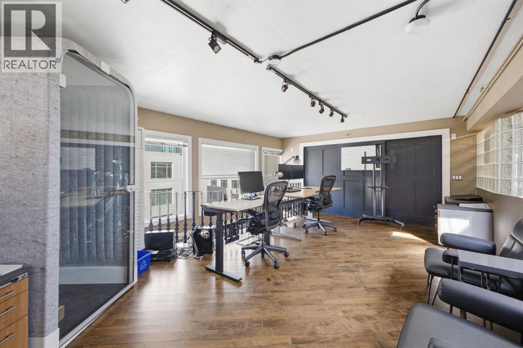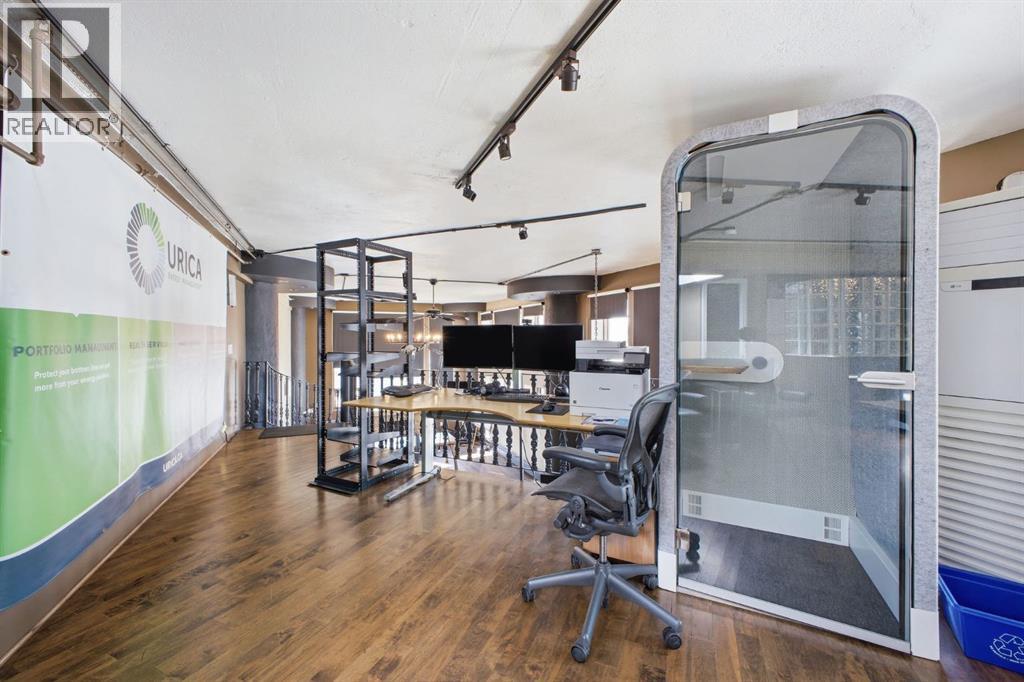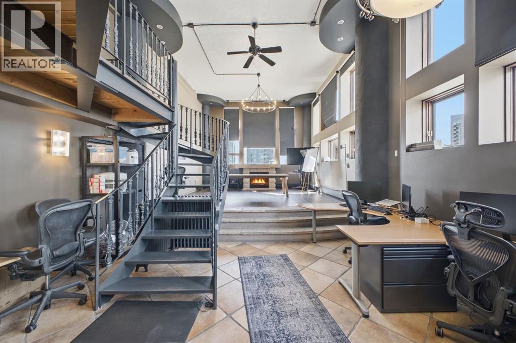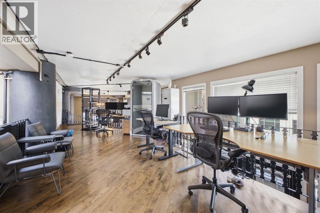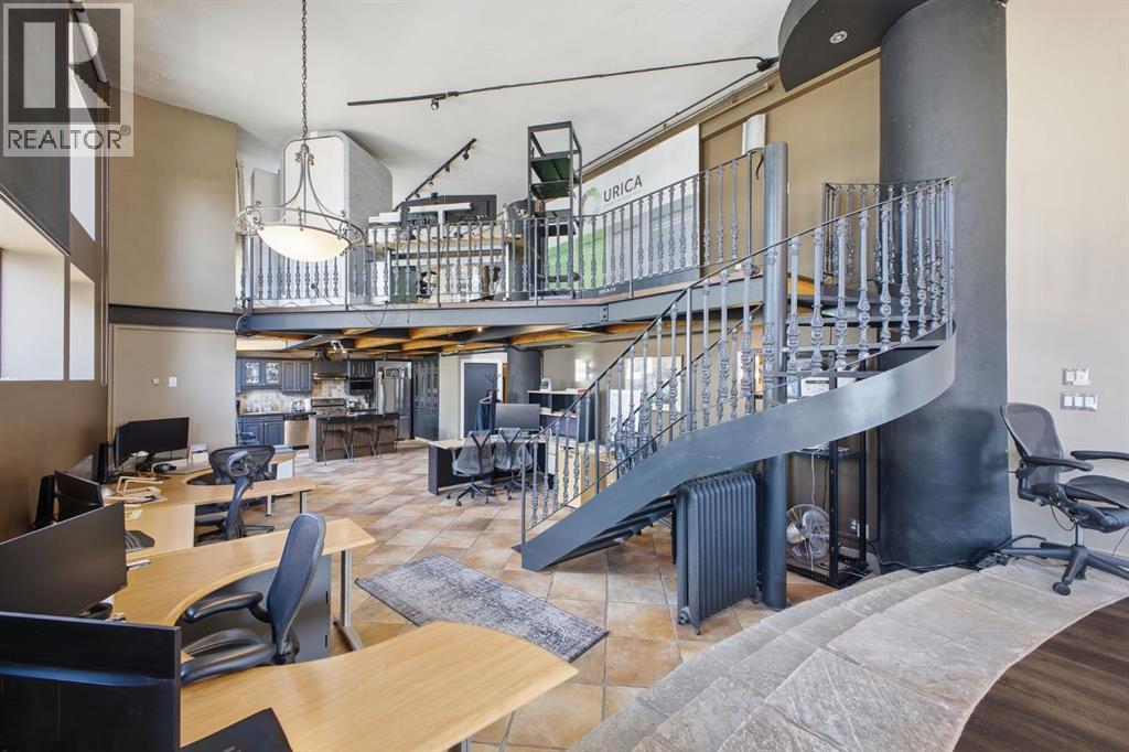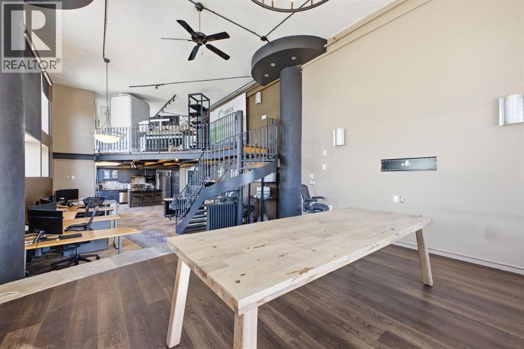 Have you ever imagined living or working in Manhattan? This loft delivers that same urban energy—right in the heart of Calgary. With zoning that allows both residential and commercial use, you can call it home, office, or a dynamic combination of the two. Currently utilized as office space, this impressive two storey unit offers soaring 20’ ceilings & nearly 1,600 sq ft of living space that can be re imagined into a stunning loft residence. The lower level features refinished hardwood flooring, and a dramatic chandelier. This space flows into an expansive open area ideal for a generous living/dining configuration. The kitchen is well appointed with granite countertops, an island with eating bar, stainless steel appliances, ample cabinetry, and a built in hutch for additional storage. A 3 piece bath and abundant storage complete the main level. A sweeping curved staircase leads to the upper floor, where you’ll find a spacious open loft with room for a large bedroom and office setup, along with a 4 piece bath. Units 301 and 303 are being sold separately; however, if purchased together, they can be seamlessly connected to create a truly spectacular space. If only one unit is purchased, the access point between them will be professionally sealed. Additional highlights include in suite laundry, a west facing balcony, one assigned parking stall and a large assigned storage locker. Set amid Calgary’s best restaurants, cafés, and entertainment—and just a short walk to the downtown core—this location offers the ultimate in urban convenience and vibrancy. (id:63190)