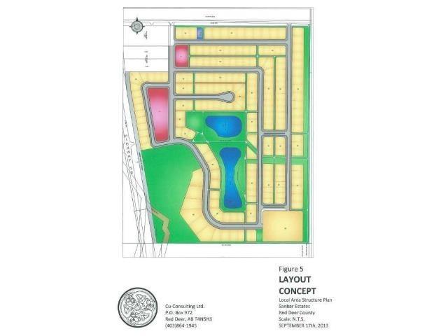 SYLVAN LAKE DEVELOPMENT OPPORTUNITY! Prime 123-acre re-development parcel on Hwy 20 across from Jarvis Bay, minutes to Sylvan Lake, Lakewood Golf Resort and key amenities. Just 25 minutes to Red Deer and 90 minutes to Edmonton and Calgary, offering strong regional access. An Area Structure Plan supports a well-designed community with single family, duplex, higher density residential, social care and commercial components. Approximately 40% of lots offer lake views, 15% park side, 15% golf course views and 3% border wetlands, with some lots featuring multiple attributes. Zoning includes R-3 and DCD-25 with alignment to municipal plans. Red Deer County supports increased density and future annexation into Sylvan Lake. Concept planning indicates potential for 950+ units, creating an excellent phased development opportunity in a high-demand recreational market. (id:63190)
