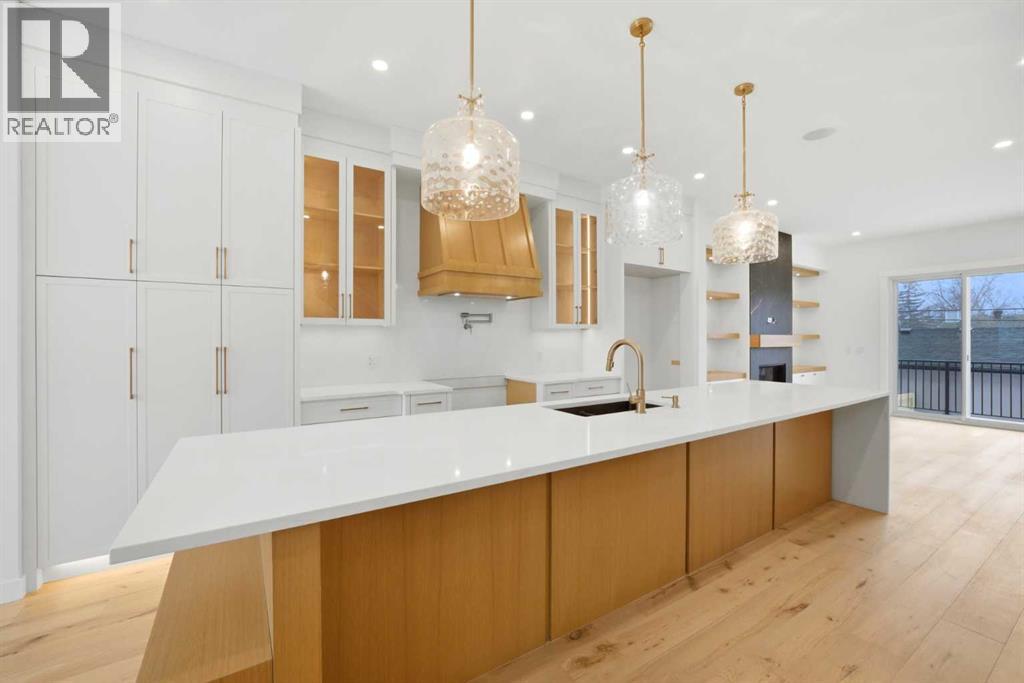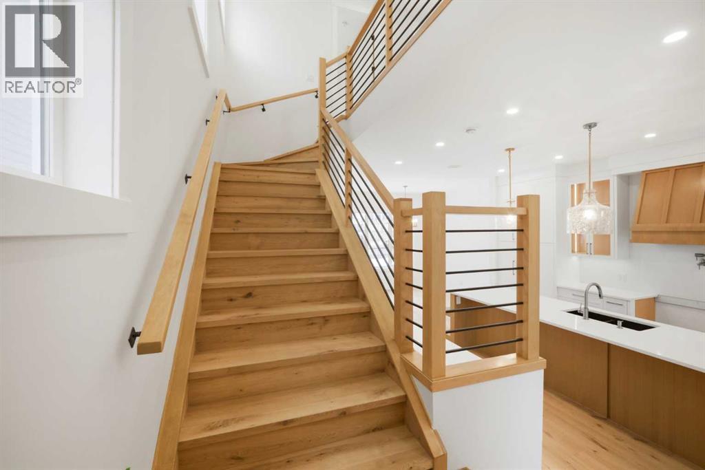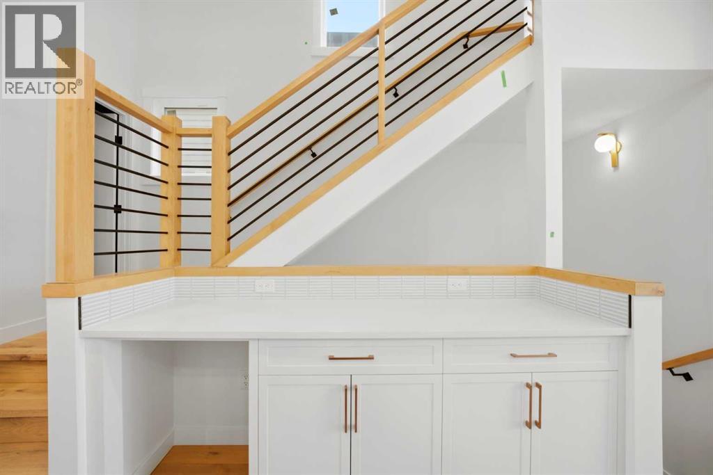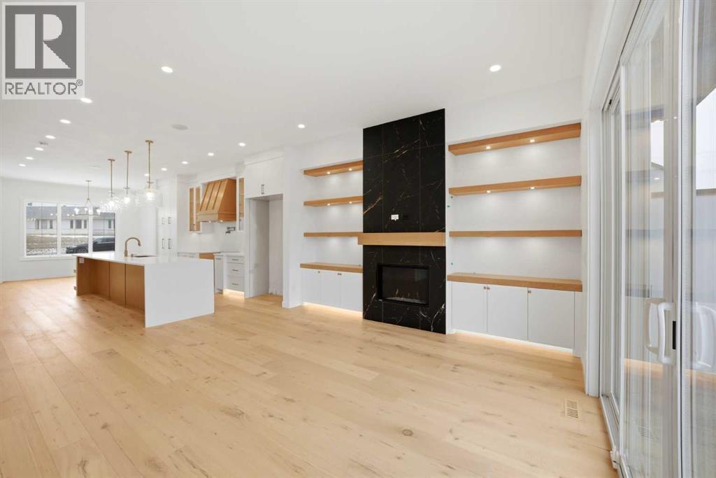 *** OPEN HOUSE Saturday April 11 from 1 - 4 pm *** Introducing this brand new, move-in ready infill in MONTGOMERY — a polished, well-executed home that delivers on both style and function. The addition of a fully private 1-BEDROOM WALKOUT LEGAL SUITE (permit-approved) provides an exceptional opportunity for rental income, multigenerational living, or flexible guest accommodations.The main floor opens to a bright, well-appointed foyer with a full coat closet — an understated but practical welcome. The dining area at the front of the home comfortably accommodates a full-size table and connects seamlessly to the kitchen, which is designed with both aesthetics and usability in mind. SHAKER-STYLE CABINETS, a custom-built hood fan with oak accents, glass display shelving with LED lighting, and a quartz island with waterfall edges create a refined, cohesive space. The KITCHENAID APPLIANCE PACKAGE includes a gas range with pot filler and a French door refrigerator, while a dedicated coffee and beverage station — with room for a beverage fridge — adds a thoughtful finishing touch.The living room is anchored by an INSET GAS FIREPLACE with full-height tile surround and integrated display shelving with closed cabinetry below. SOUTHWEST-facing rear sliders bring in generous natural light and open to a private back deck with privacy screens already in place. The rear mudroom is both functional and well-finished, offering built-in shelving, a bench, and cubbies, alongside a powder room appointed with a skirted quartz counter and decorative framed mirror.The upper level is led by a primary suite featuring a tray ceiling, a generous walk-in closet, and a spa-calibre ensuite complete with a freestanding soaker tub, walk-in shower with DUAL RAIN HEADS, and a double vanity. Two additional bedrooms, a full bathroom with STACKED HORIZONTAL TILE, and a dedicated laundry room with designer tile flooring round out the floor.The lower WALKOUT SUITE is bright, independently accessed, and finished to a consistently high standard. The living area features a BUILT-IN FLOATING MEDIA CENTRE, while the full kitchen mirrors the quality of the main floor with warm oak flat-panel cabinetry and quartz countertops. A spacious bedroom with walk-in closet, full bathroom, and stacked laundry complete the suite — fully self-contained and ready for immediate use.Situated just off Home Road, Montgomery offers straightforward access to 16th Ave and Memorial Drive while maintaining proximity to some of Calgary's best green space. Shouldice Park, Bowmont Park, and the Bow River Pathway system are within walking distance, supporting an active, outdoor lifestyle year-round. Montalcino Ristorante, NOtaBLE, and a strong selection of local cafés and dining options are close by, with Market Mall, the University of Calgary, and Foothills Hospital all conveniently nearby — making this one of the city's most well-positioned inner-city communities. Contact us to view! (id:63190)